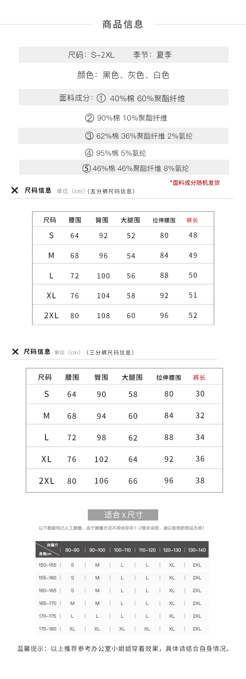 顏色分類 【淨面三分褲】灰色 【淨面三分褲】黑色 【淨面三分褲】白色 【淨面五分褲】黑色 【淨面五分褲】灰色 【淨面五分褲】白色 【三條槓五分褲】黑色 【三條槓五分褲】灰色 【三條槓五分褲】白色