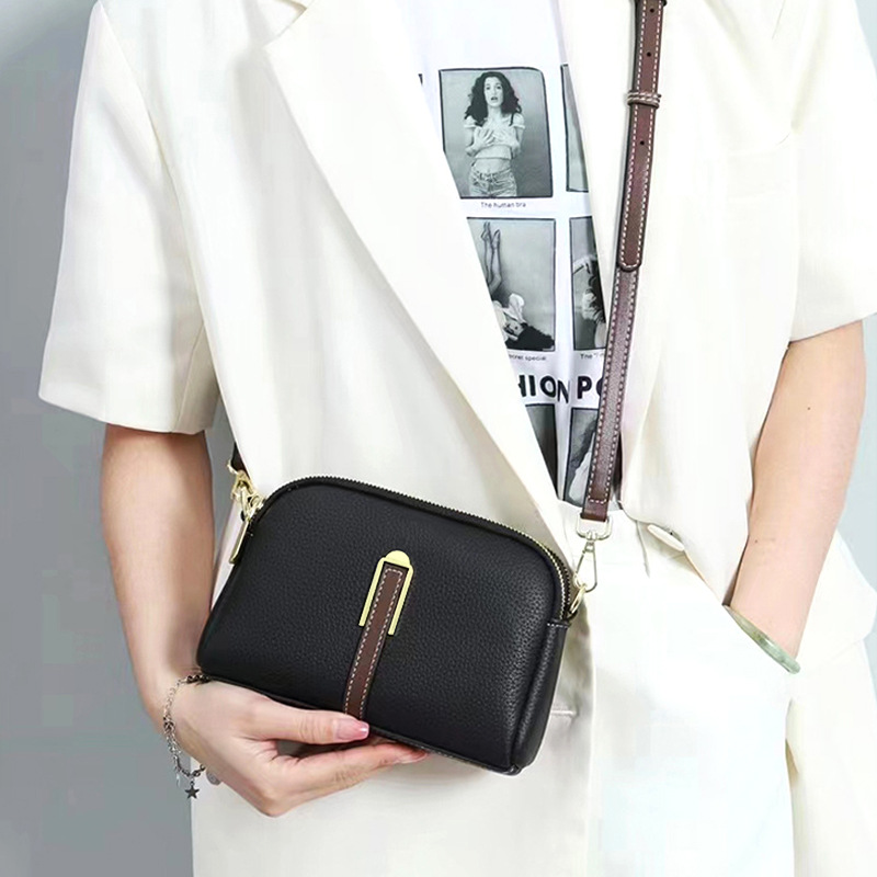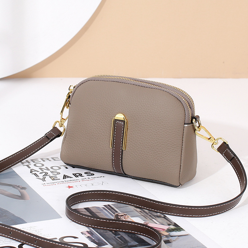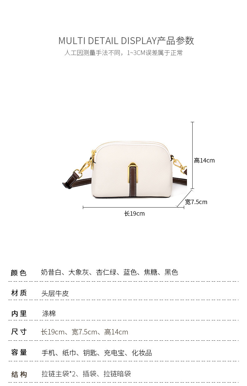 头层牛皮手机包2022新款斜挎小方包单肩包包真皮女包高级感贝壳包