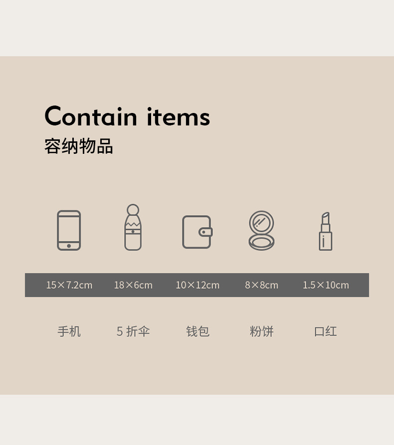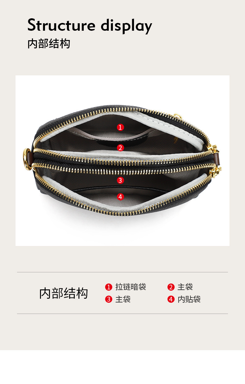 包内部结构 拉链暗袋,手机袋,证件袋,夹层拉链袋