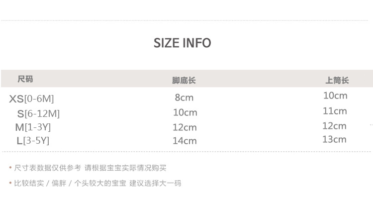 童袜尺码 XS码0-6个月,S码6-12个月,M码1-3岁,L码3-5岁