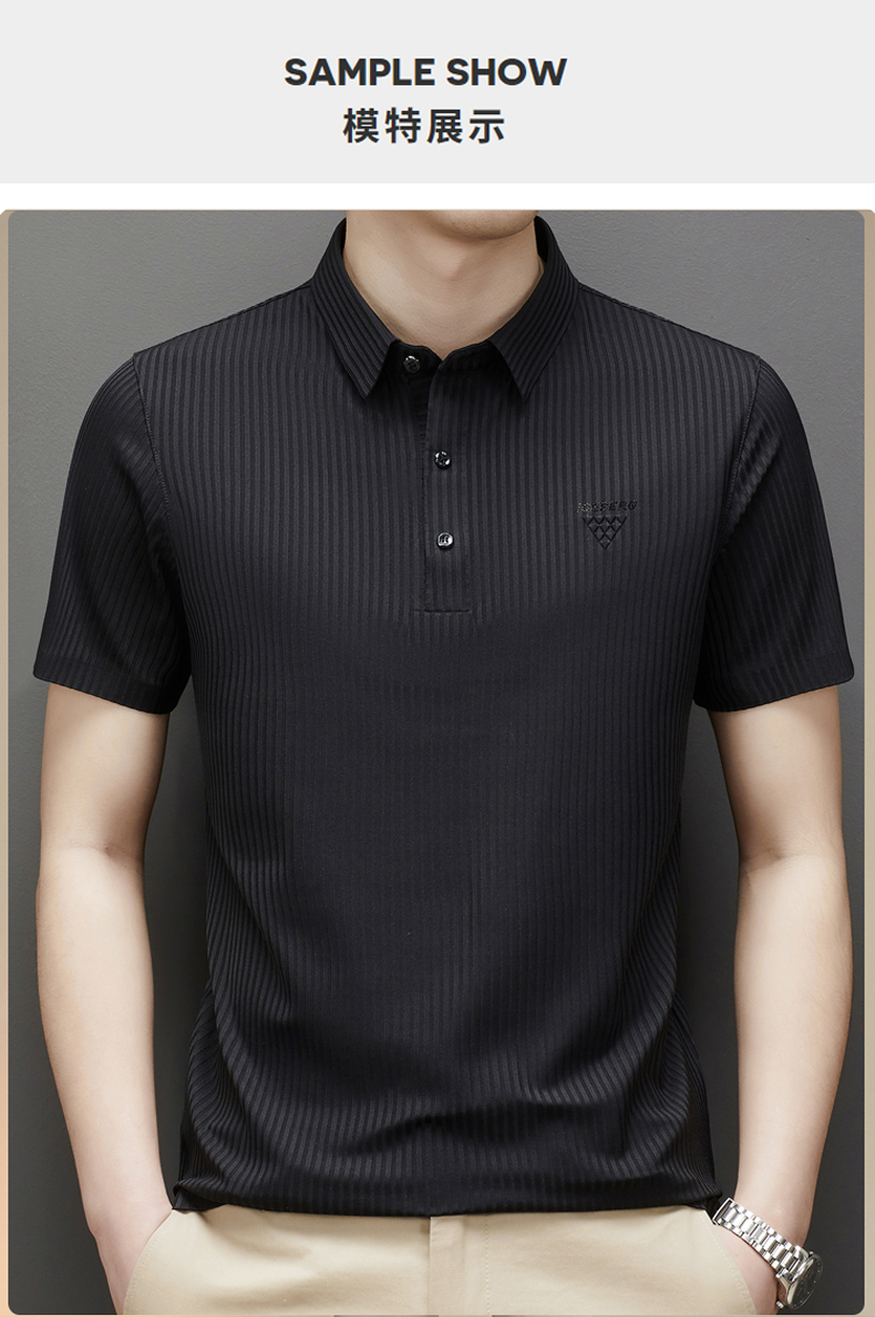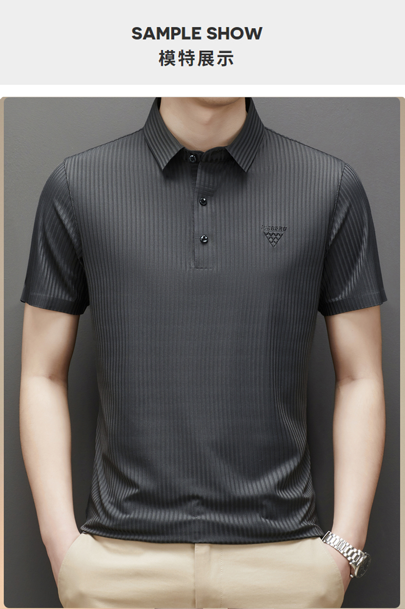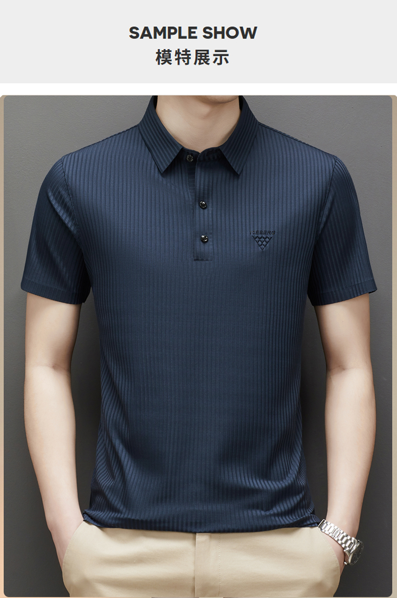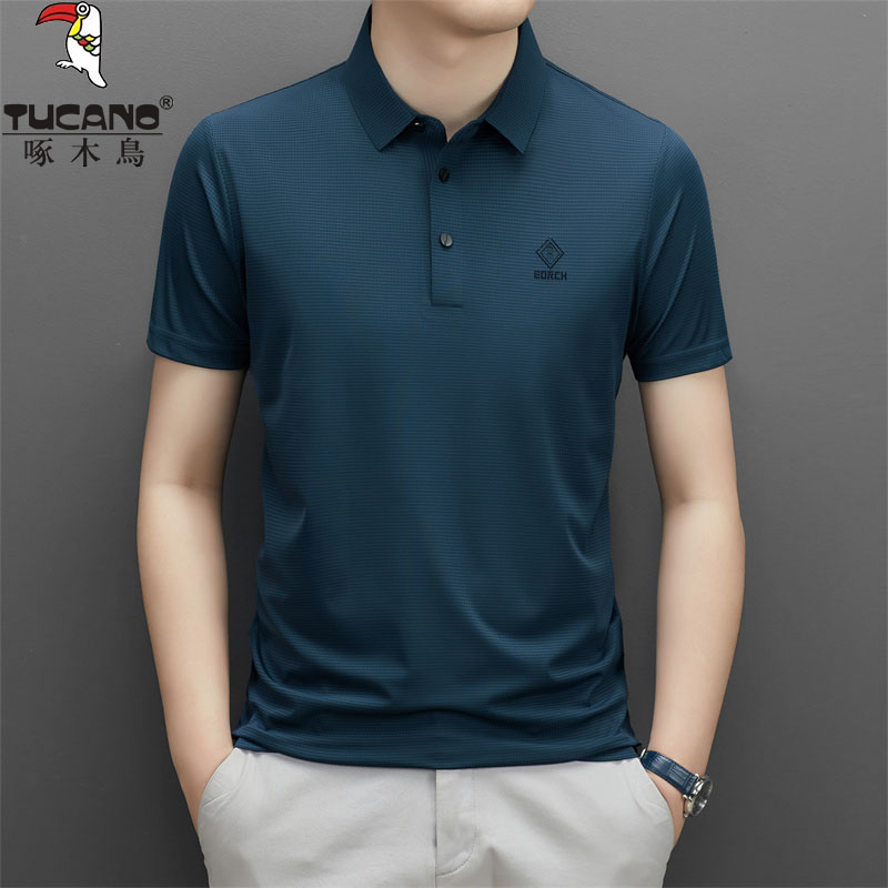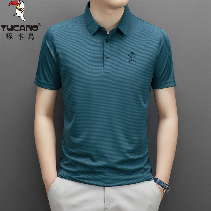 啄木鳥夏高端桑蠶絲短袖T恤中年男士翻領寬鬆無痕冰絲薄款POLO衫