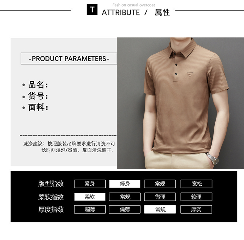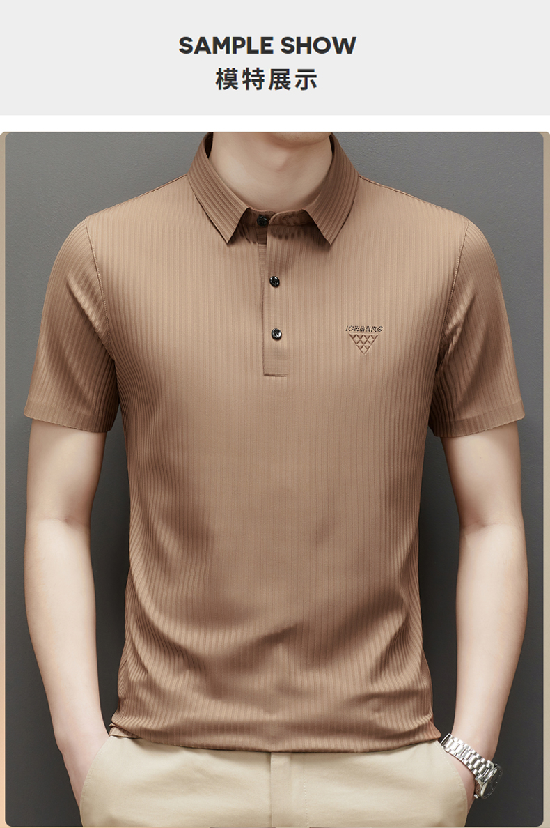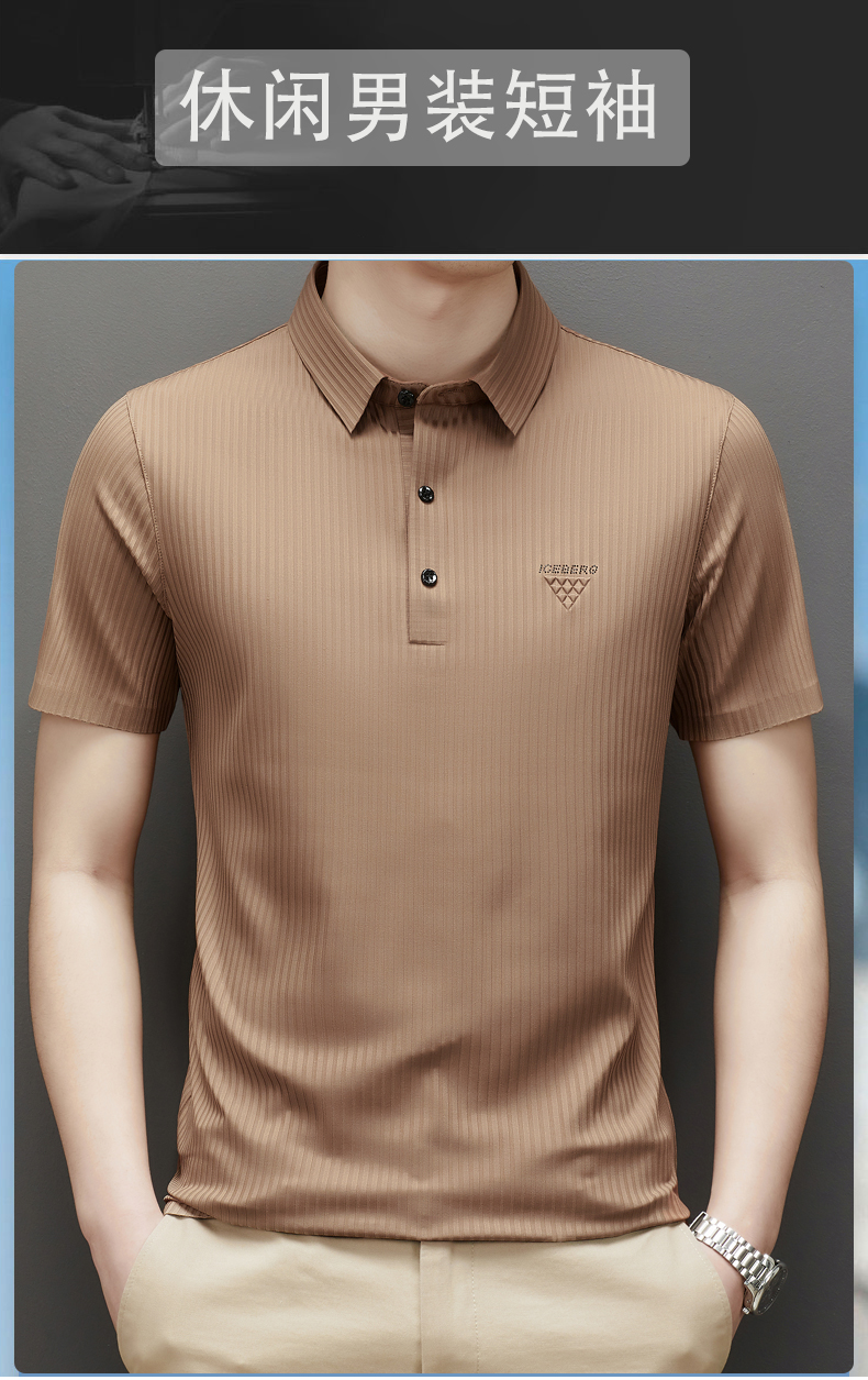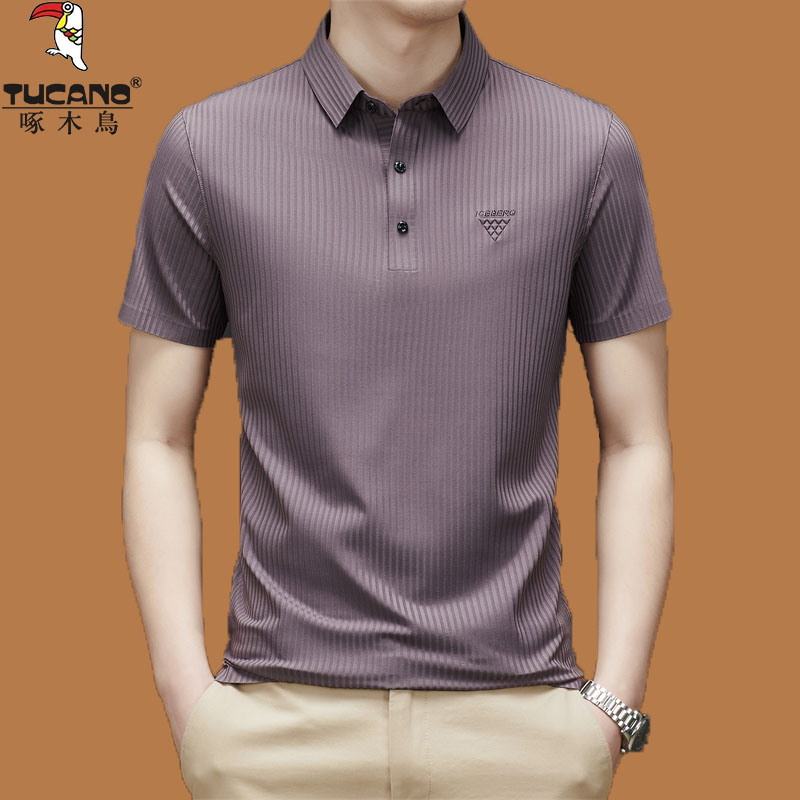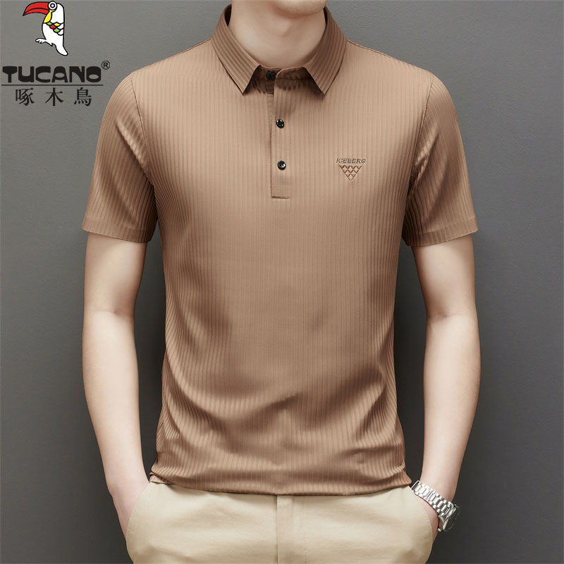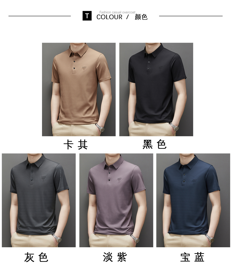 啄木鳥夏高端桑蠶絲短袖T恤中年男士翻領寬鬆無痕冰絲薄款POLO衫