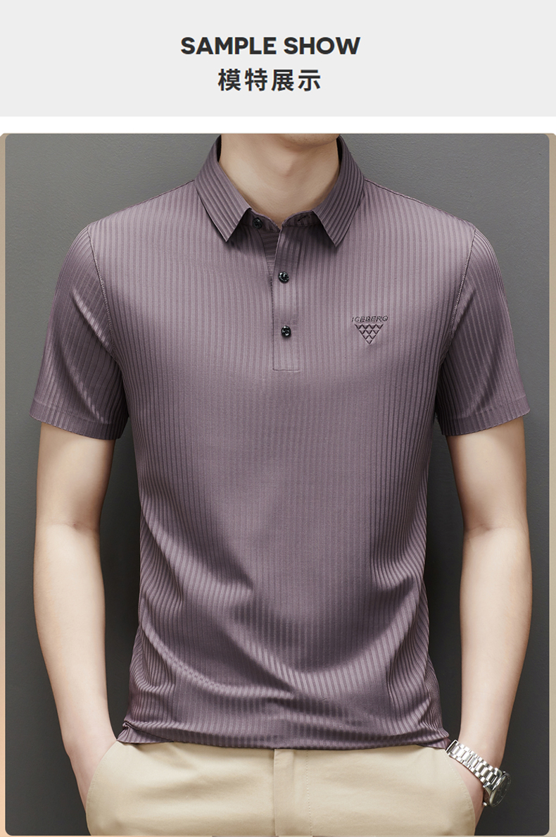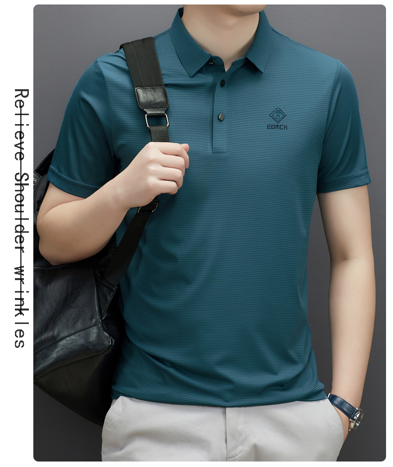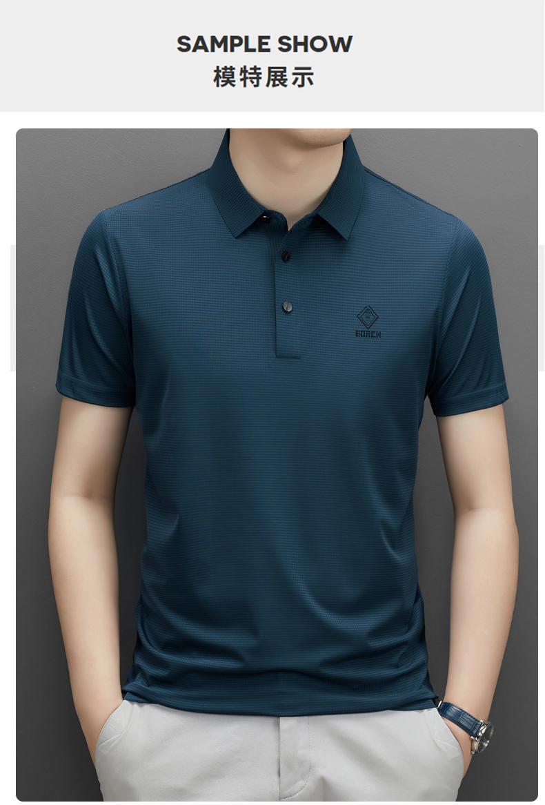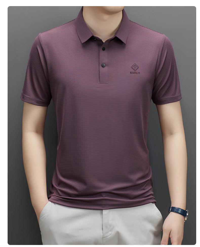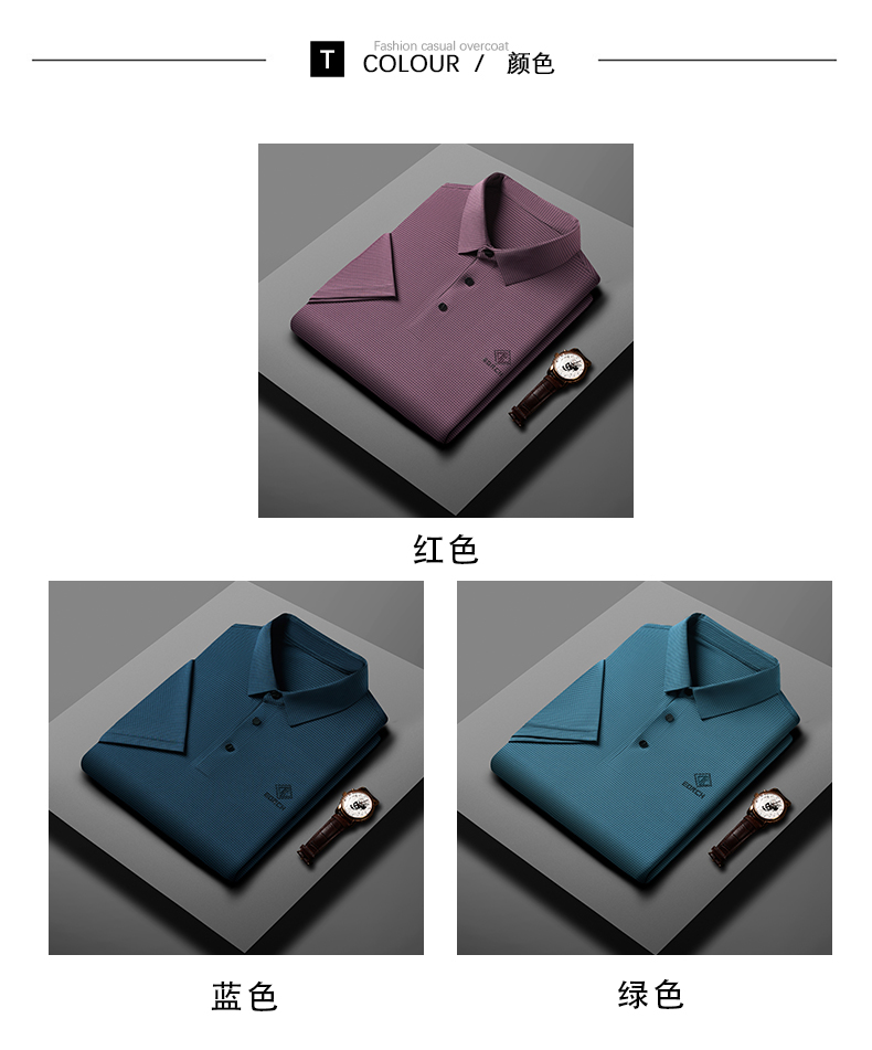 啄木鳥夏高端桑蠶絲短袖T恤中年男士翻領寬鬆無痕冰絲薄款POLO衫