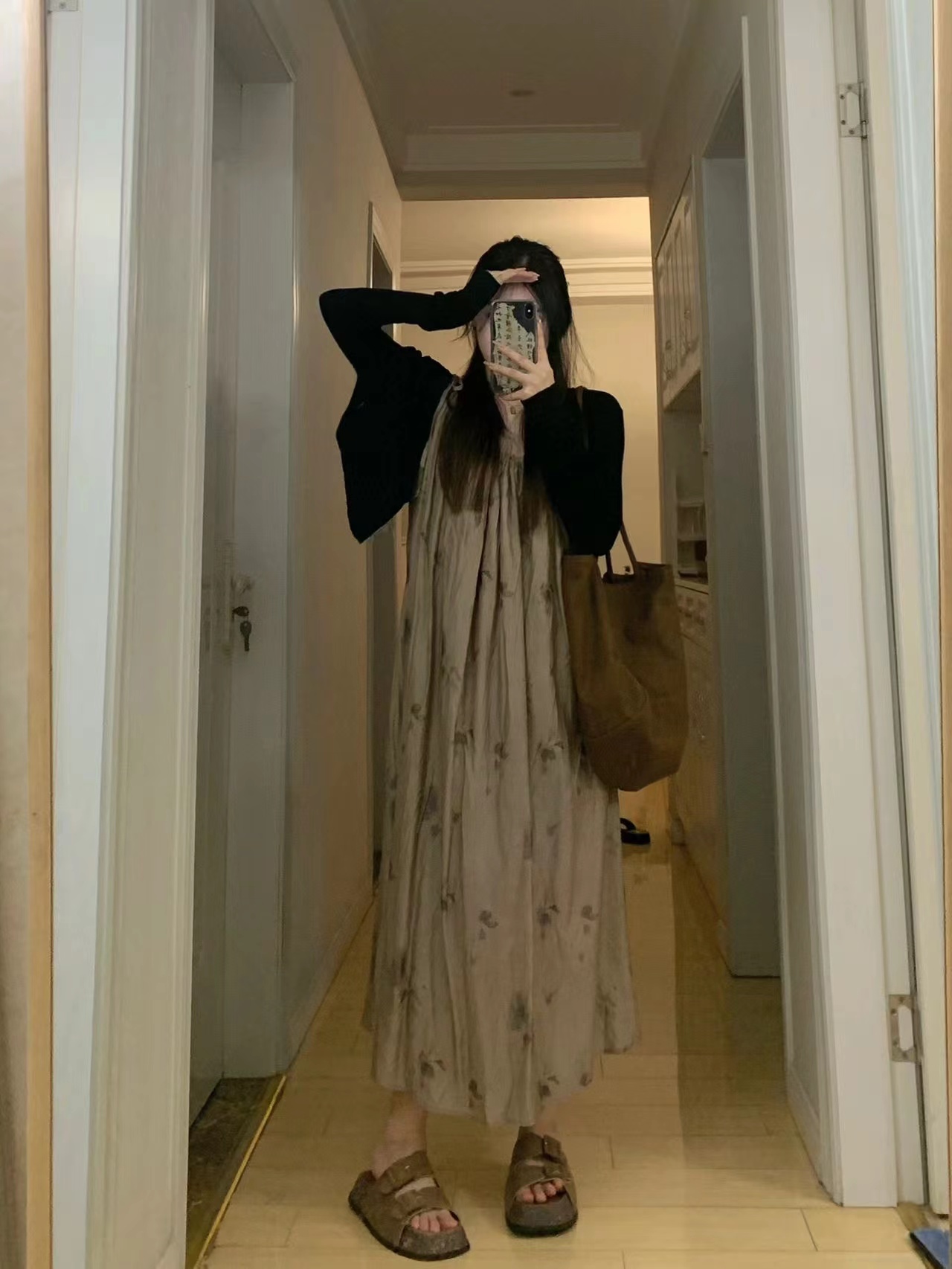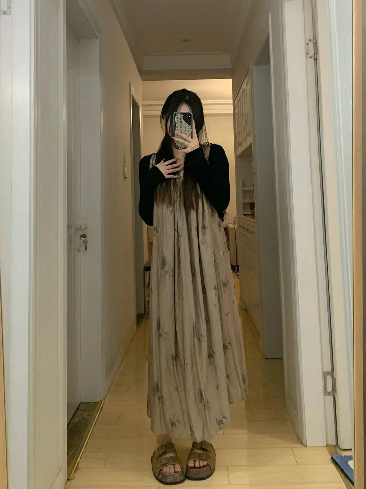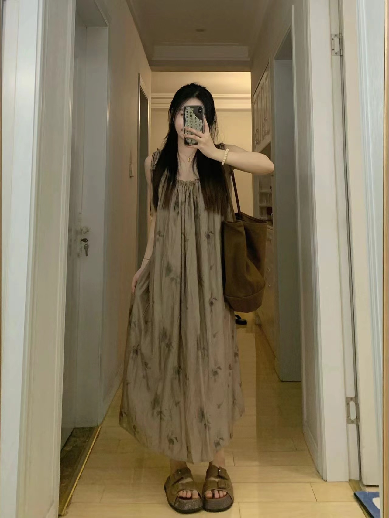 枯花暈染重工一片式遮肉顯瘦吊帶裙2022夏季新款風抽褶洋裝