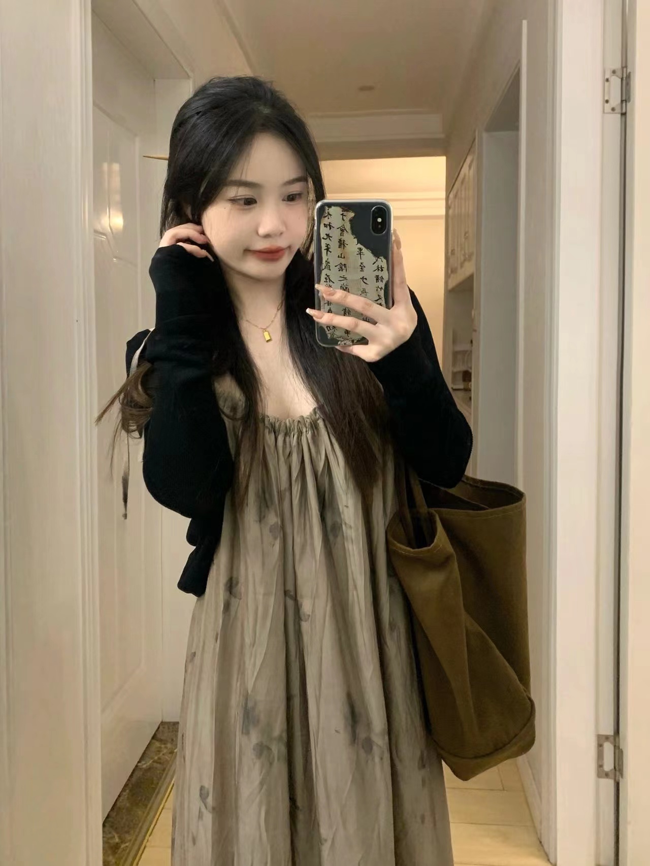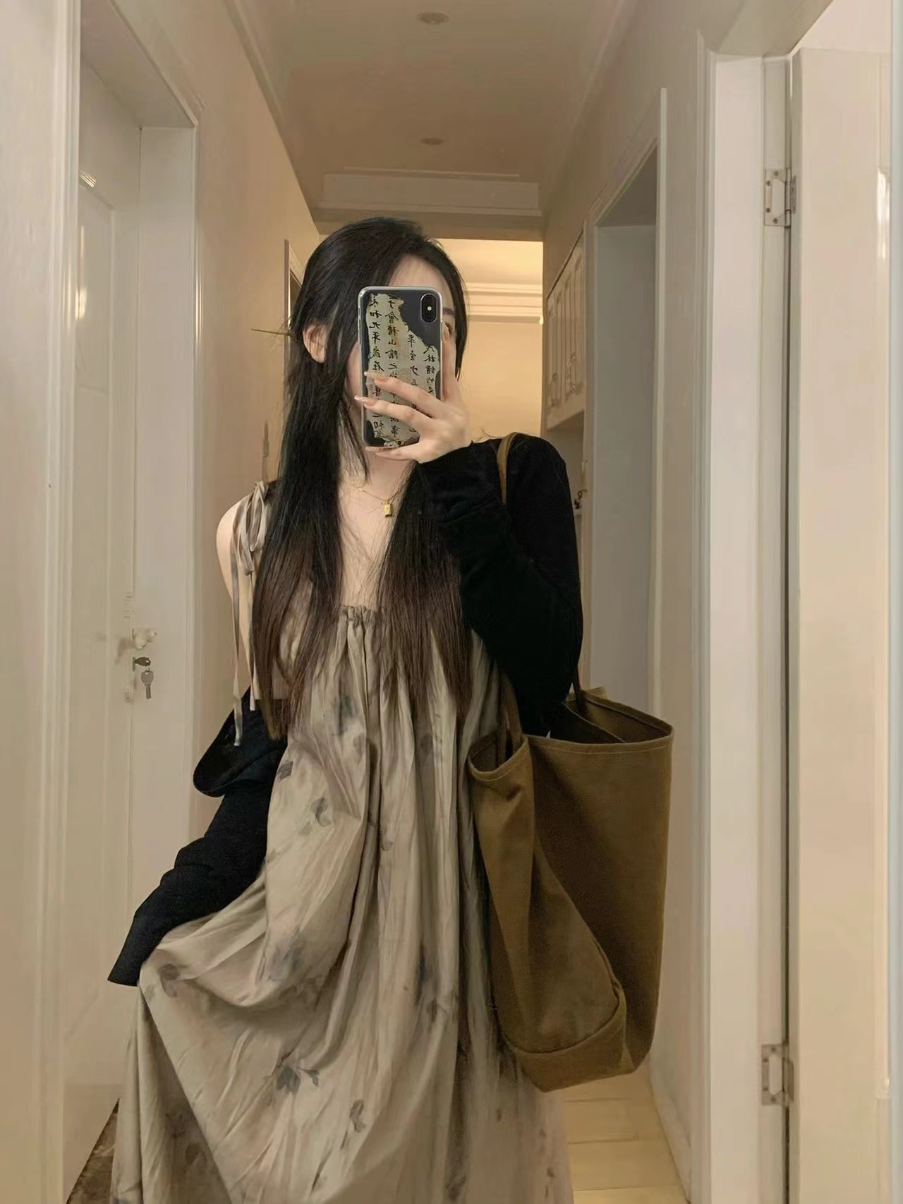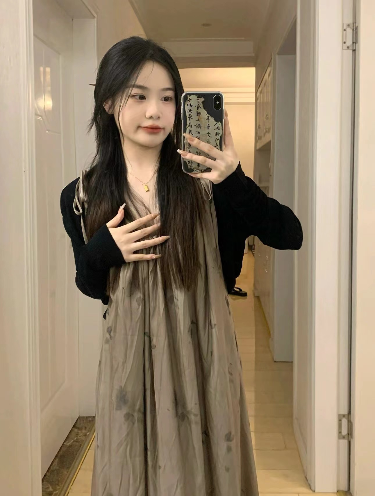 枯花暈染重工一片式遮肉顯瘦吊帶裙2022夏季新款風抽褶洋裝