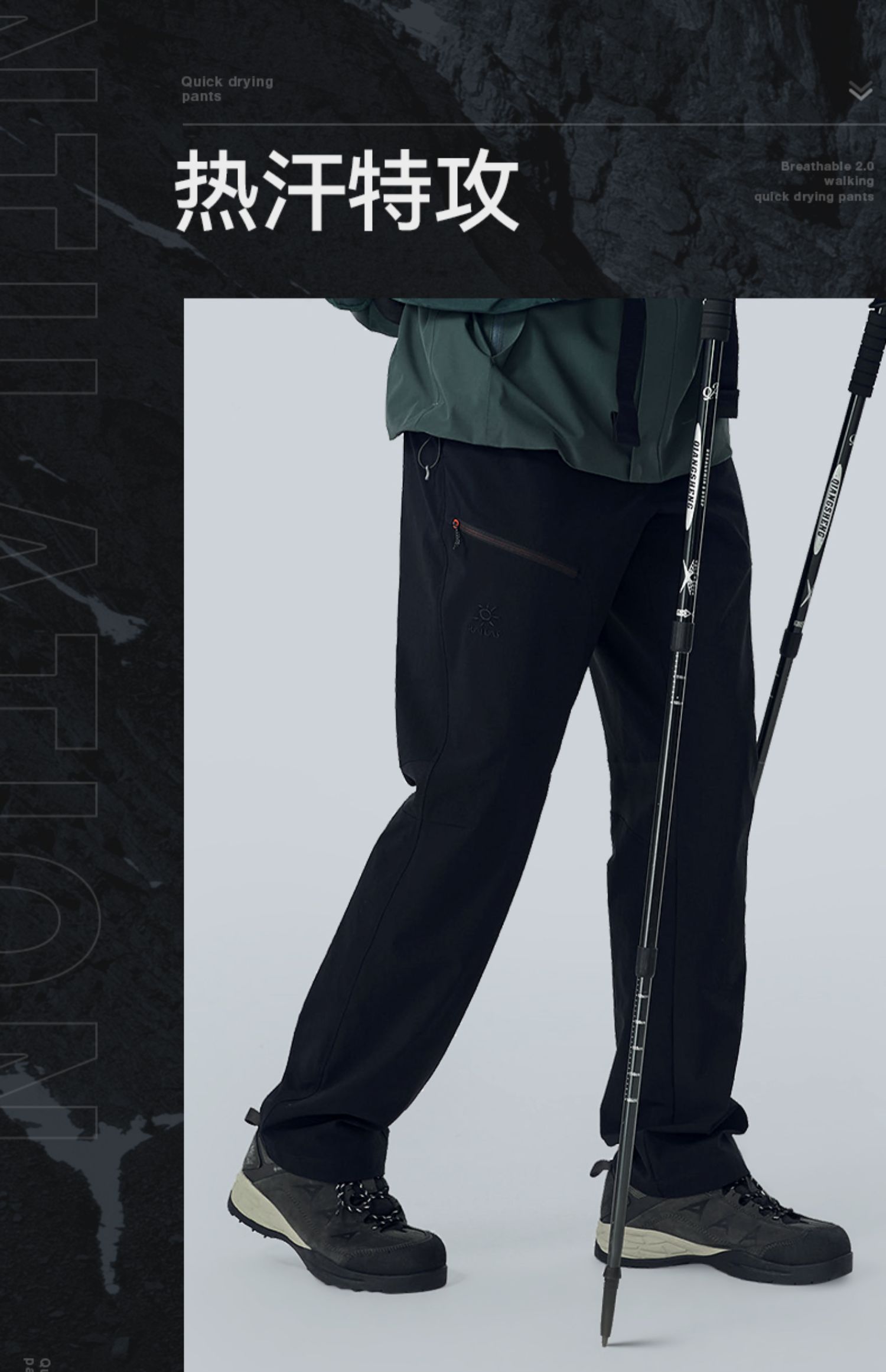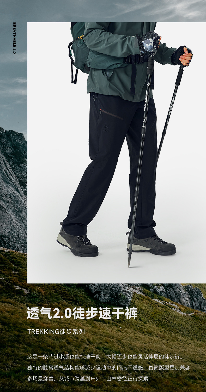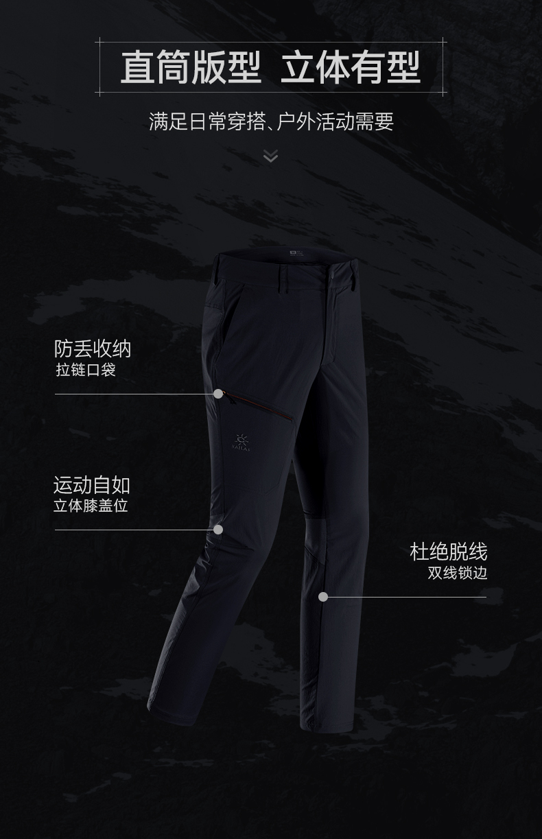 凱樂石速乾褲男夏季透氣快乾薄款戶外徒步運動休閒直筒彈力登山褲