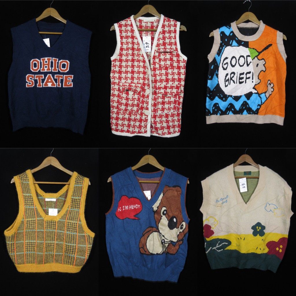 古著vintage外貿復古套頭開衫軟妹卡通寬鬆刺繡馬甲童趣毛衣背心5