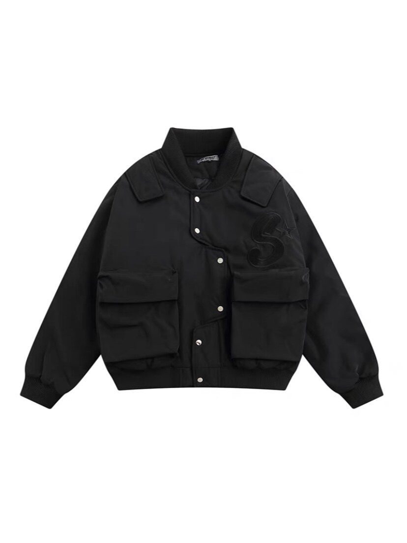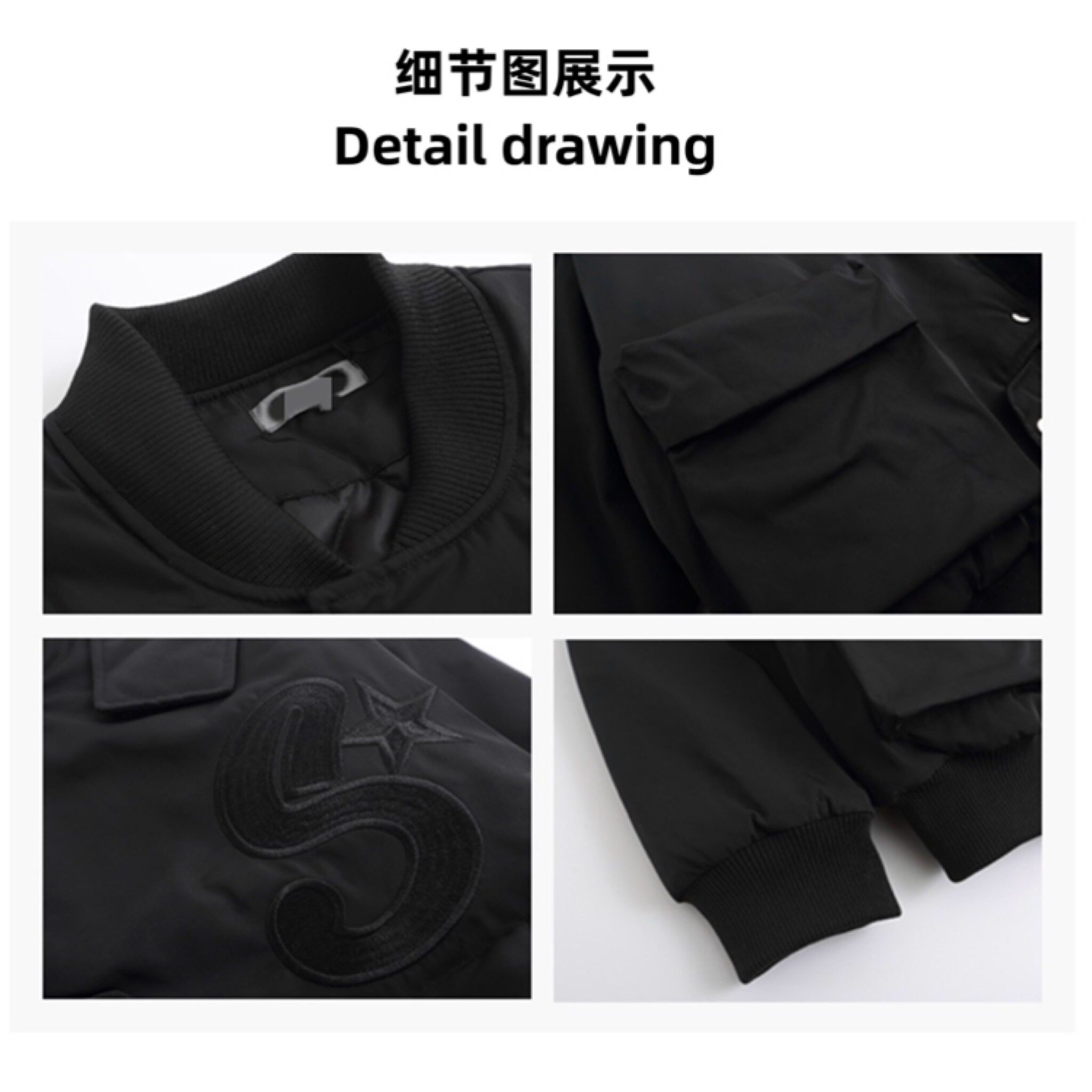 包醬鋪 美式原創不規則設計感夾棉飛行員夾克外套防水寬鬆男女潮