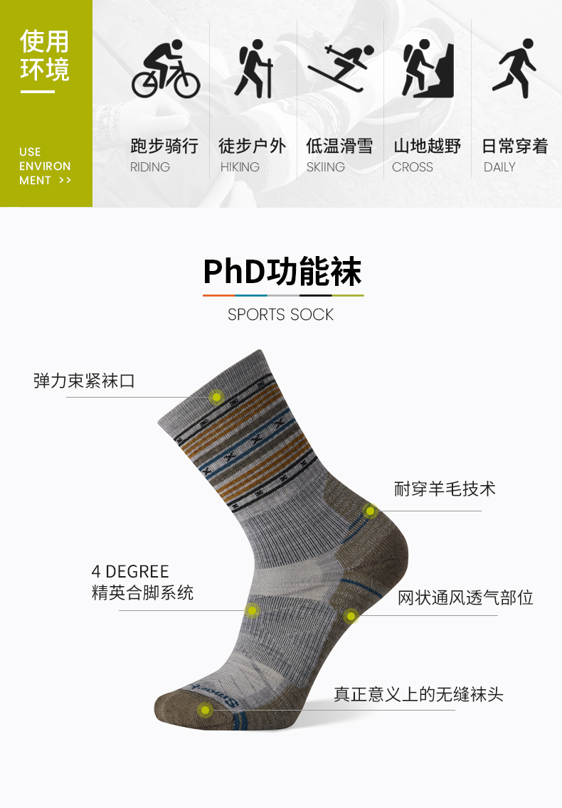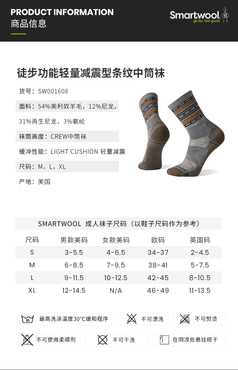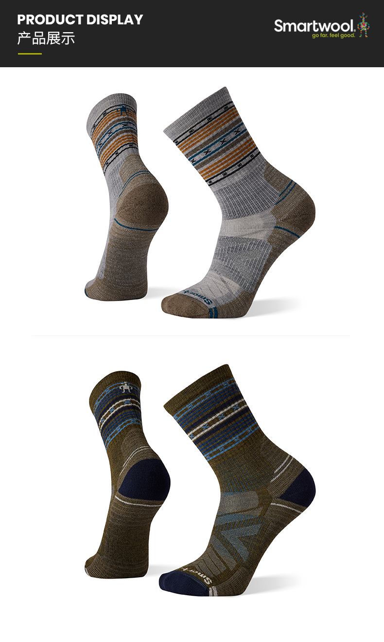 Smartwool 徒步功能輕量條紋中筒襪戶外美利奴羊毛襪運動襪男1608
