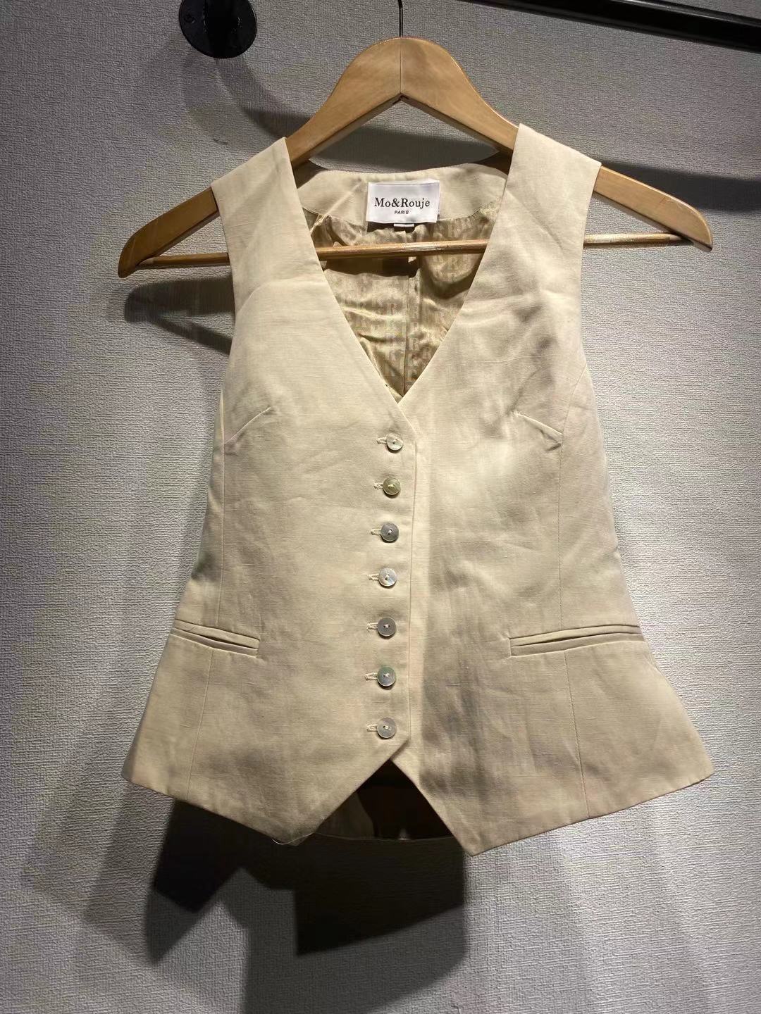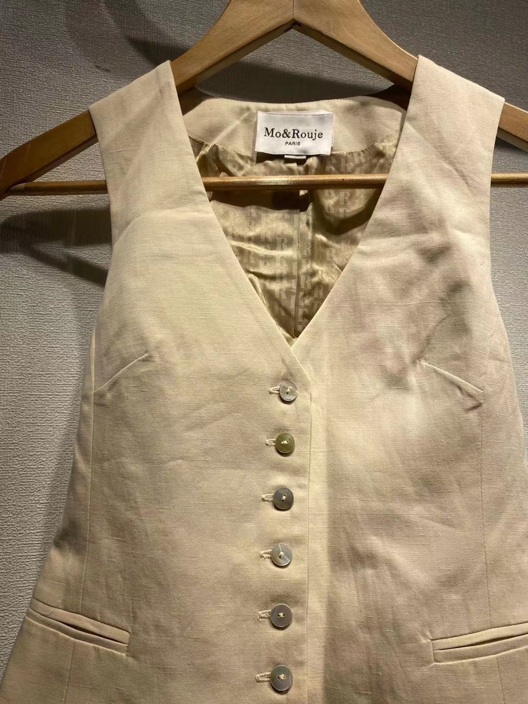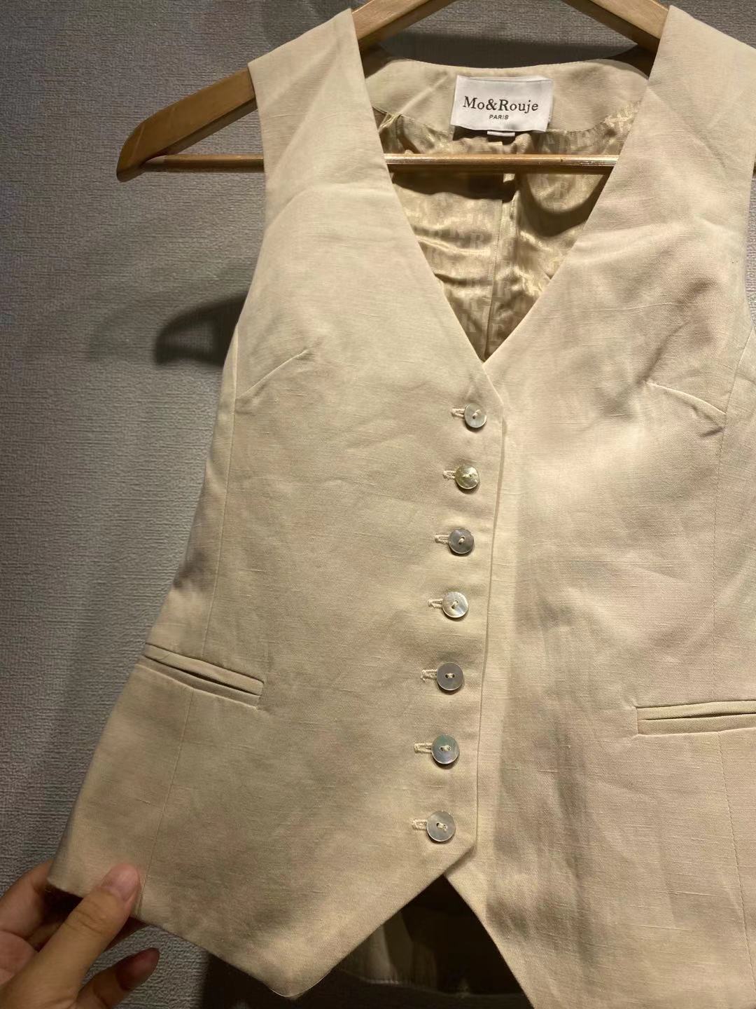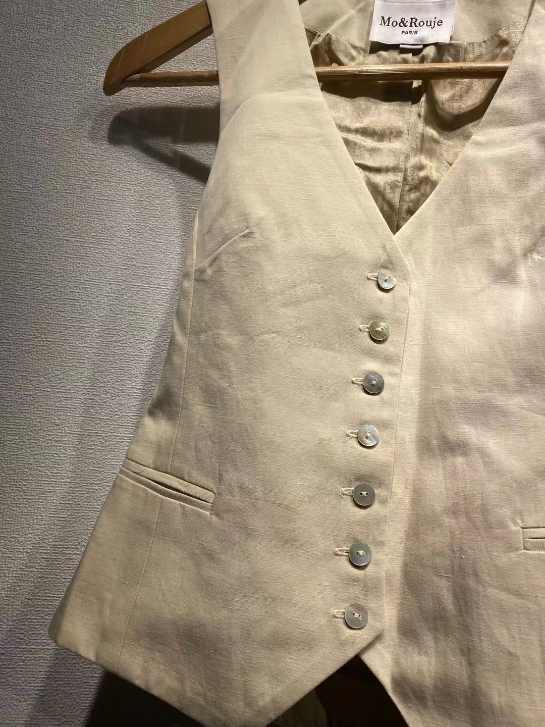 法系女装RO2023年商务英伦风亚麻短款无袖背心+长裤两件套装30948