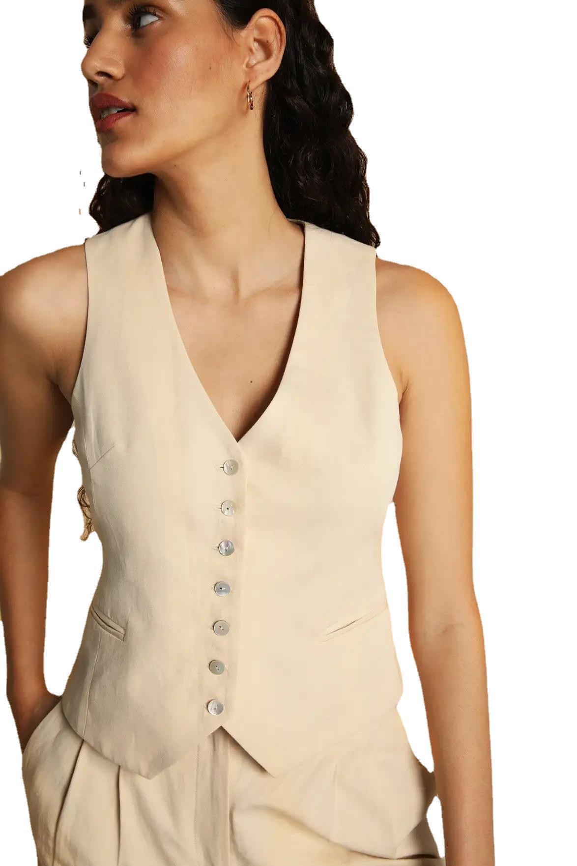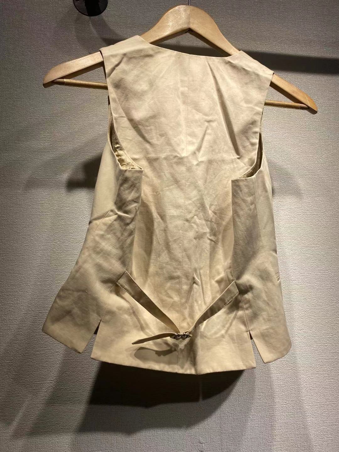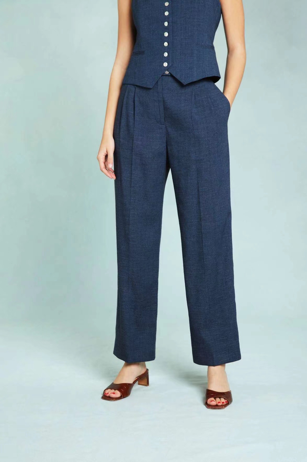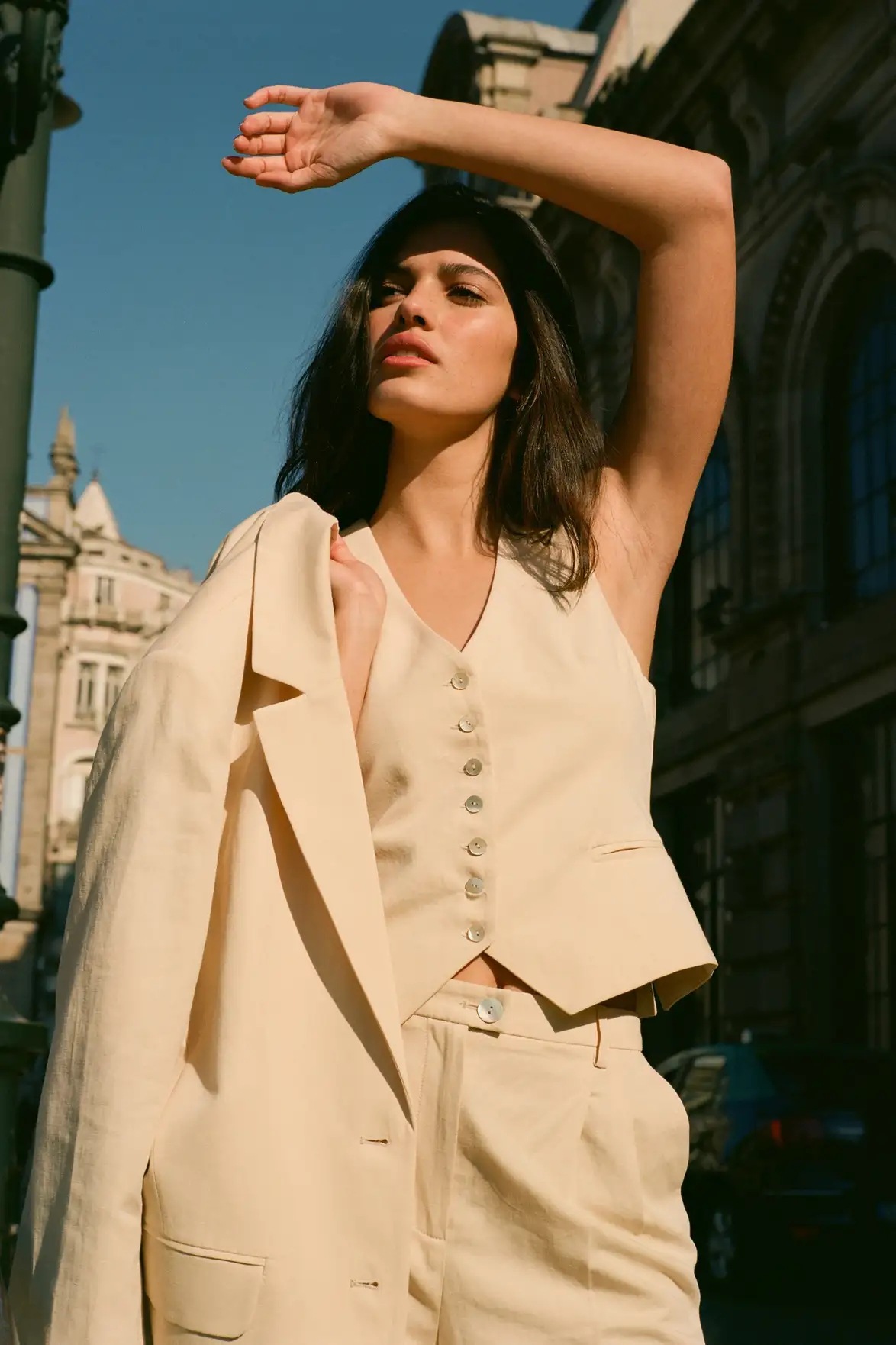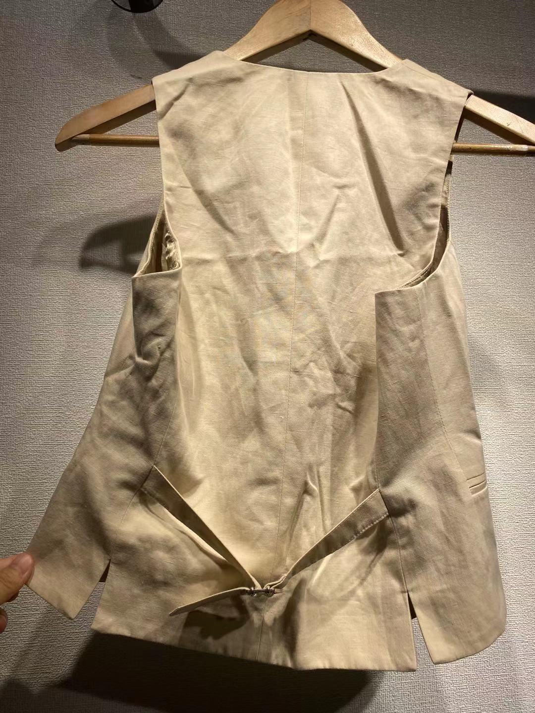 法系女装RO2023年商务英伦风亚麻短款无袖背心+长裤两件套装30948