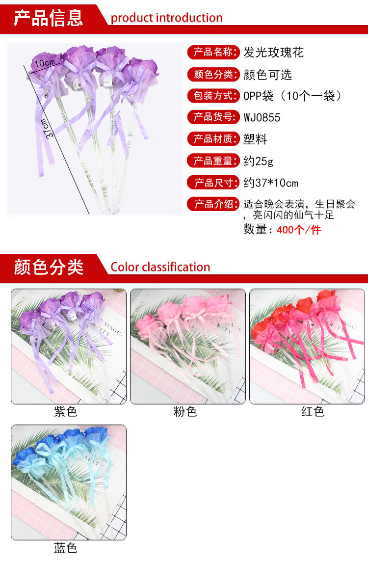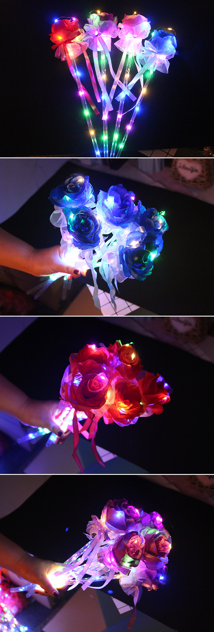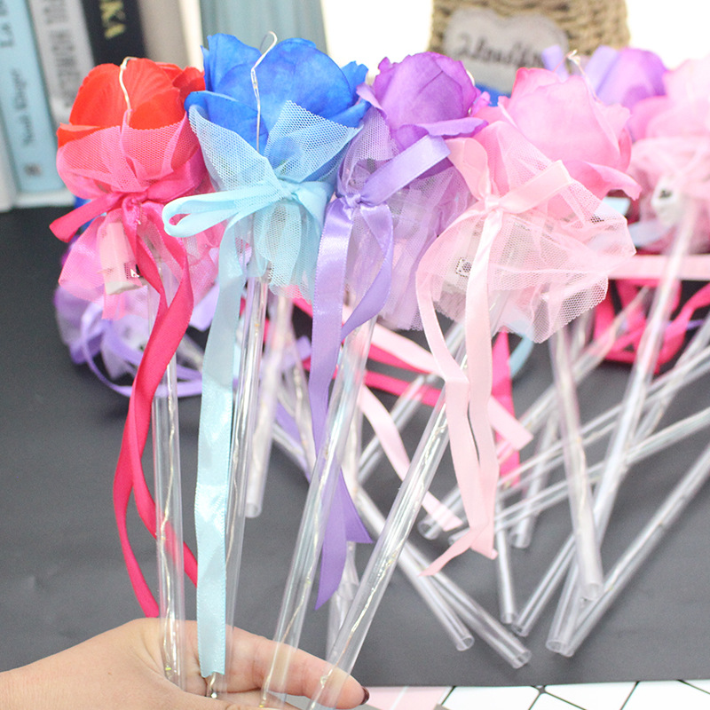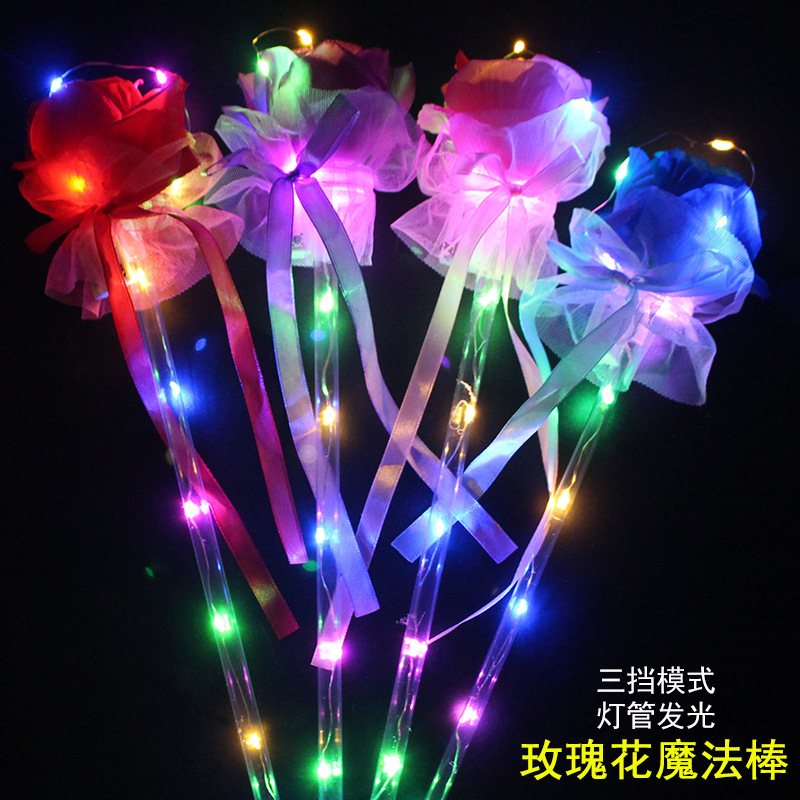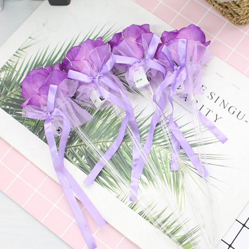 发光玫瑰花 七彩玫瑰花棒 七夕情人节表白花束公园地摊热卖批发