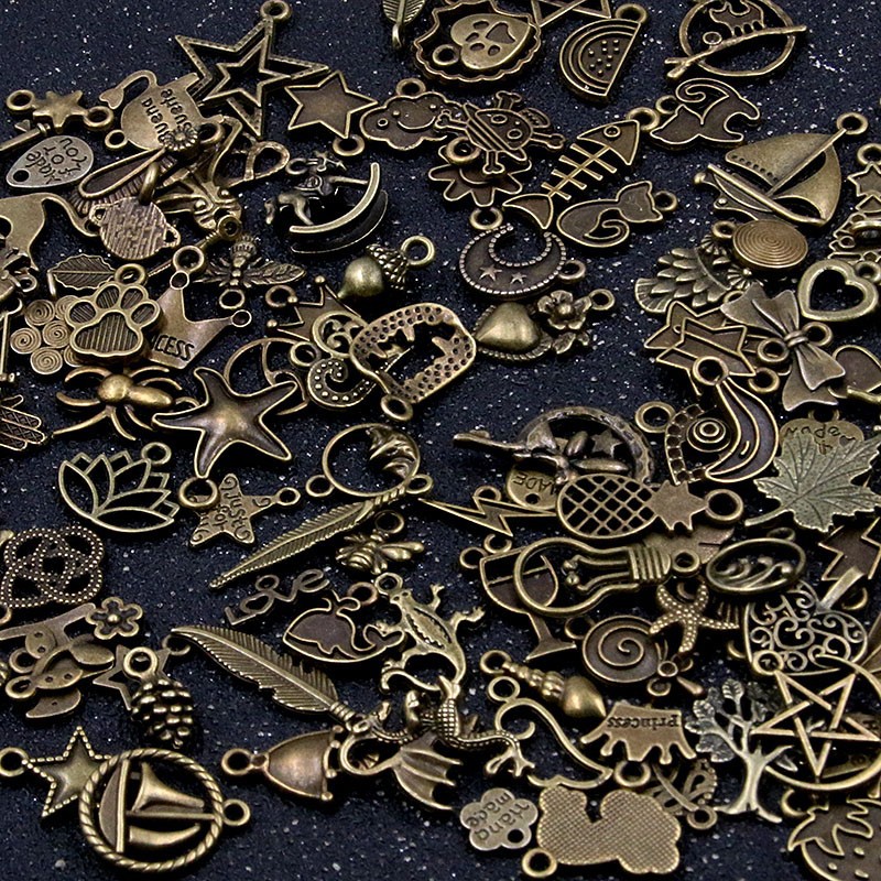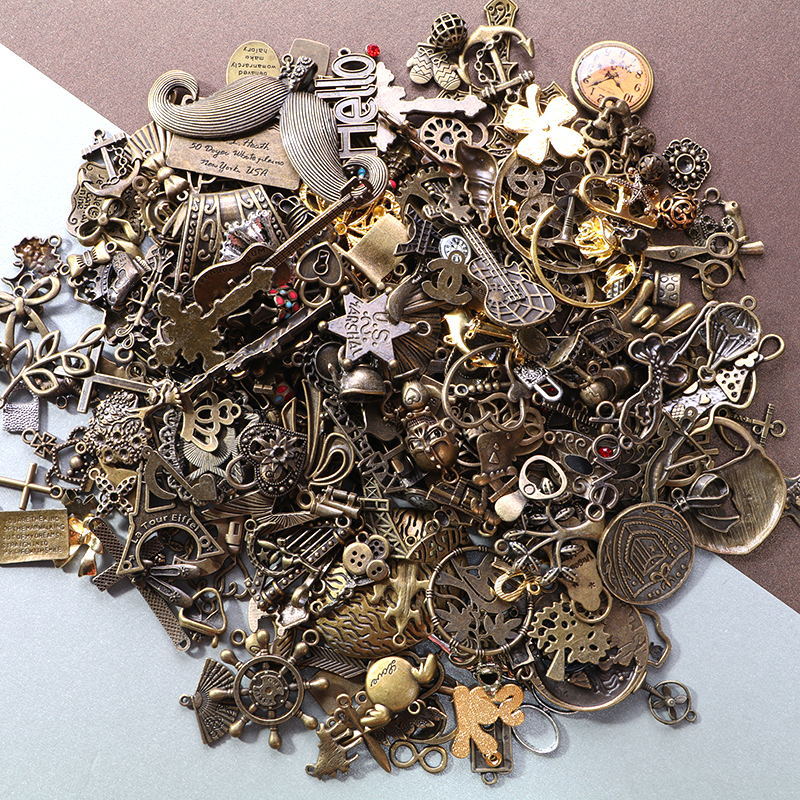 跨镜diy材料合金配件复古耳环项链饰品古青铜小吊坠挂件混款