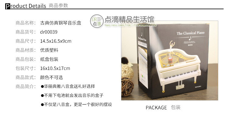 【产品名称】古典钢琴音乐盒 小号