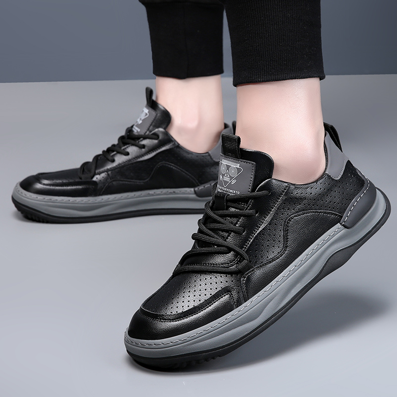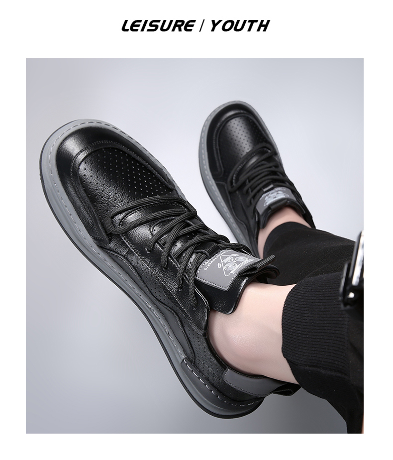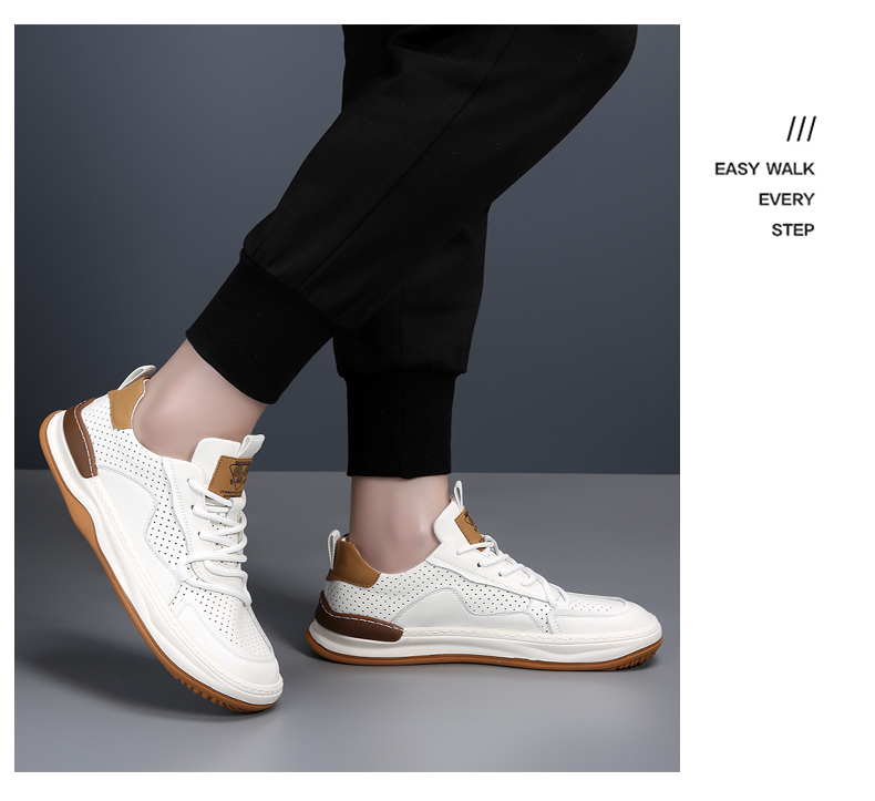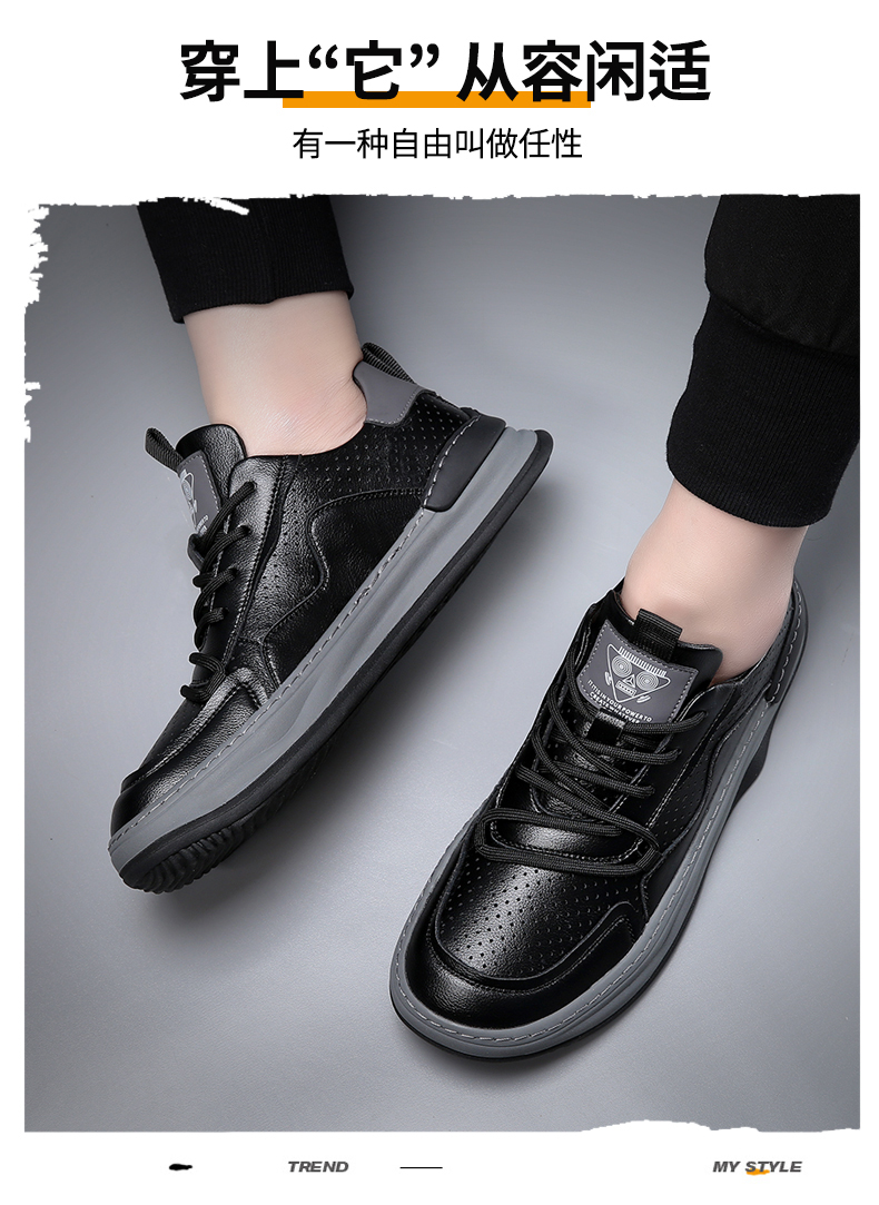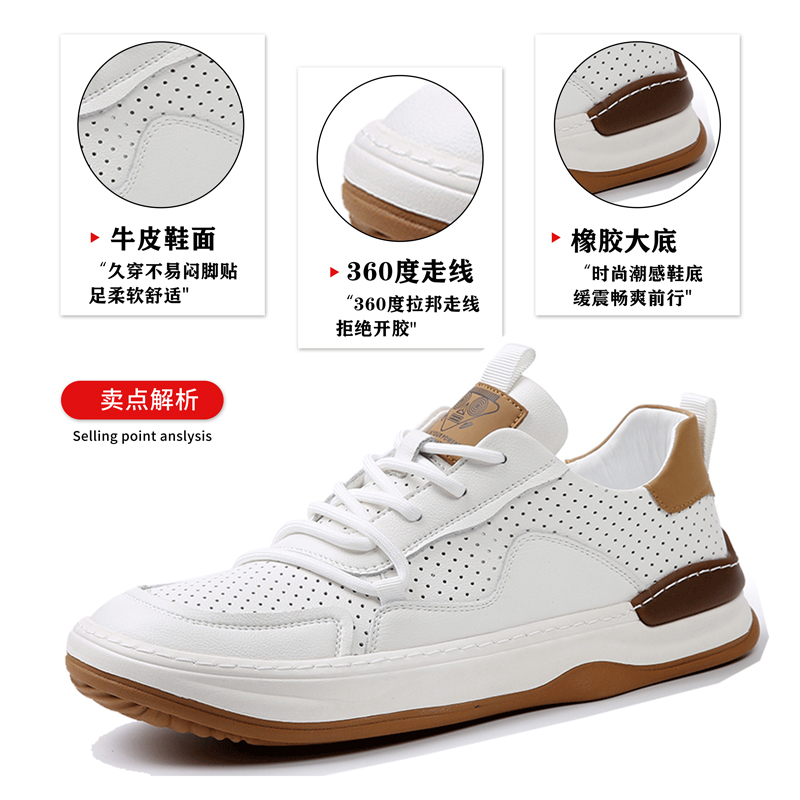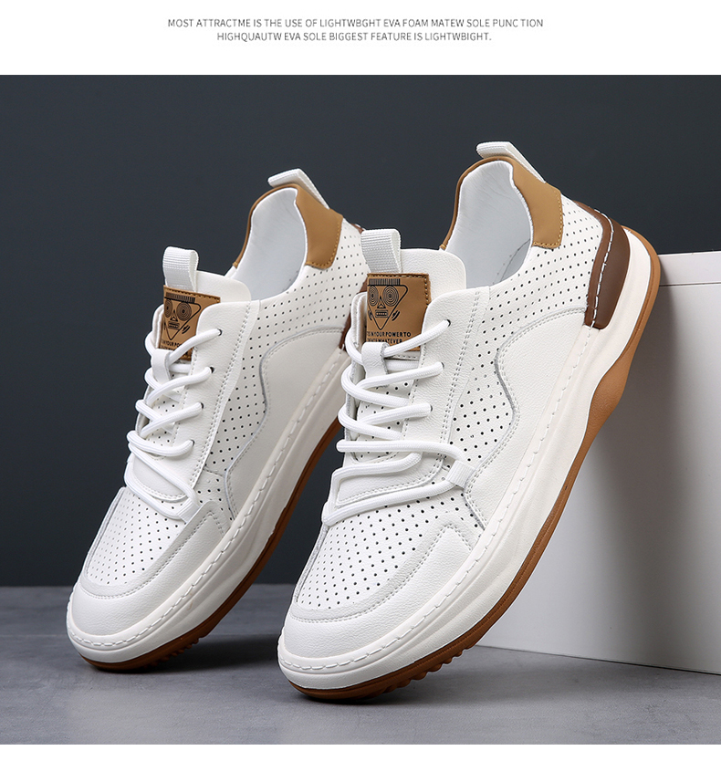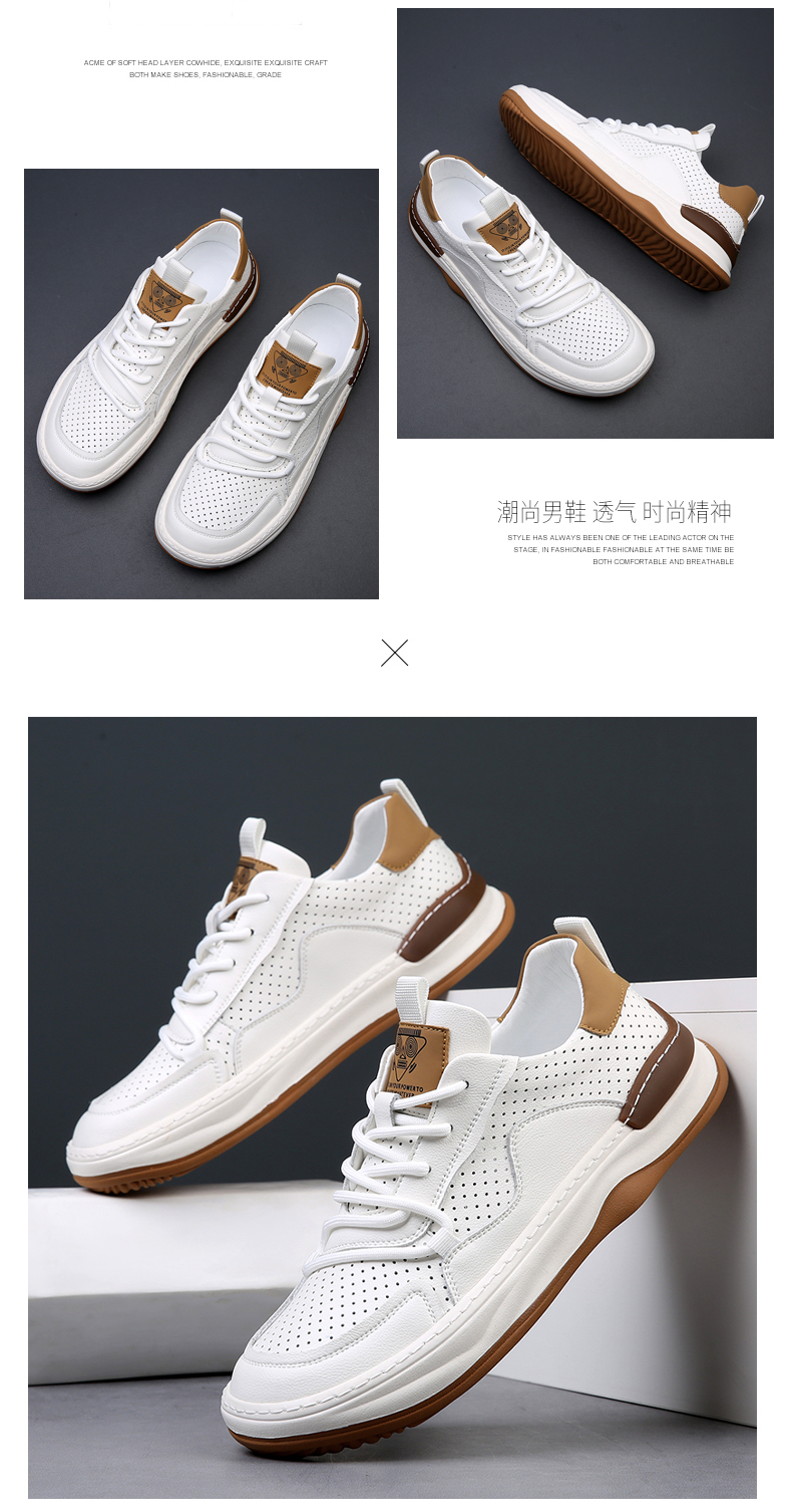 小白鞋男夏季透氣真皮板鞋2023新款潮流網紅小醜鞋百搭男士休閒鞋