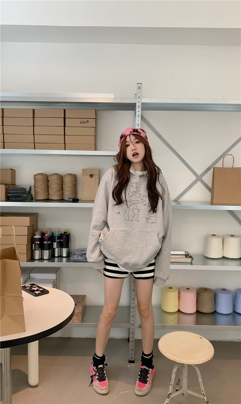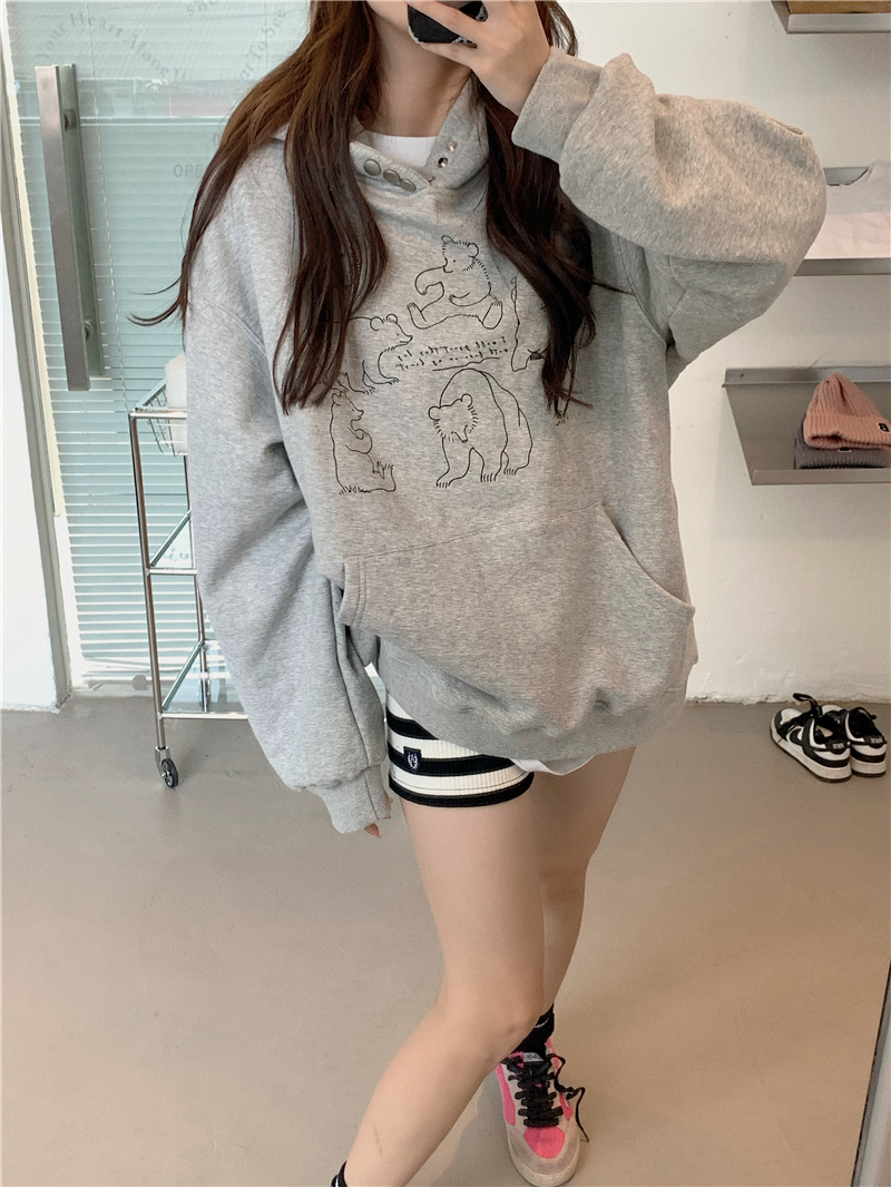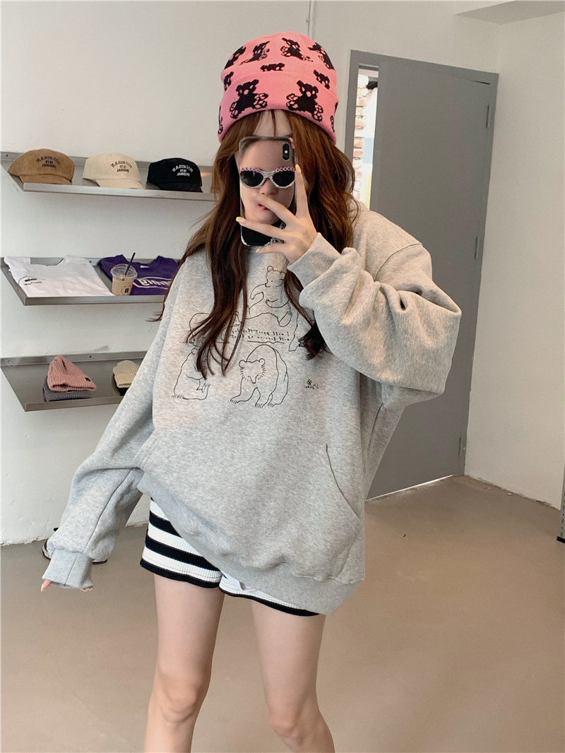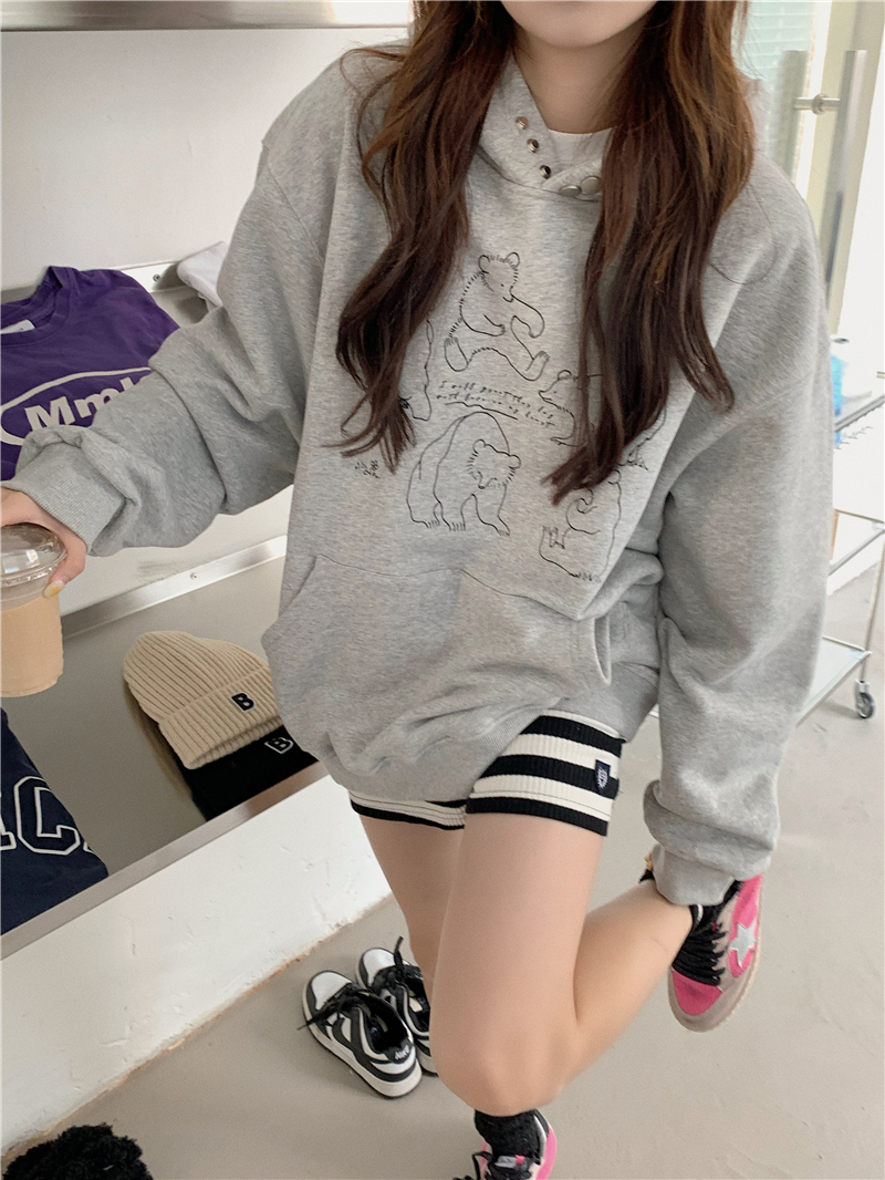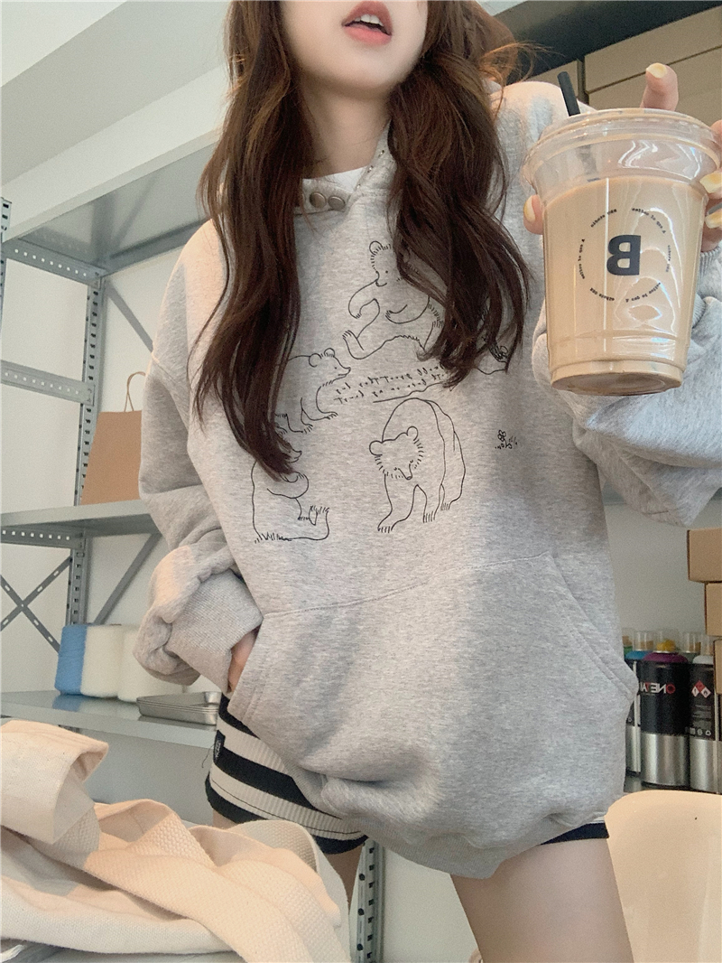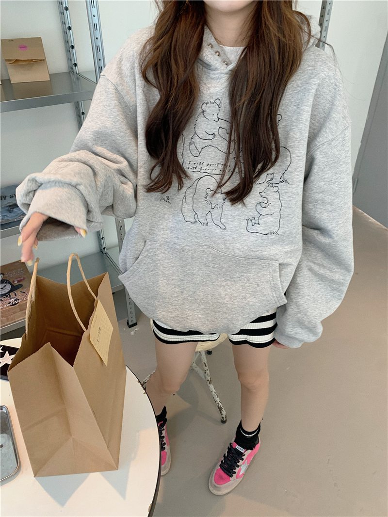 慵懶風連帽加絨衛衣外套女秋冬美式復古設計感oversize粉色上衣