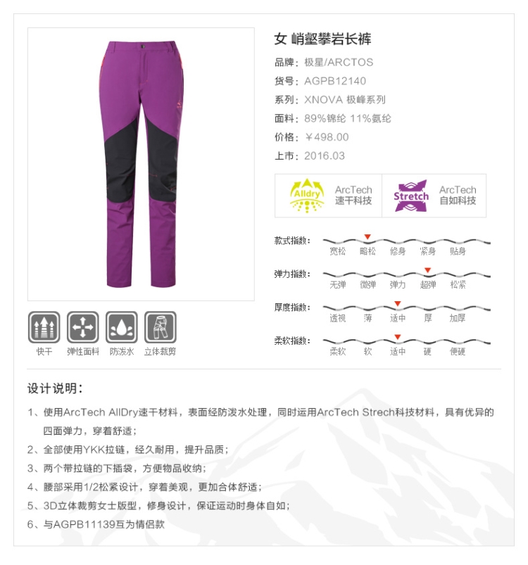 【清倉】極星 女戶外速乾褲耐磨登山攀巖彈力快乾長褲 AGPB12140