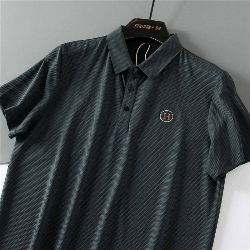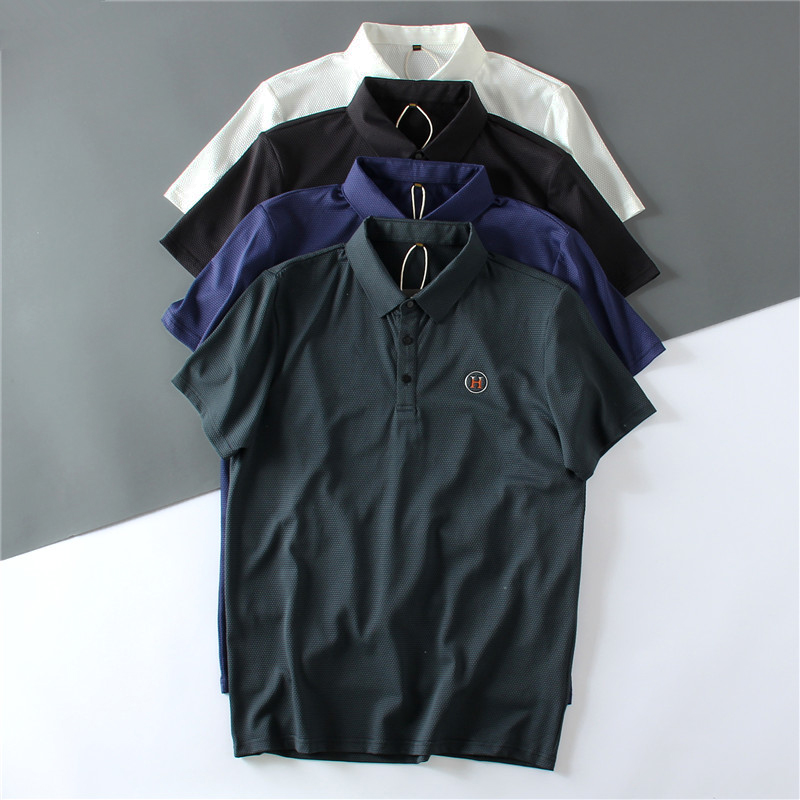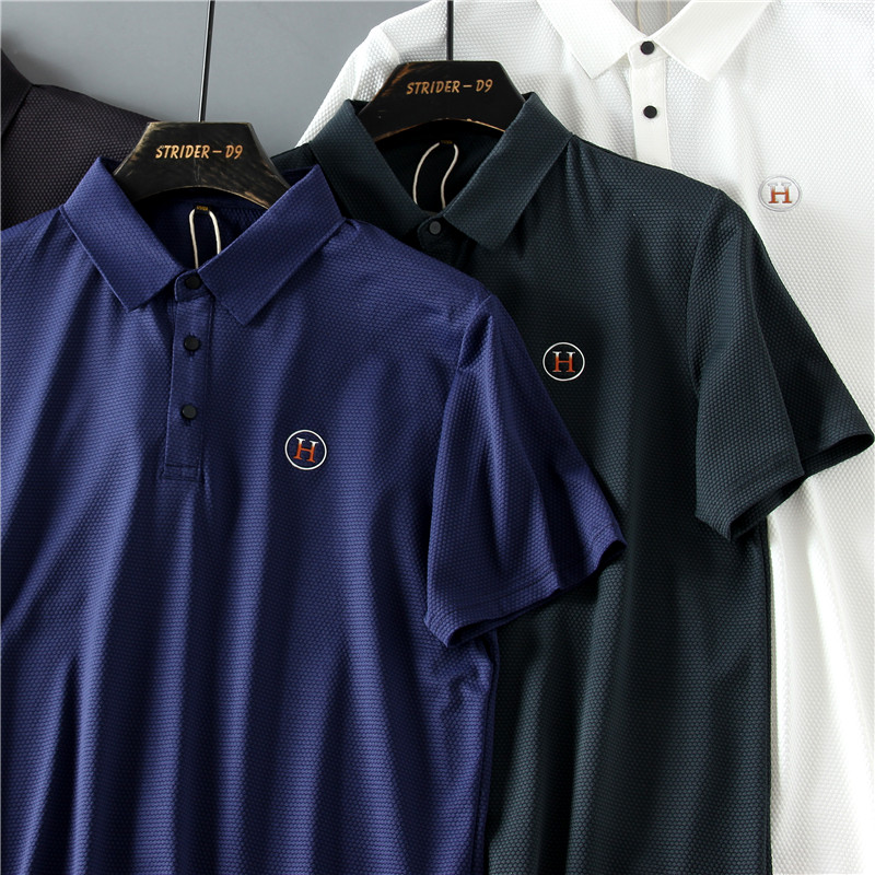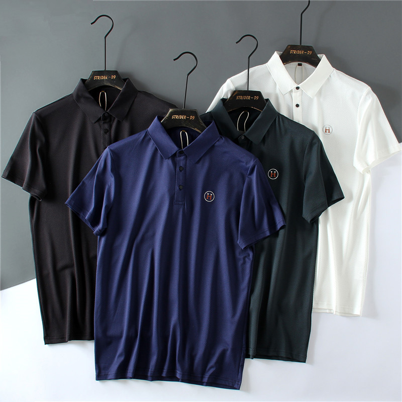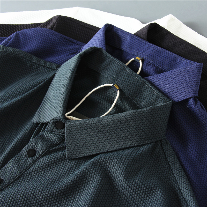 3D蜂窩透氣孔!輕商務高端垂感冰絲T恤 純色百搭短袖翻領POLO衫男