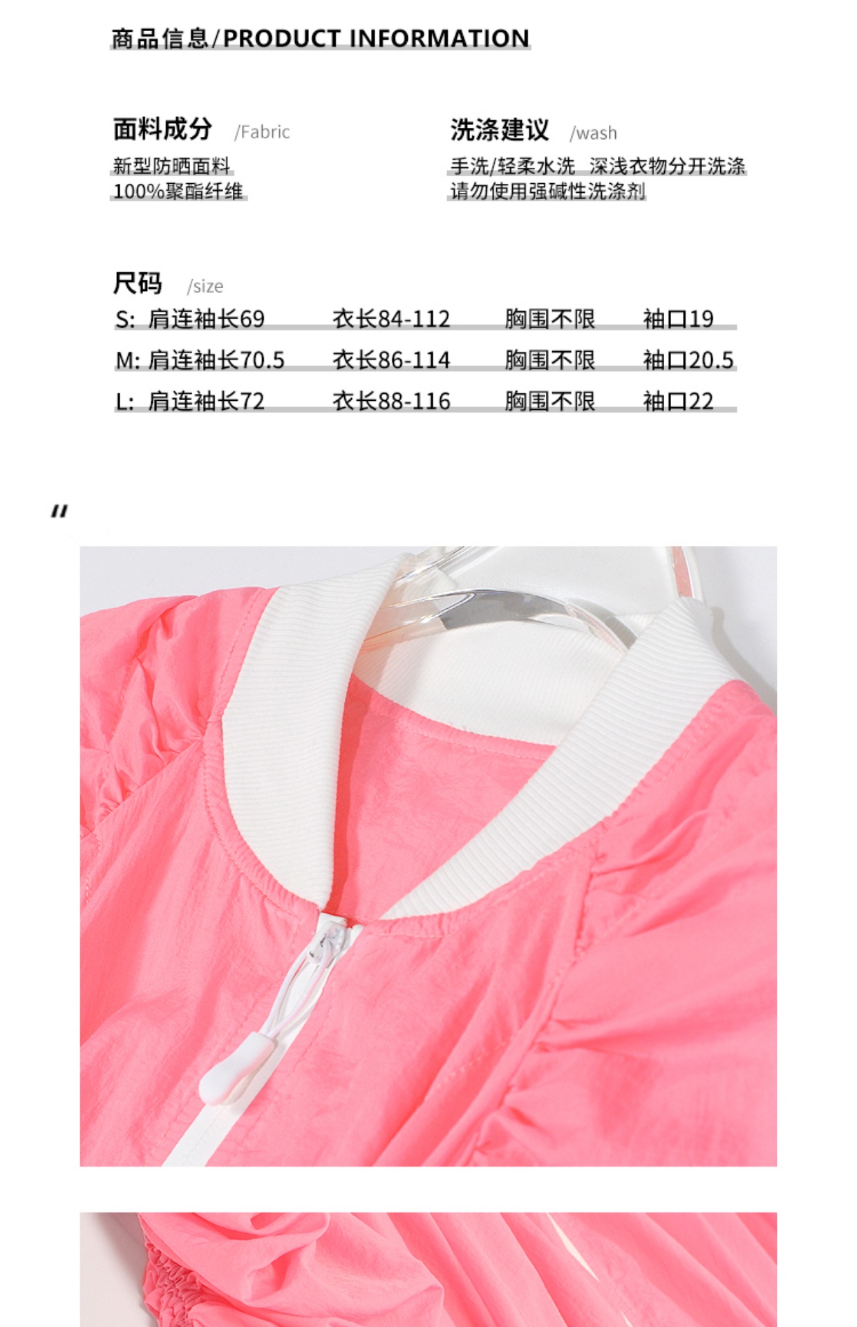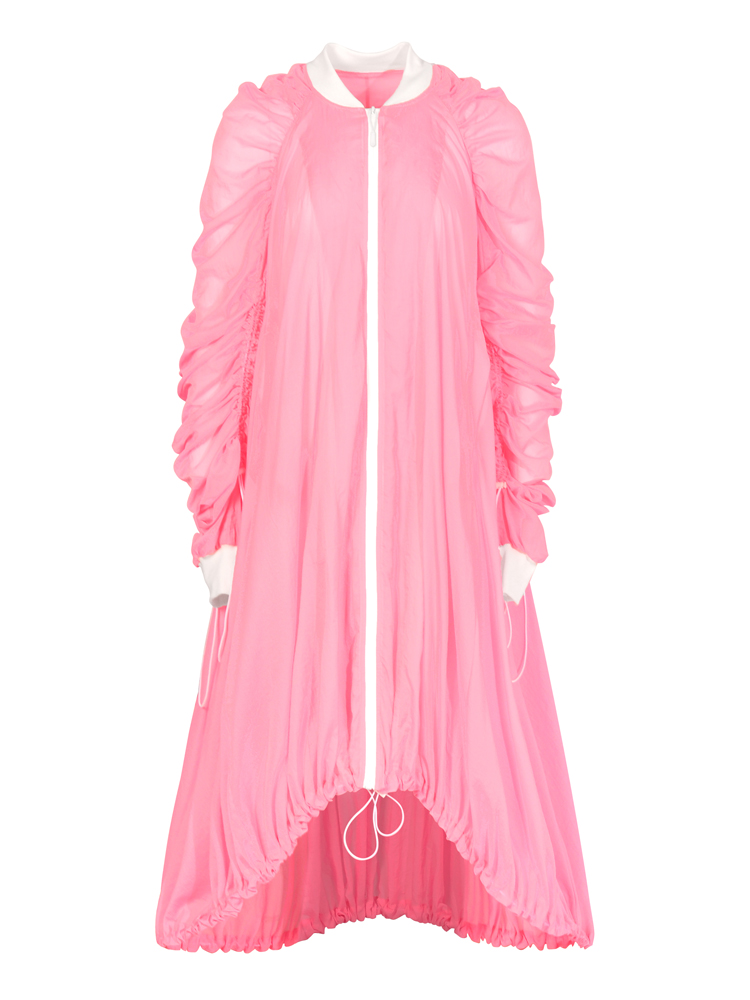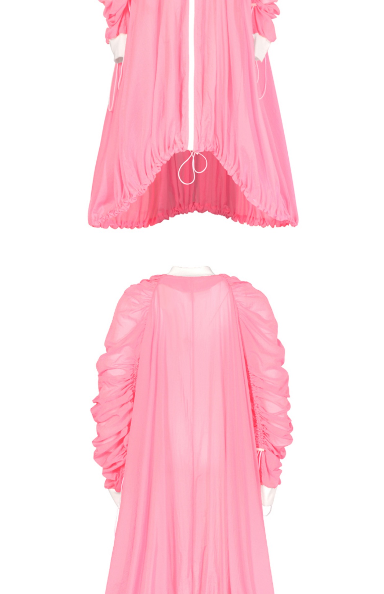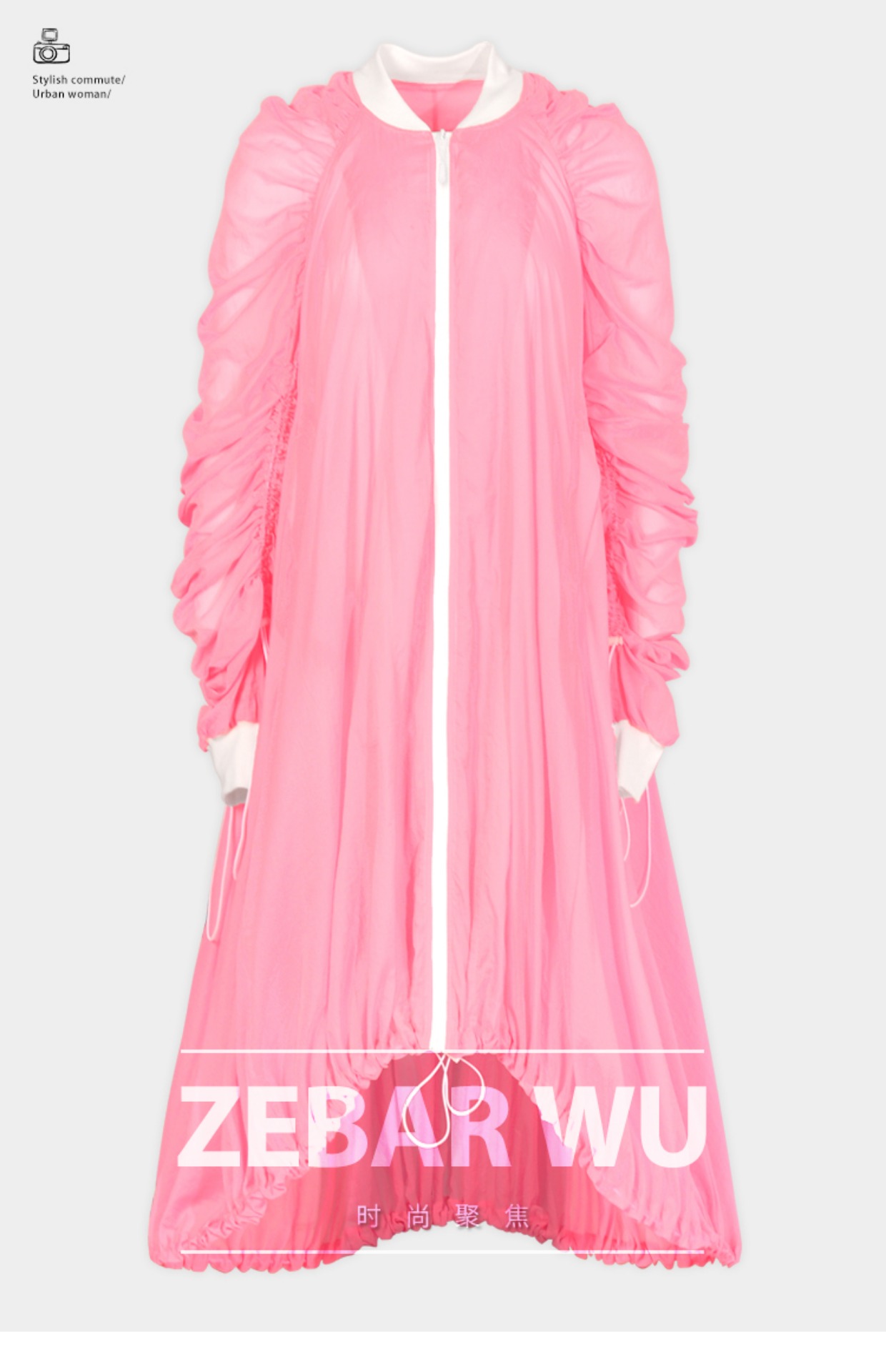 個性設計糖果粉色超長款輕薄戶外運動工裝外套露營全包圍防曬風衣