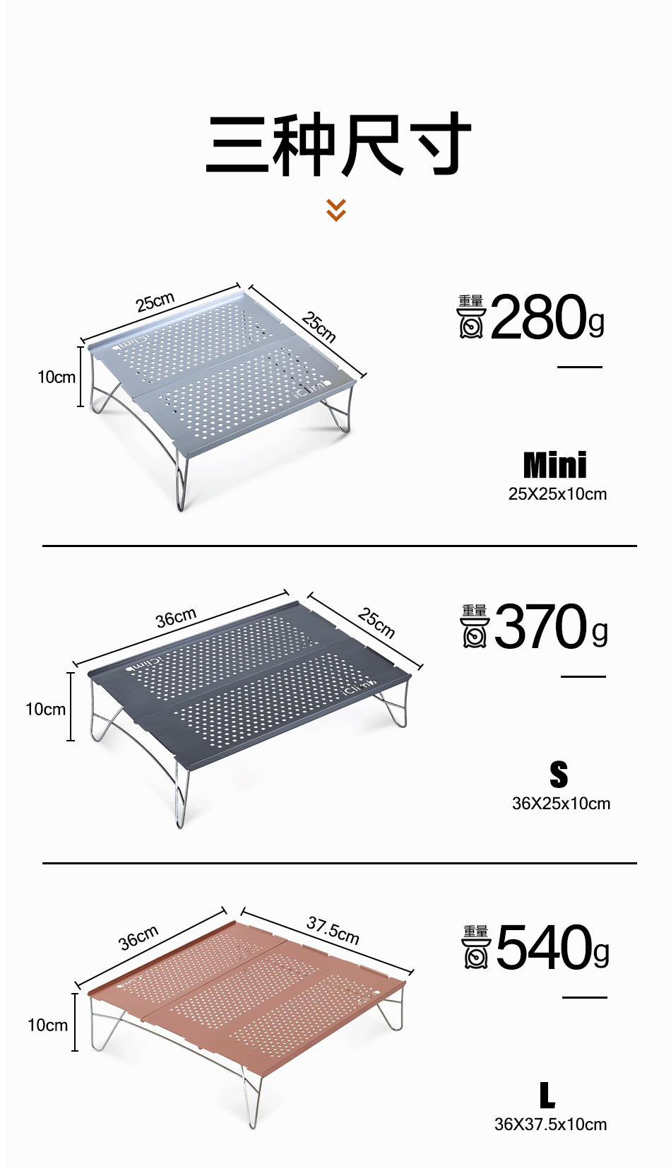 顏色分類 【兩片桌·Mini槍色】超輕量約280g 承重15kg 【兩片桌·Mini銀色】超輕量約280g 承重15kg 【兩片桌·S槍色】超輕量化約370g 承重15kg 【兩片桌·S銀色】超輕量化約370g 承重15kg 【兩片桌·S靛藍】超輕量約370g 承重15kg 【兩片桌·S橄欖綠】超輕量約370g 承重15kg 【兩片桌·S玫瑰金】超輕量約370g 承重15kg 【兩片桌·S炫燃金】超輕量約370g 承重15kg 【三片桌·L槍色】超輕量約540g 承重15kg 【三片桌·L銀色】超輕量約540g 承重15kg 【三片桌·L玫瑰金】超輕量約540g 承重15kg 槍色Mini摺疊桌+超輕地面椅*1 槍色S碼摺疊桌+超輕地面椅*1 槍色L碼摺疊桌+超輕地面椅*2 槍色L碼摺疊桌+超輕月亮椅*2