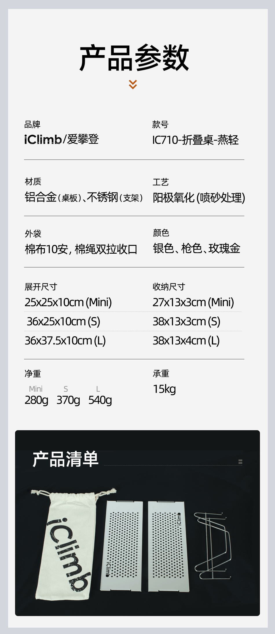 iClimb燕輕桌戶外bc茶桌鋁合金超輕摺疊桌輕量化露營迷你小桌子