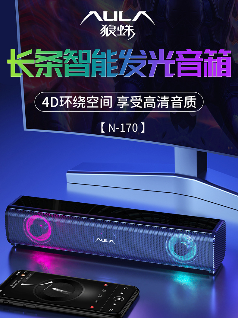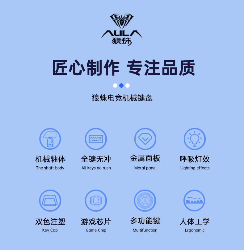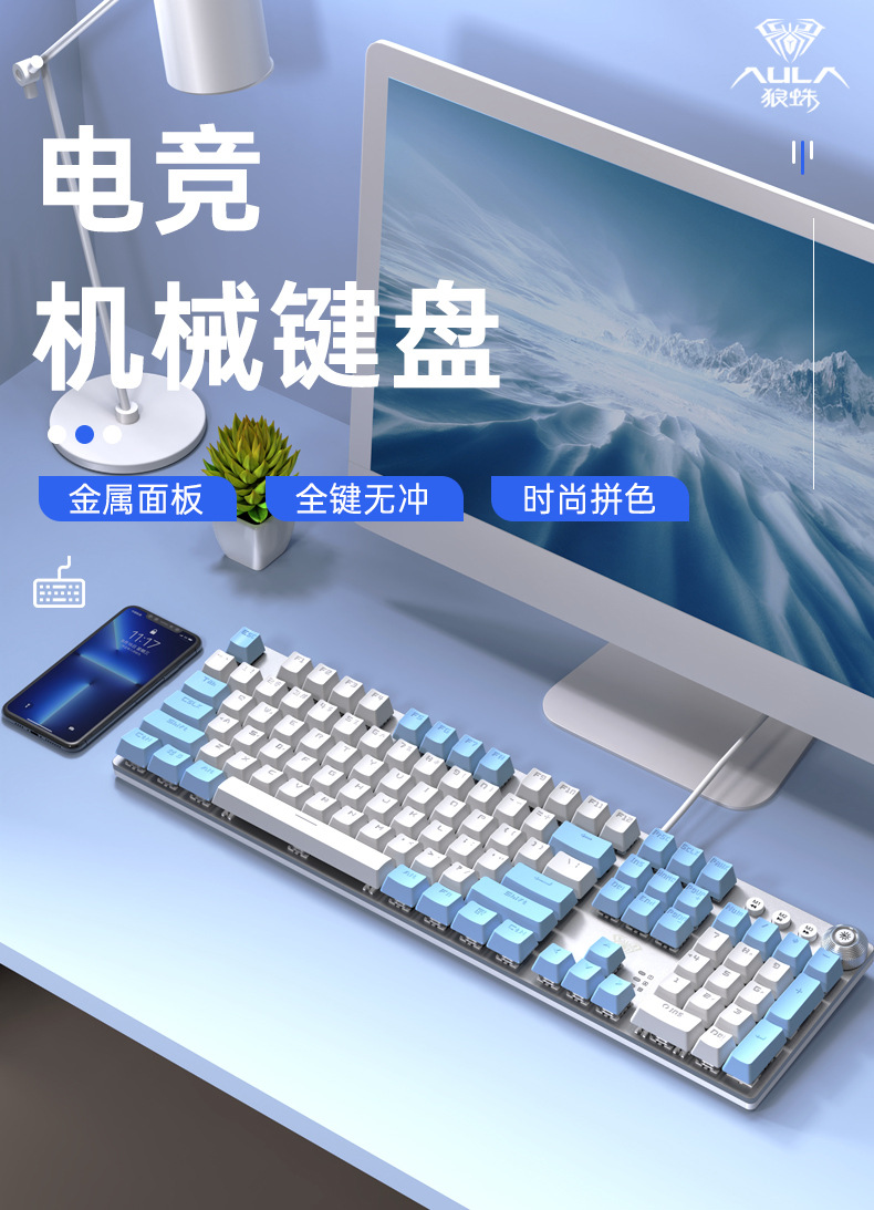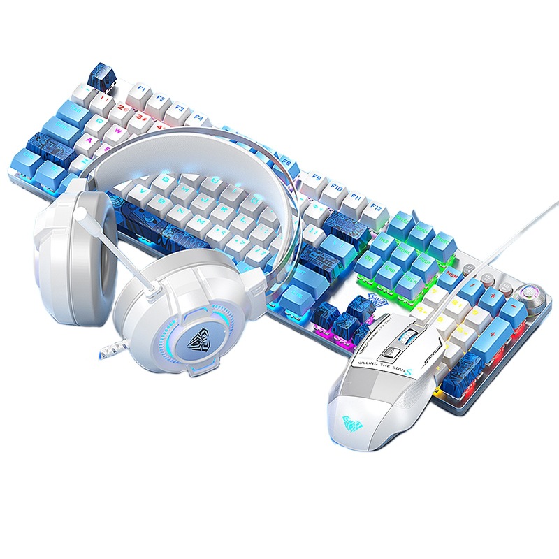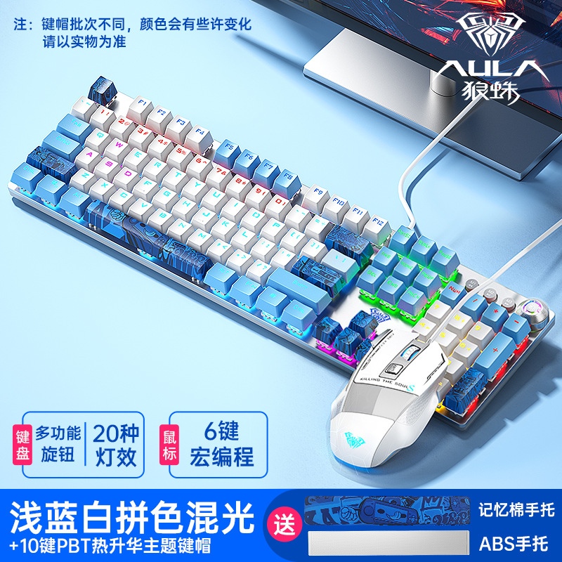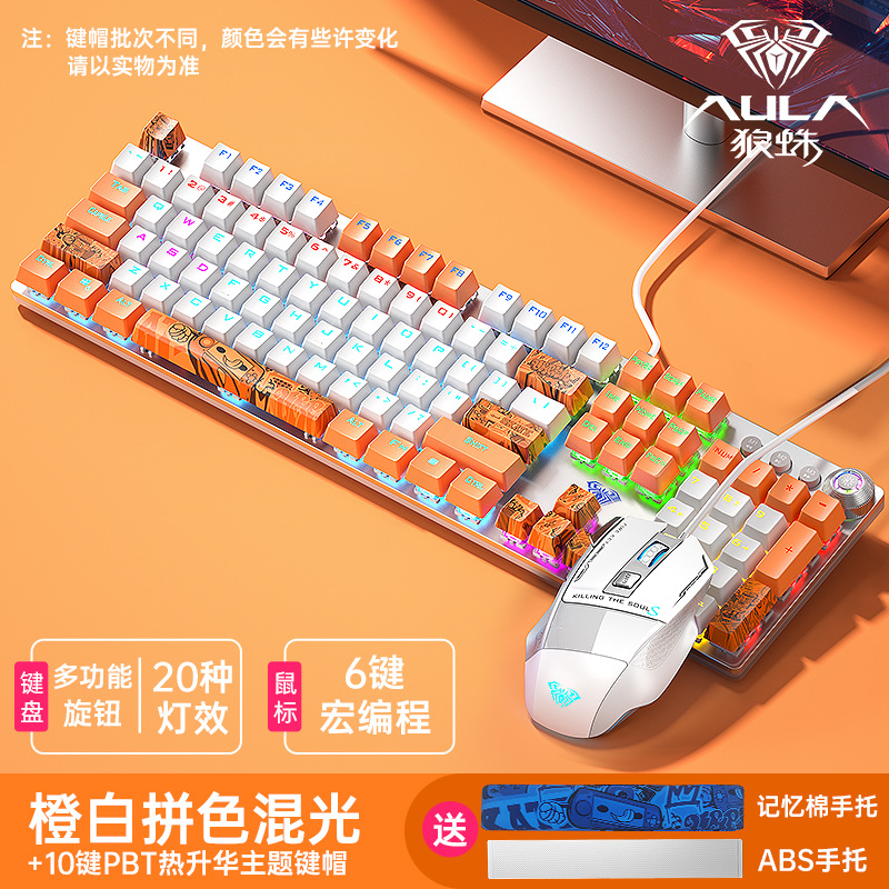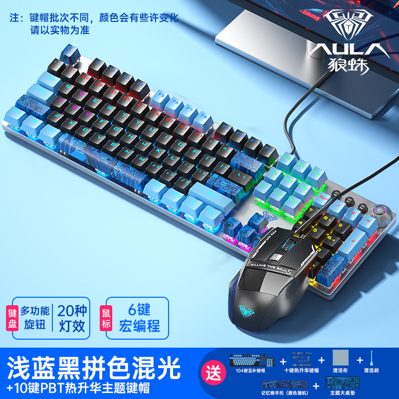 AULA/狼蛛机械键盘鼠标耳机三件套有线游戏键鼠音箱套装带手托