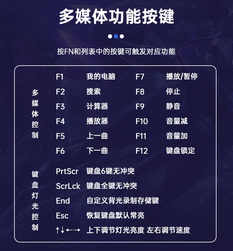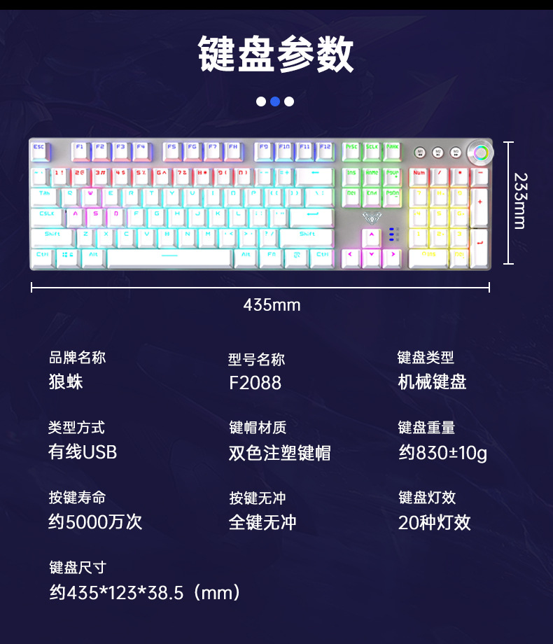 包装清单 键盘、鼠标、说明书、合格证、数据线、拔键器、彩盒