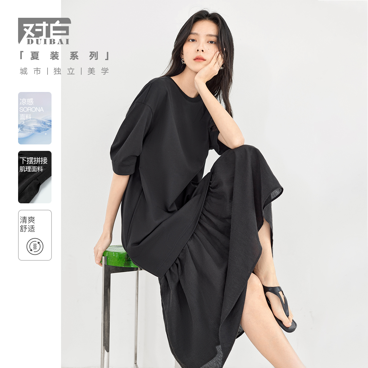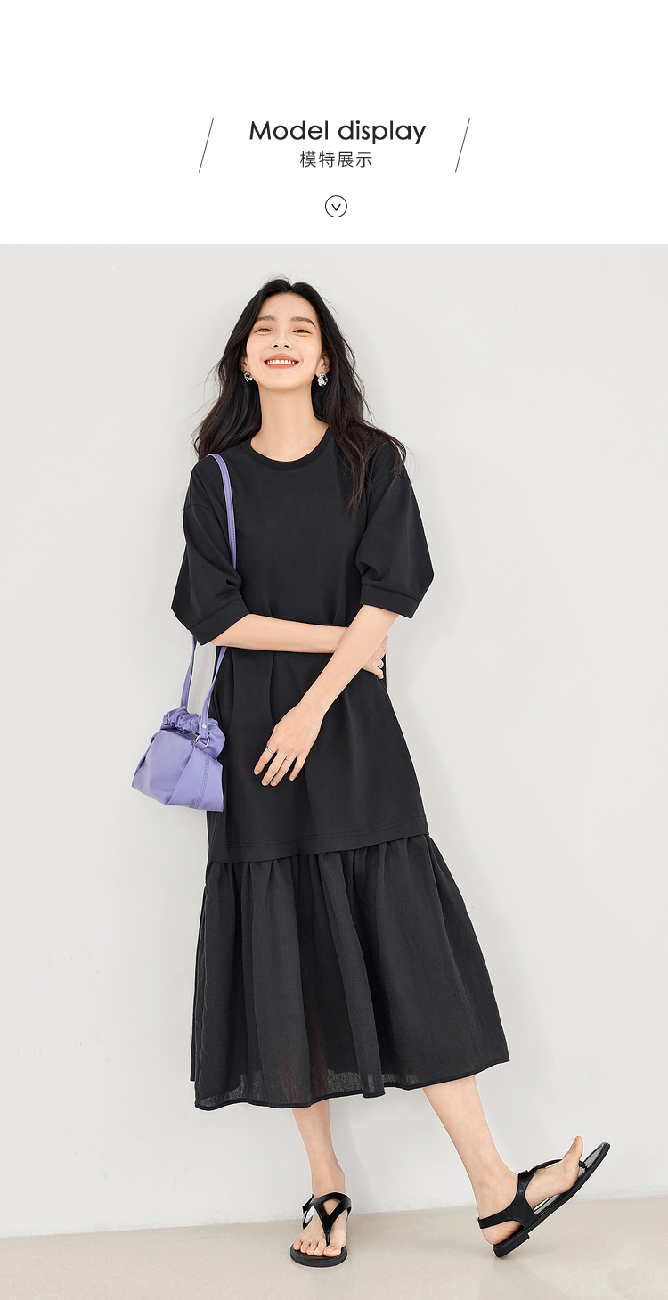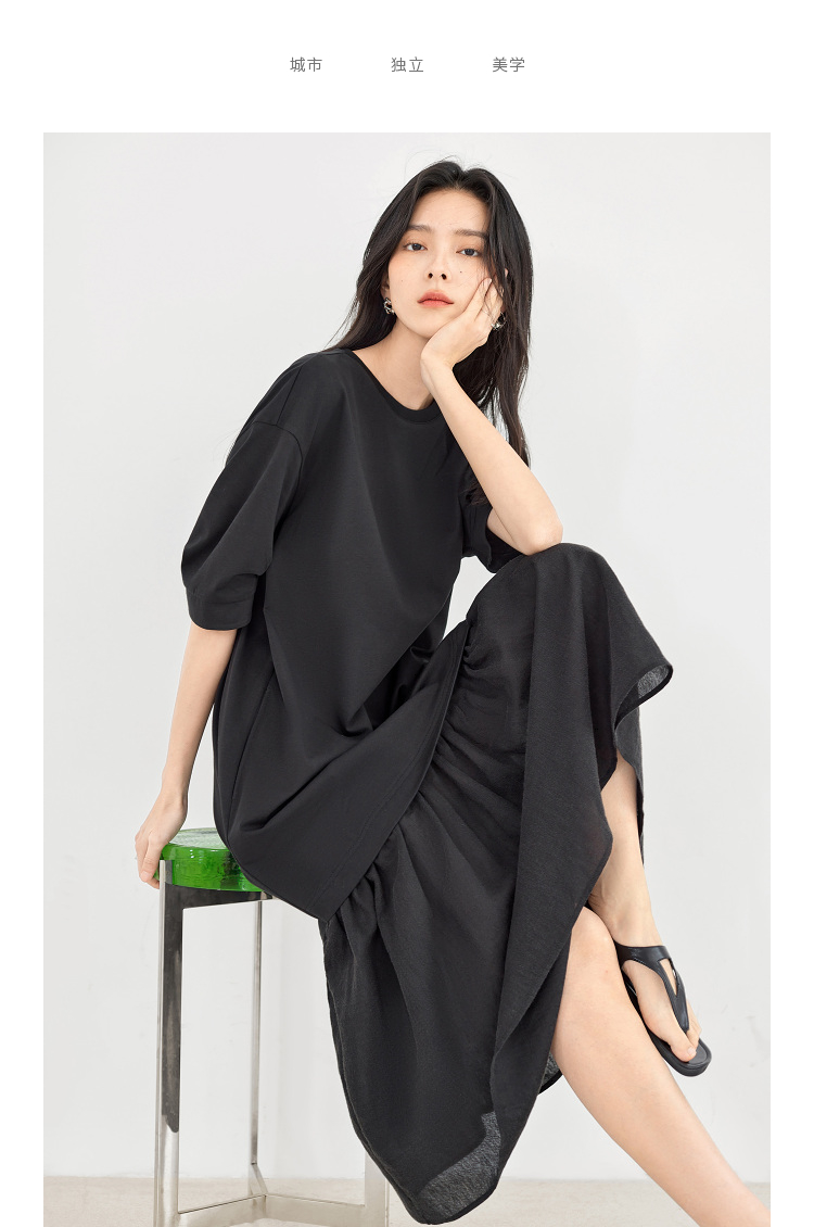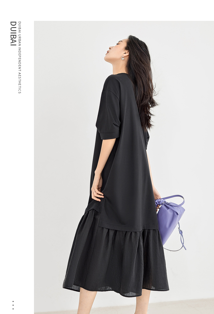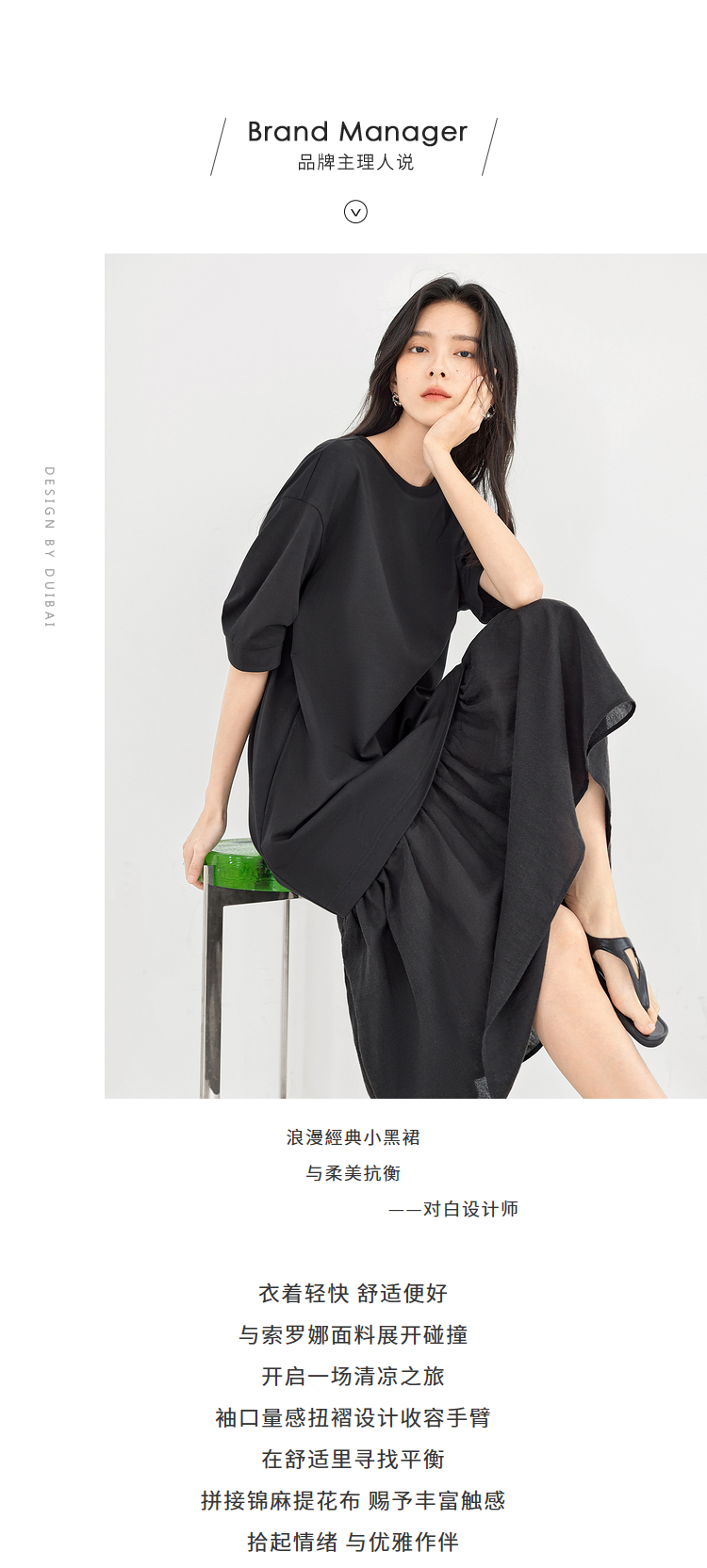 對白索羅娜慵懶風洋裝2023新款女垂墜感洋裝氣質顯瘦小黑裙子