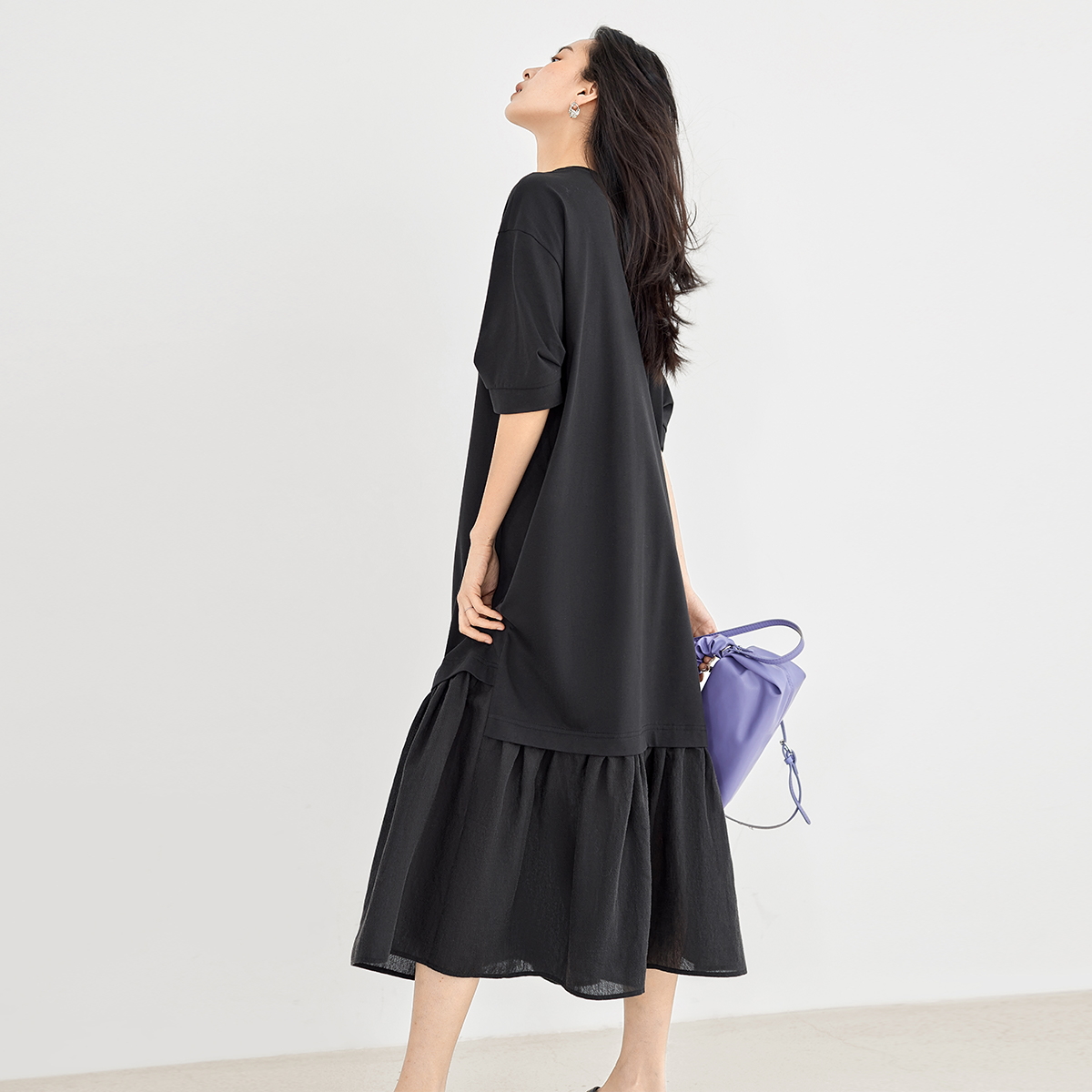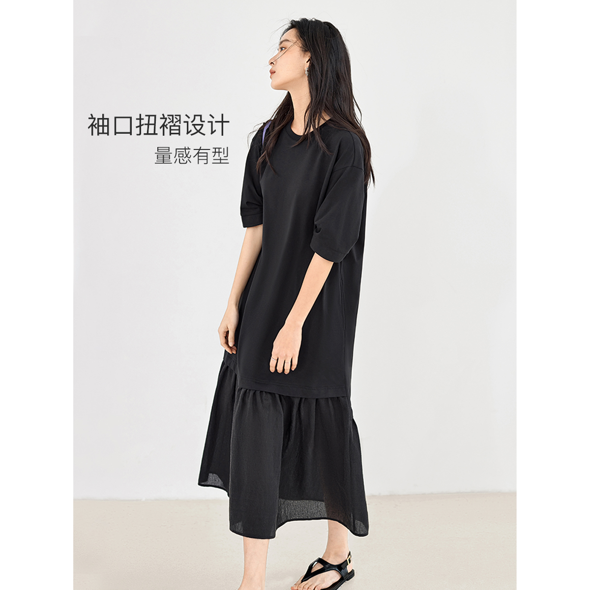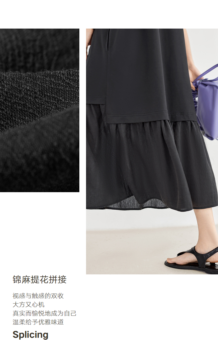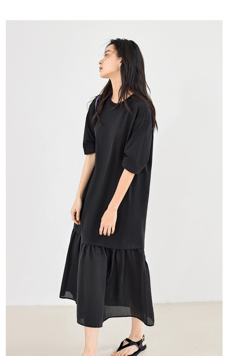 對白索羅娜慵懶風洋裝2023新款女垂墜感洋裝氣質顯瘦小黑裙子