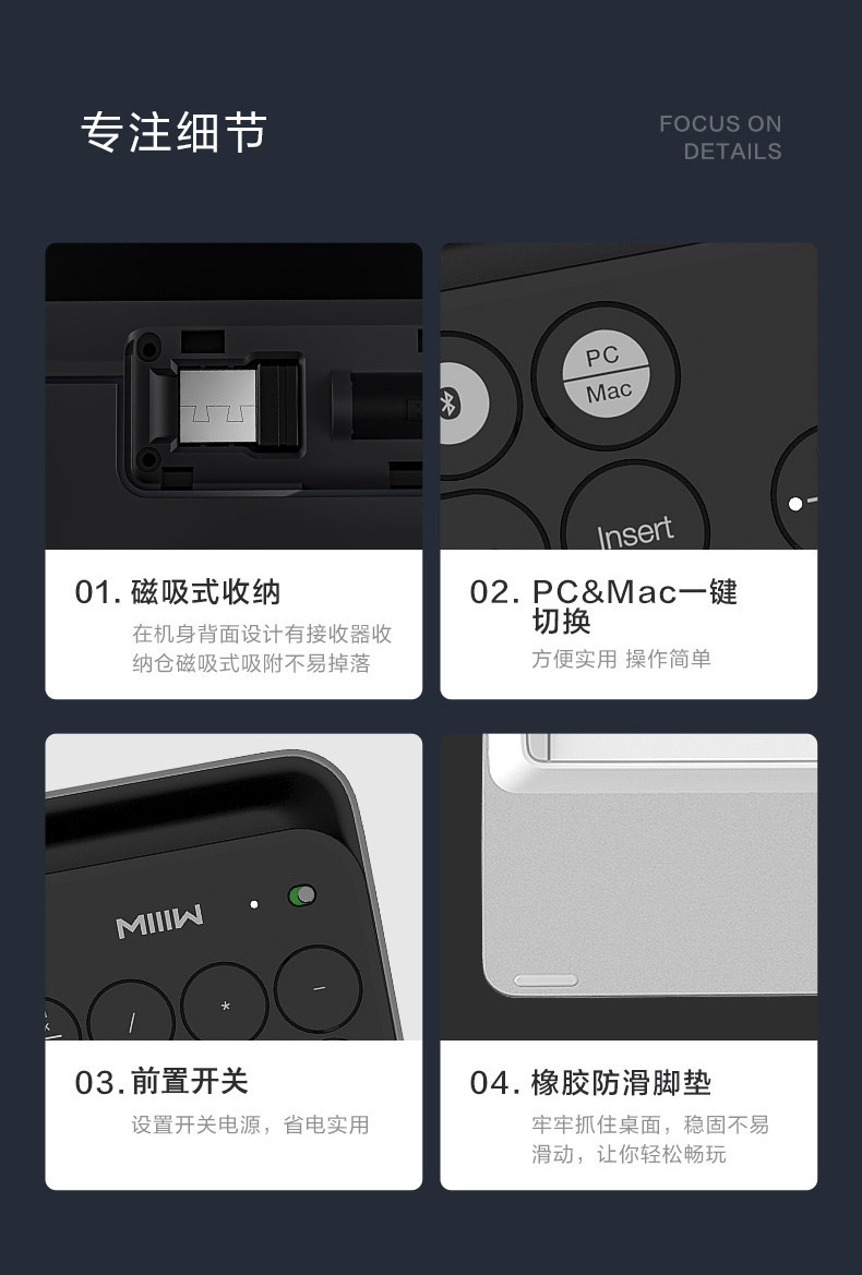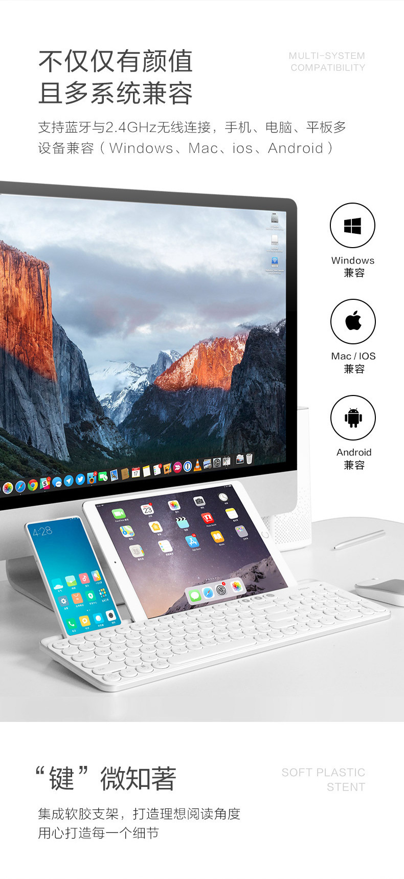 有品米物无线蓝牙双模键盘 蓝牙和USB两种连接一键切换多系统兼容