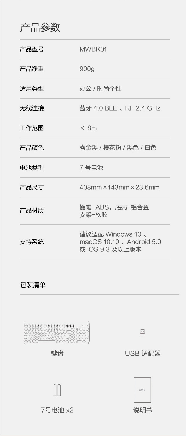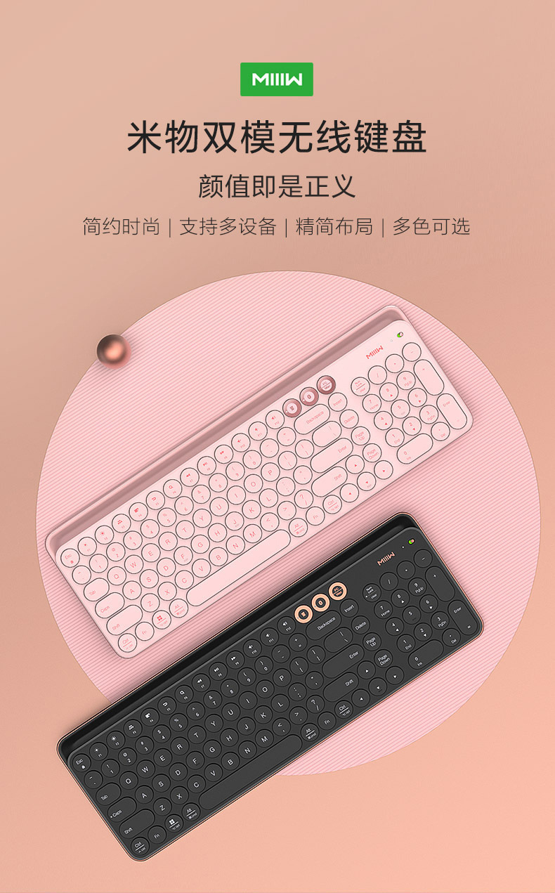 颜色 米物无线蓝牙双模键盘白色,米物无线蓝牙双模键盘粉色,米物无线蓝牙双模键盘黑色,米物无线蓝牙双模键盘睿金黑