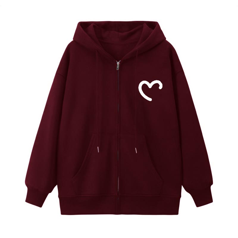 酒紅色開衫拉鍊衛衣外套女春秋2023新款爆款連帽oversize寬鬆上衣