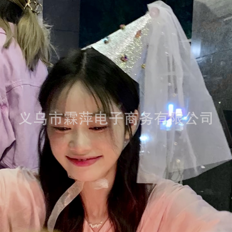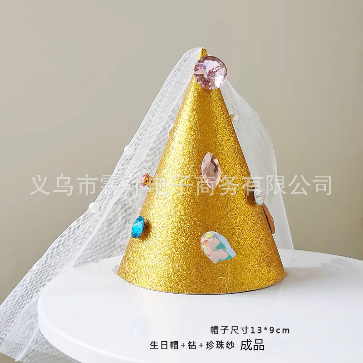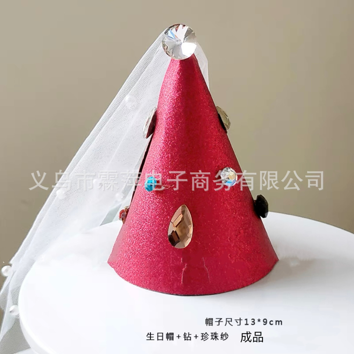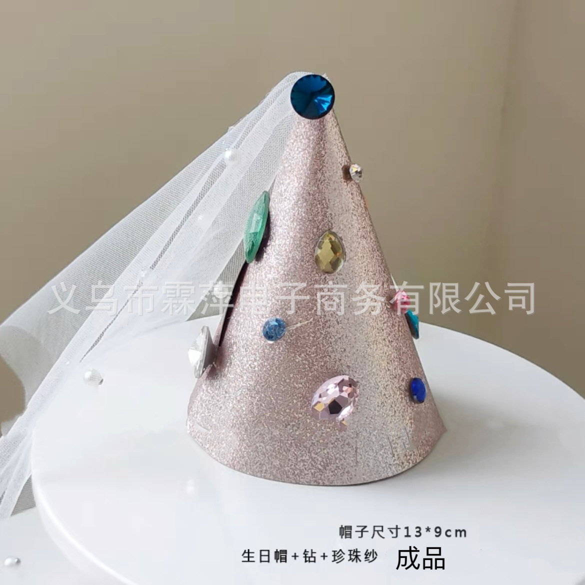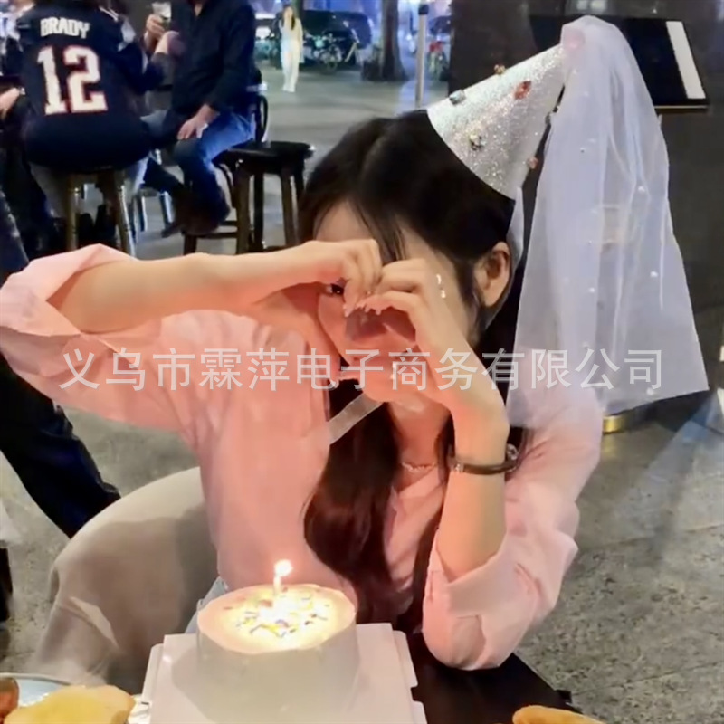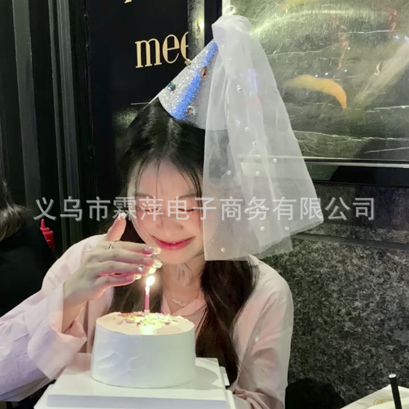 ins韩国网红派对珍珠钻石网纱生日帽成人儿童公主头饰拍照道具