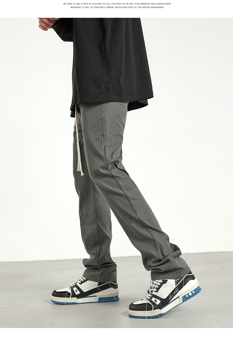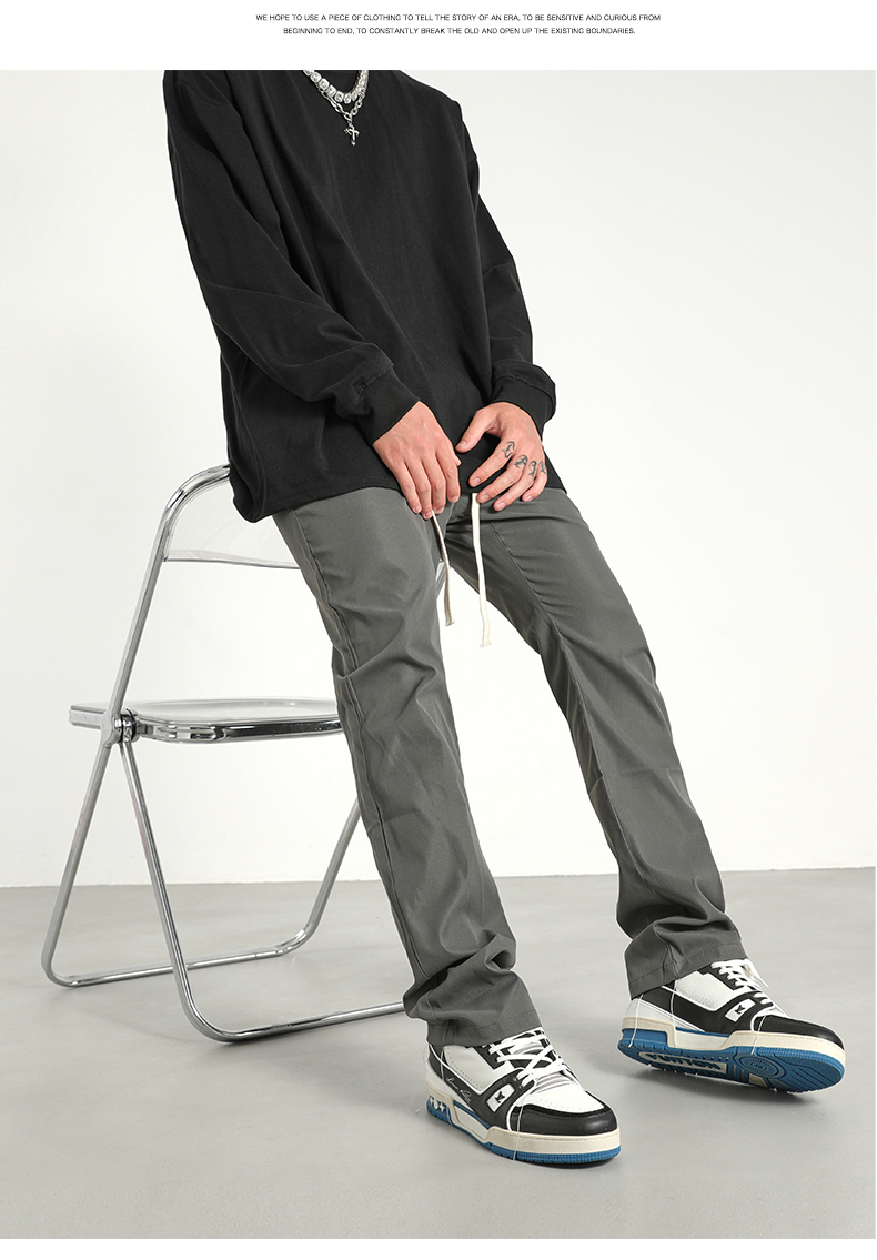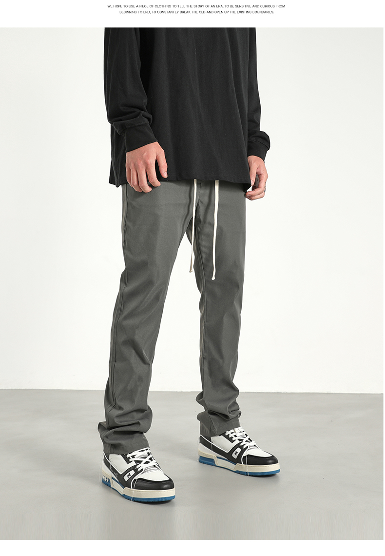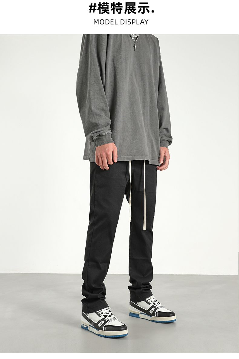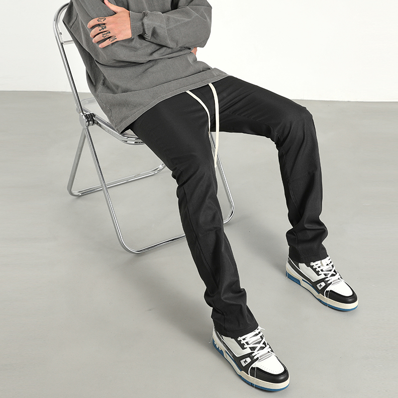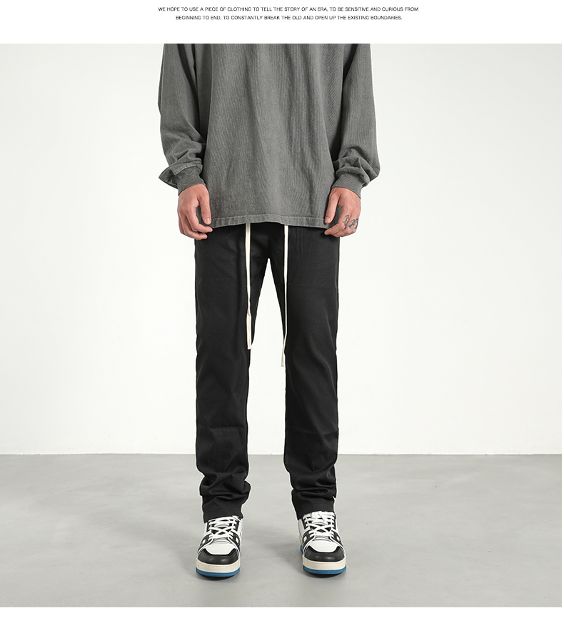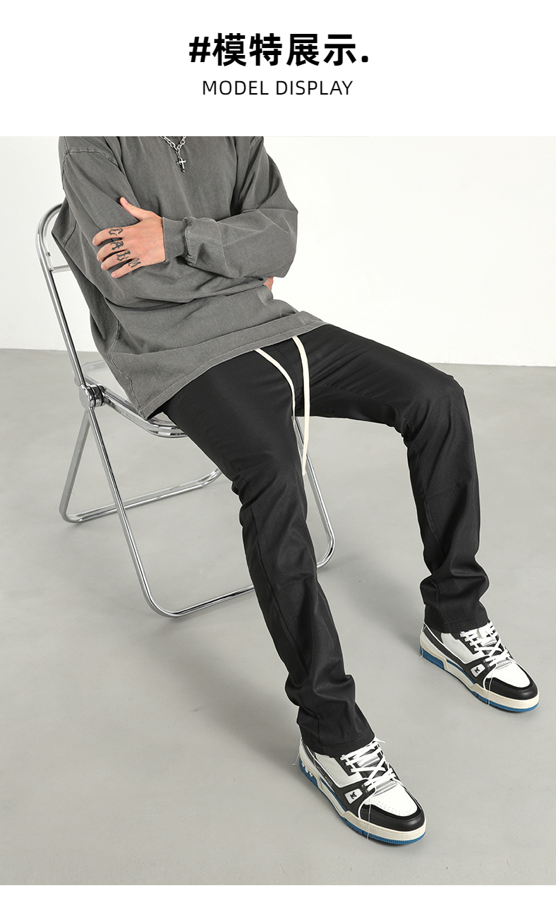 美式潮牌高街風基礎款百搭純色簡約休閒褲男抽繩飄帶修身煙管褲子