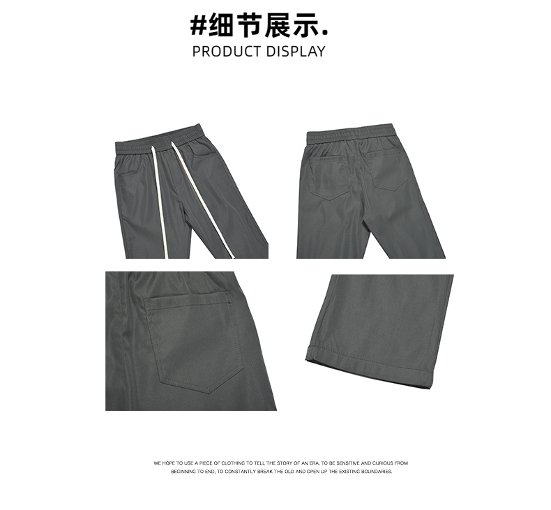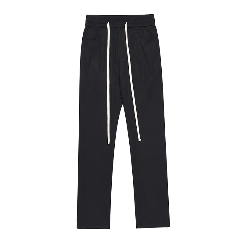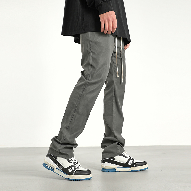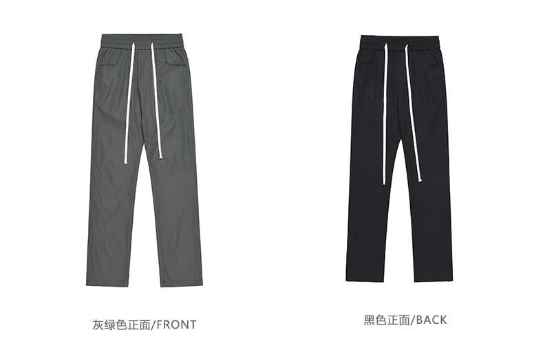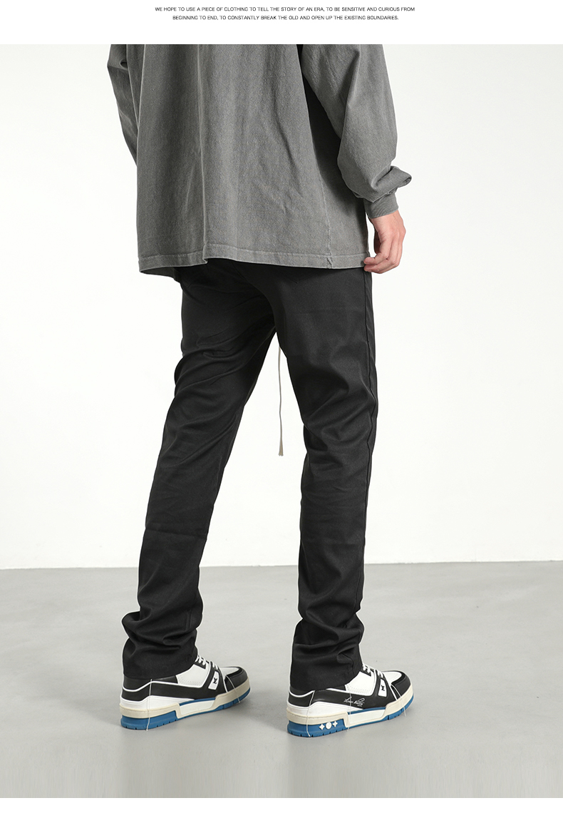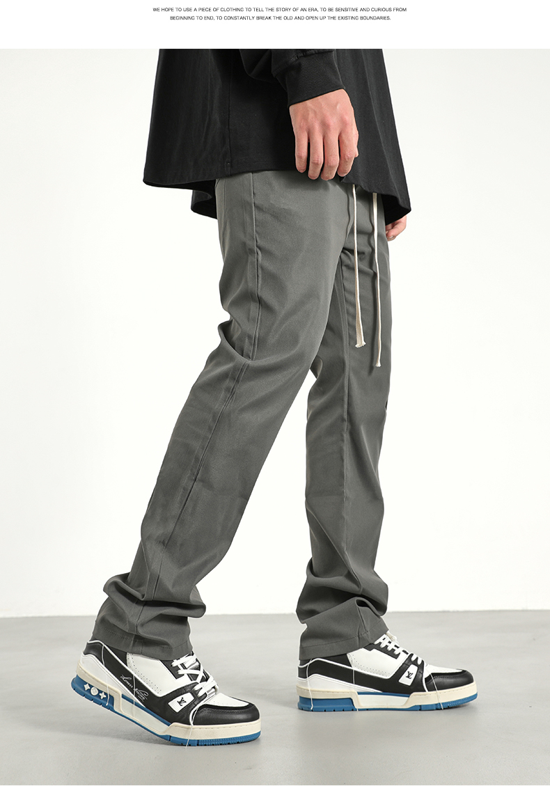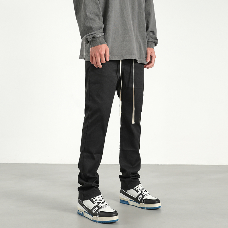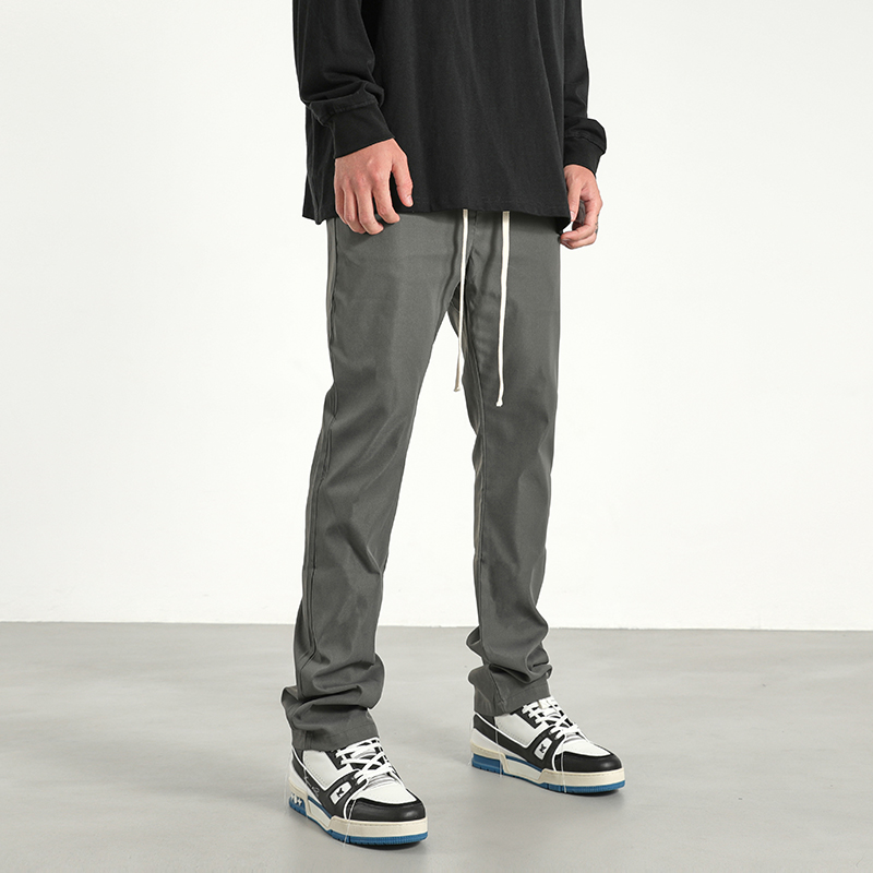 美式潮牌高街風基礎款百搭純色簡約休閒褲男抽繩飄帶修身煙管褲子