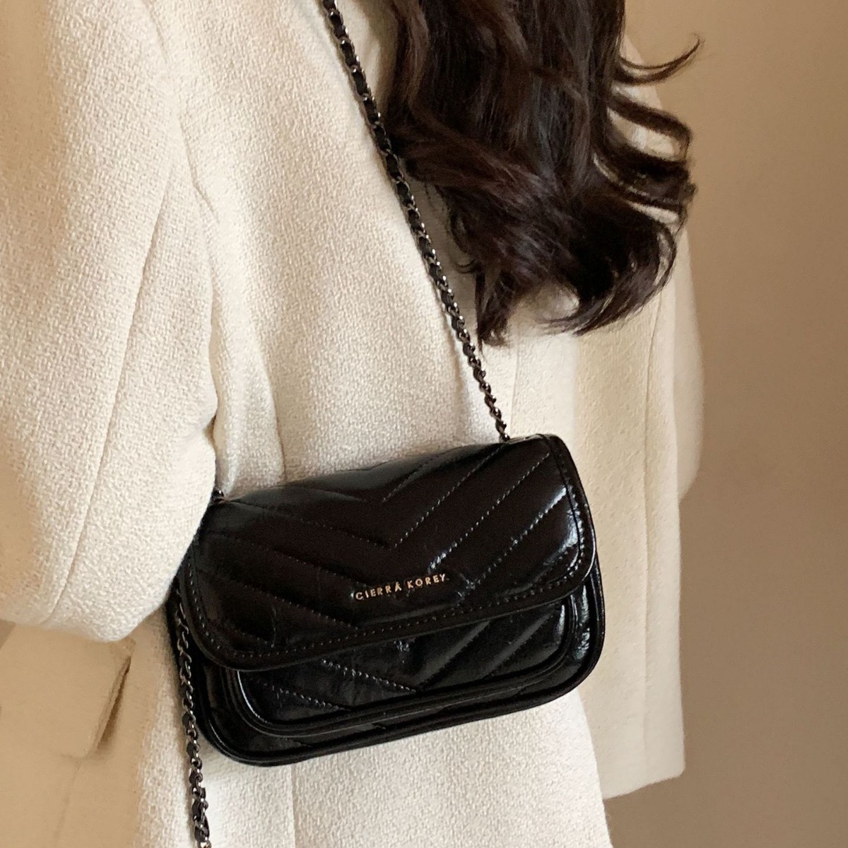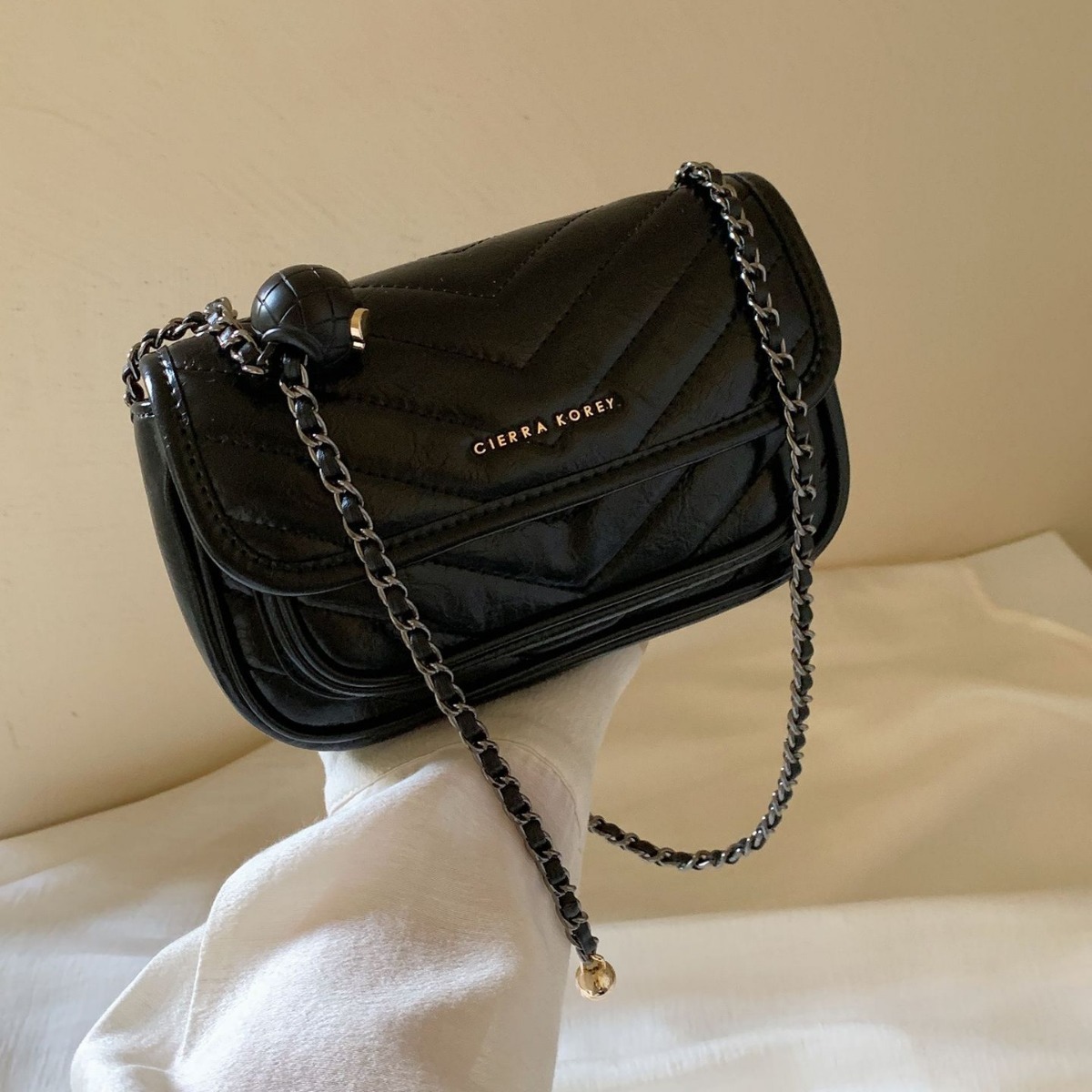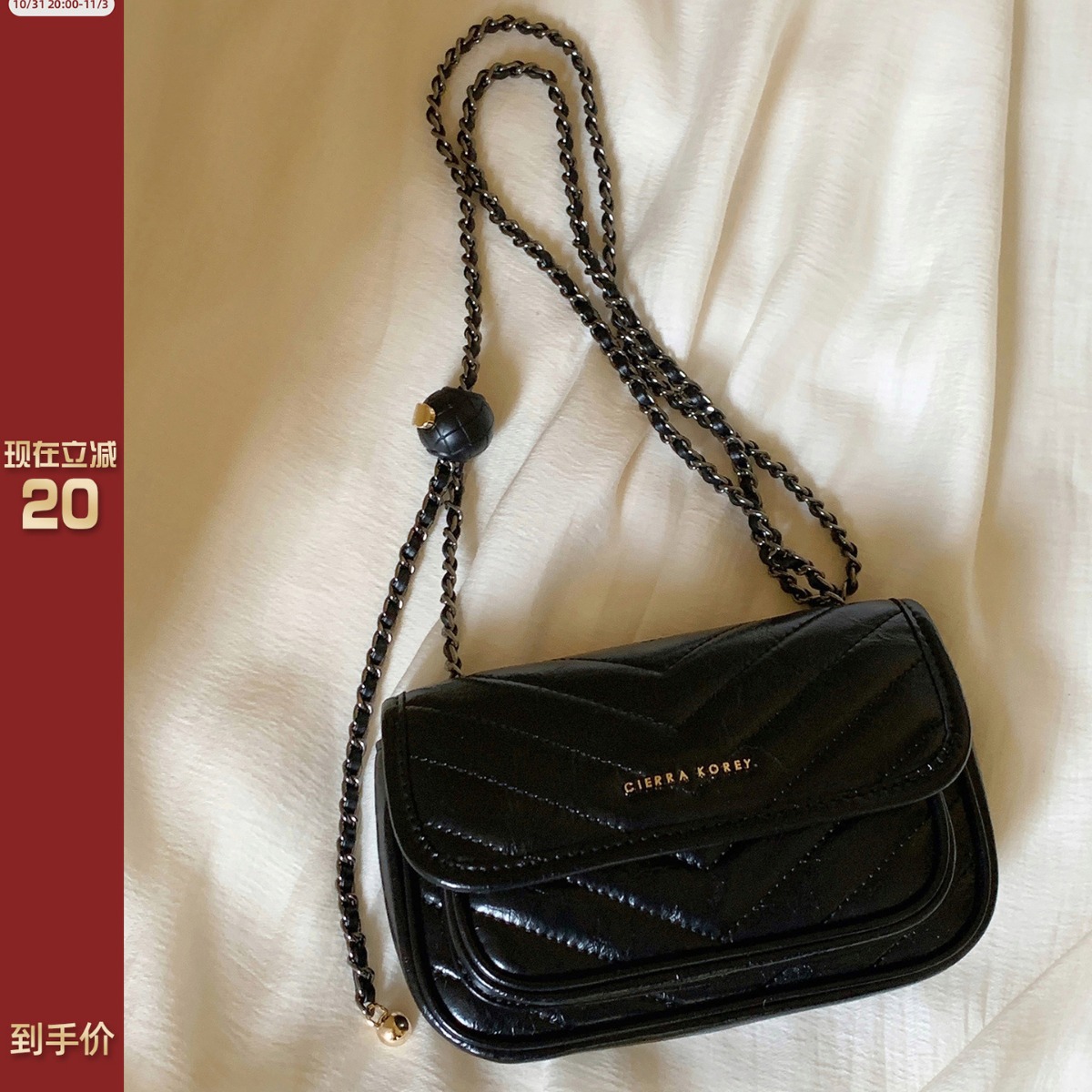 CIERRA KOREY黑曲奇邮差包2023年流行包包女链条单肩质感斜挎小包