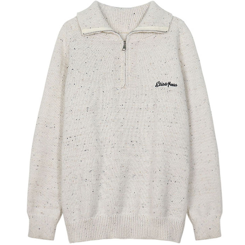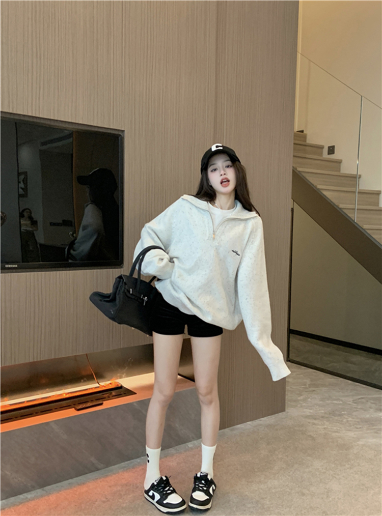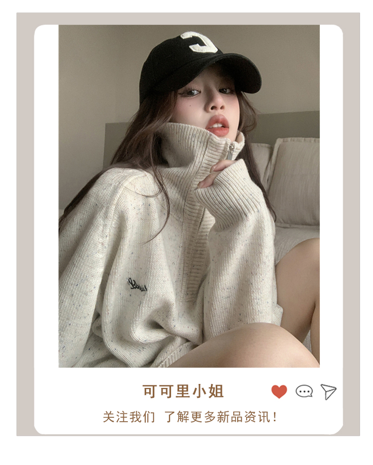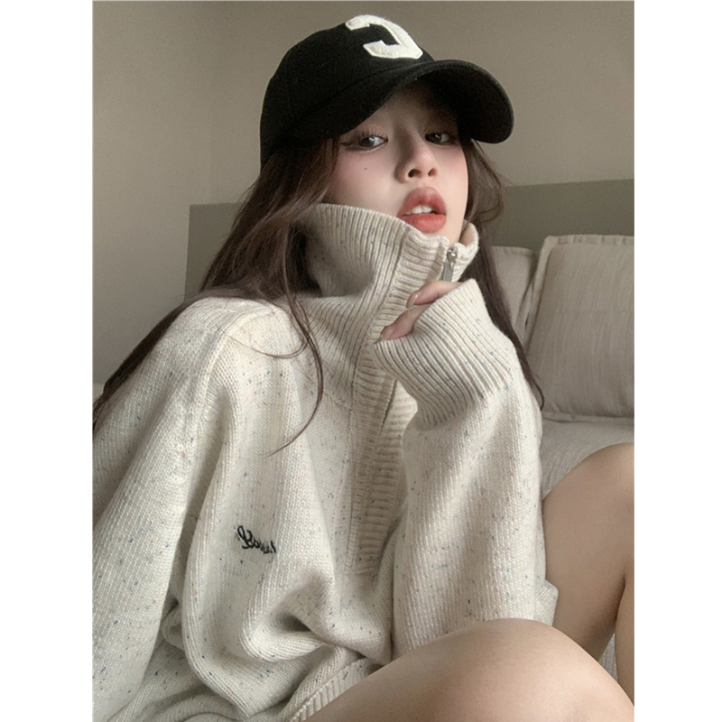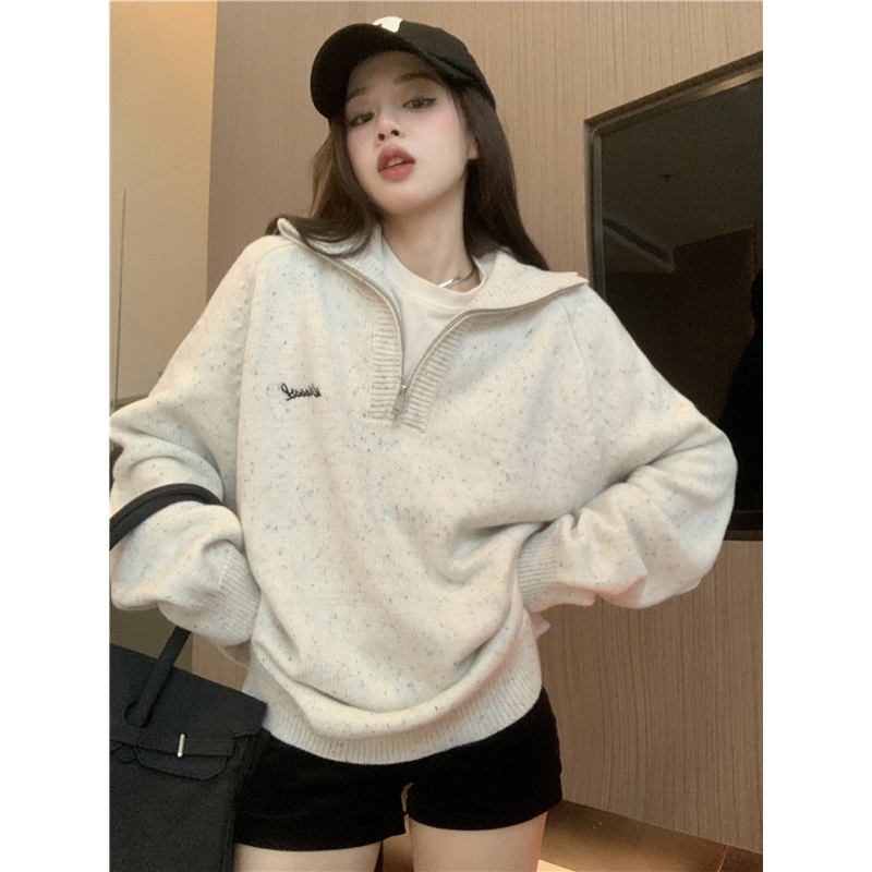 半拉鍊高級感套頭毛衣秋冬2023新款白色設計感慵懶風外套上衣女裝
