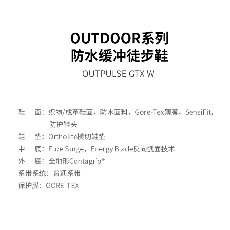 salomon薩洛蒙防水緩衝徒步鞋女款低幫春夏運動OUTpulse GTX W