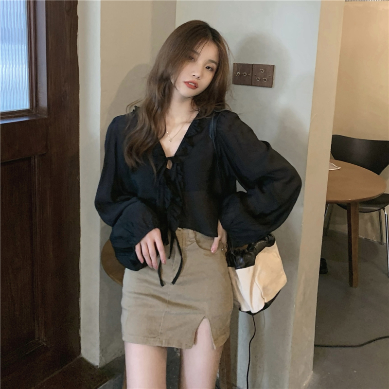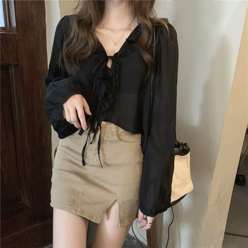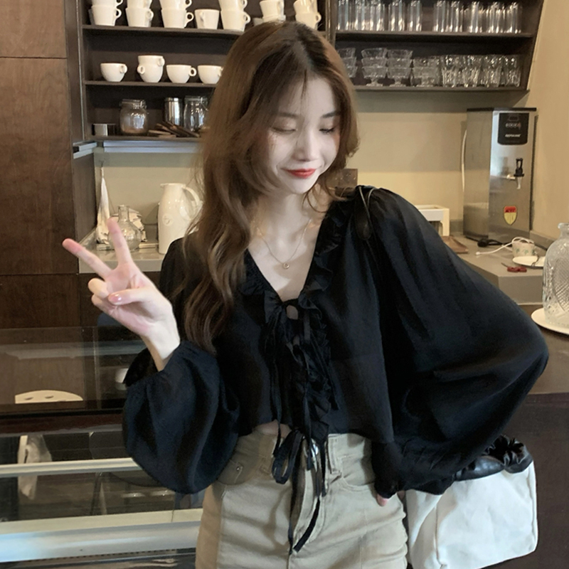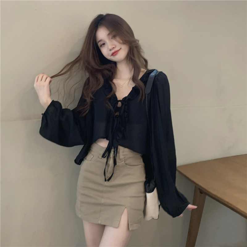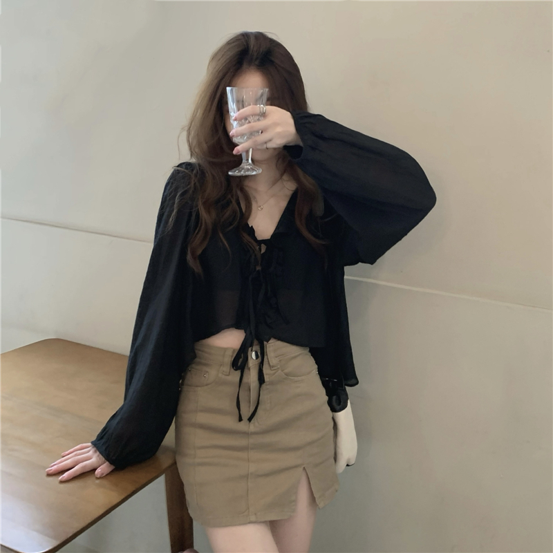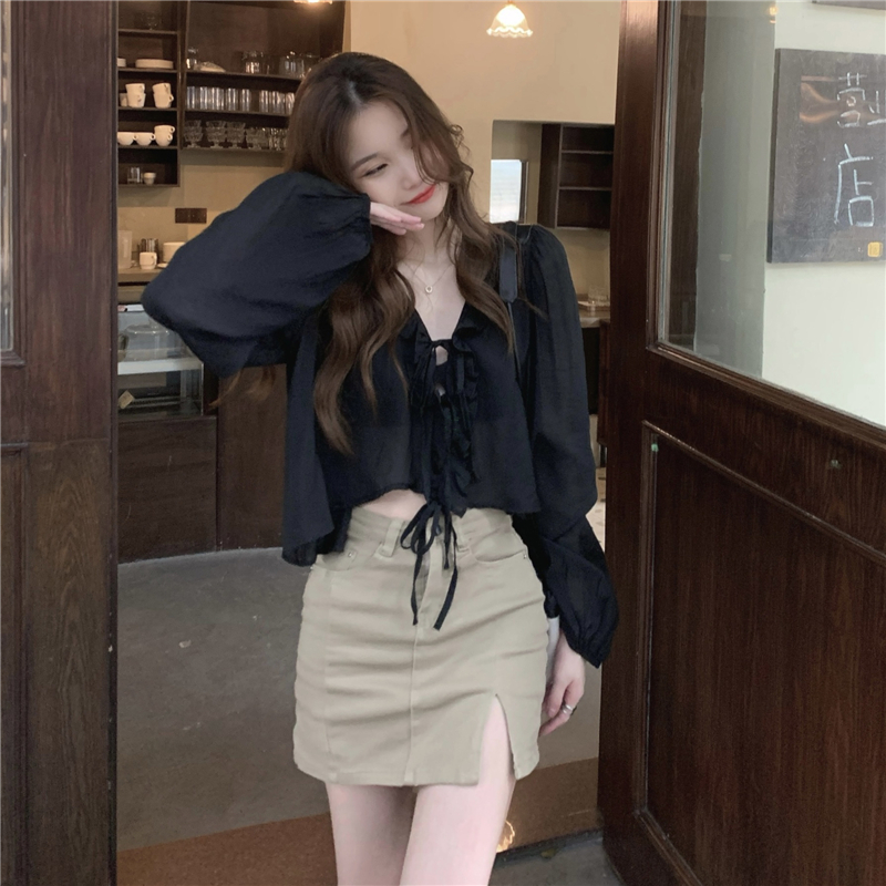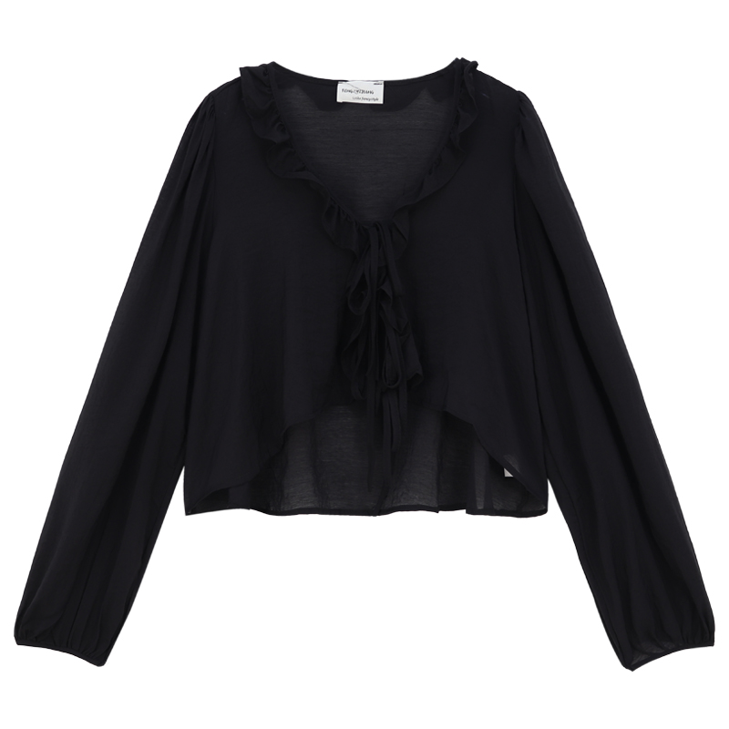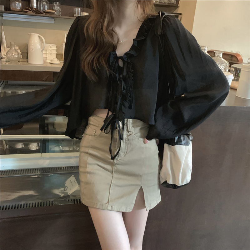 黑色防曬襯衫外套女春季薄款2023新款設計感小眾法式短款長袖上衣