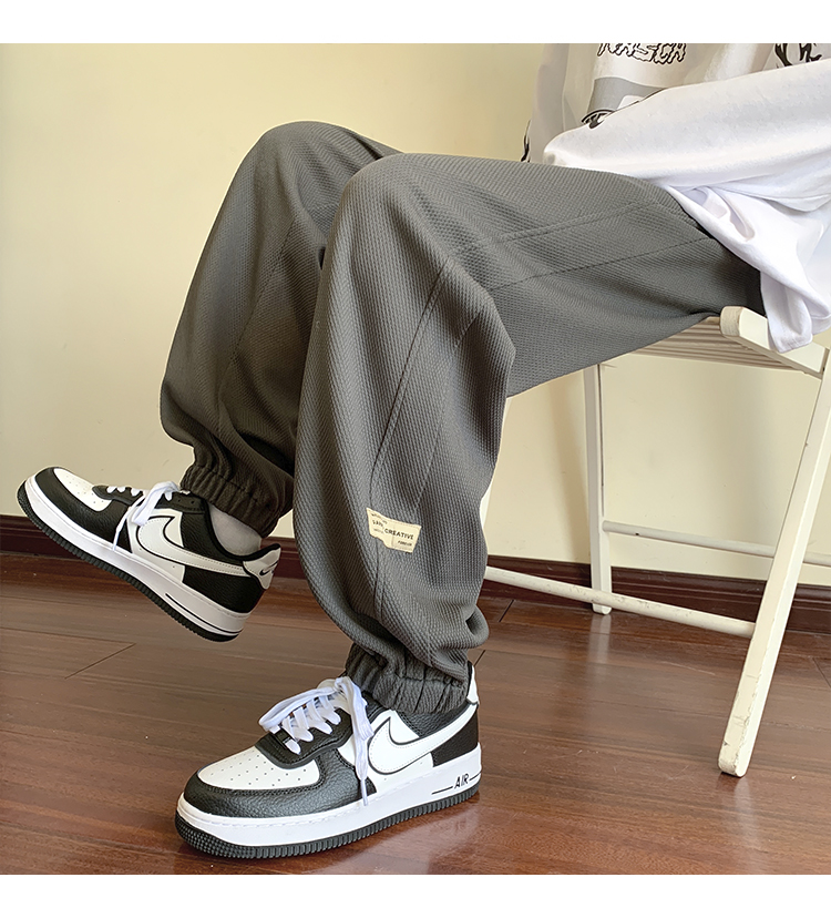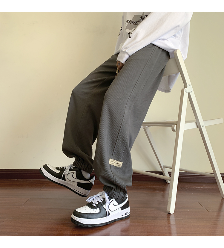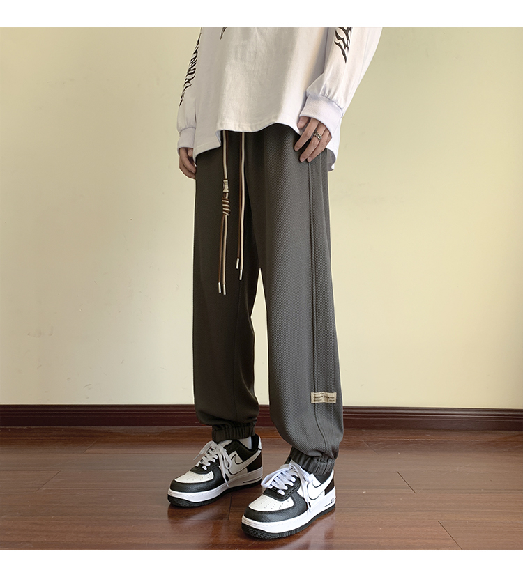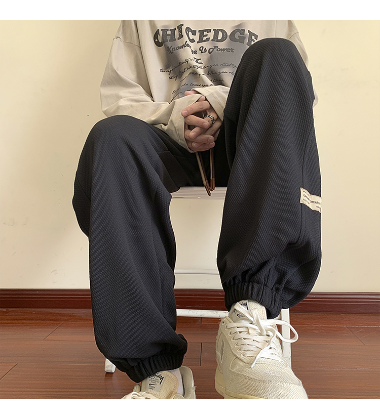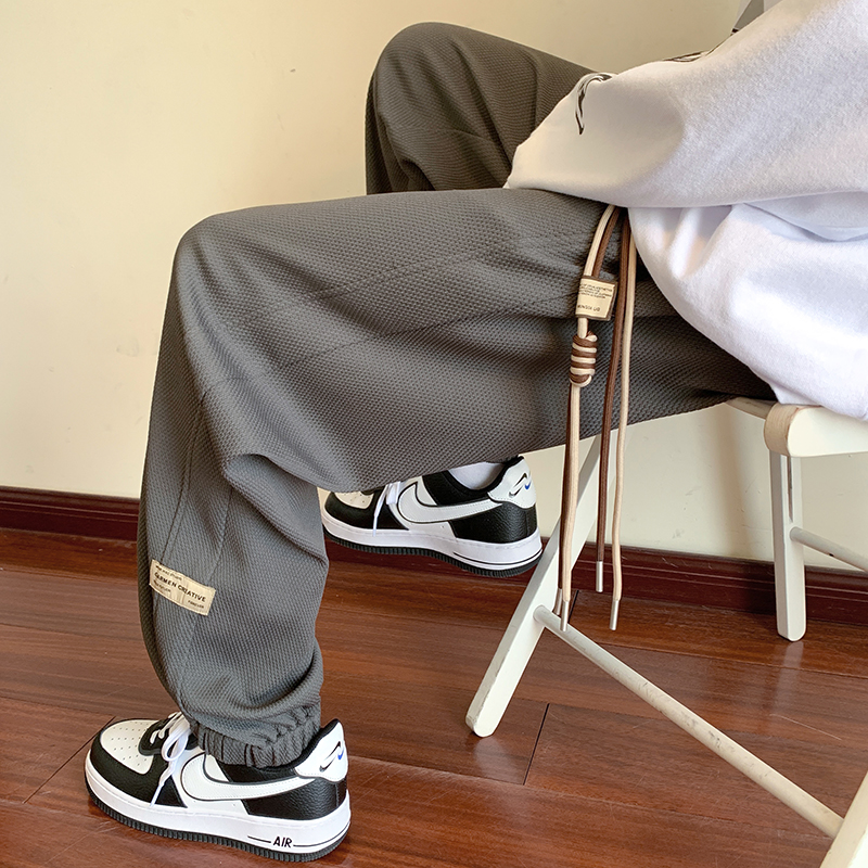 華夫格褲子男春秋款休閒百搭衛褲美式復古青少年抽繩大尺碼運動褲夏