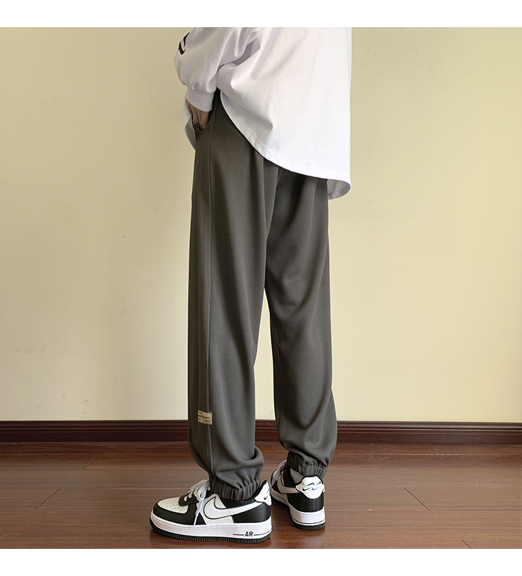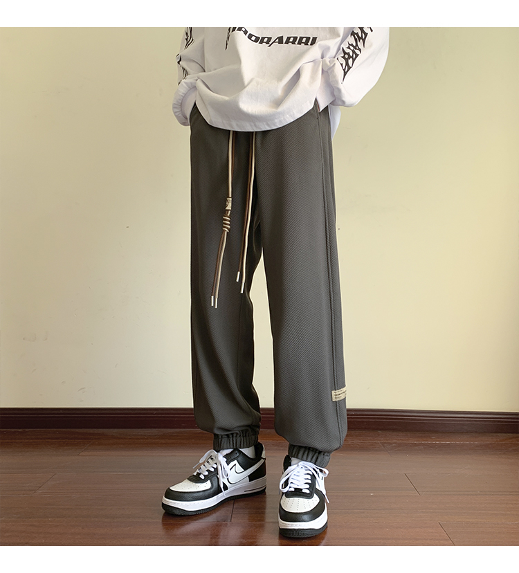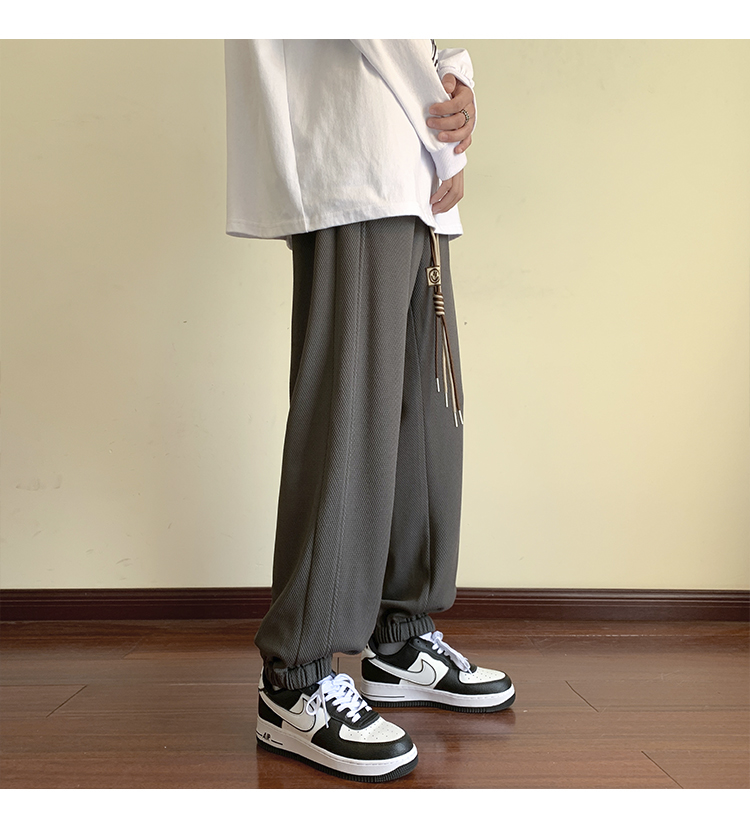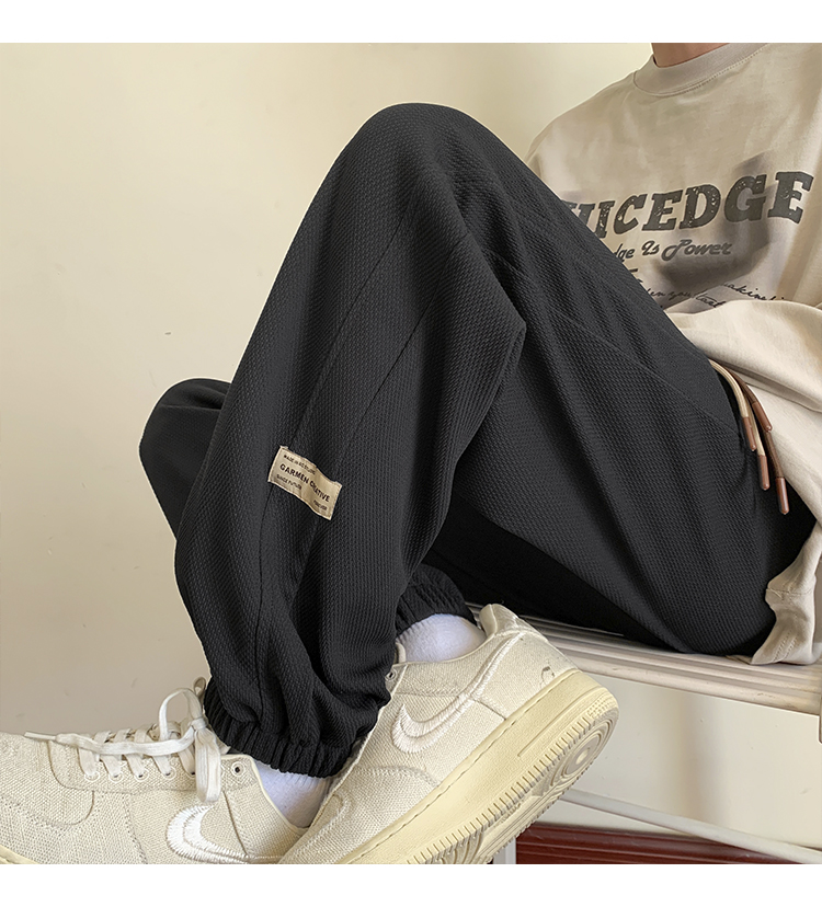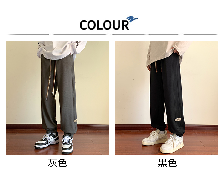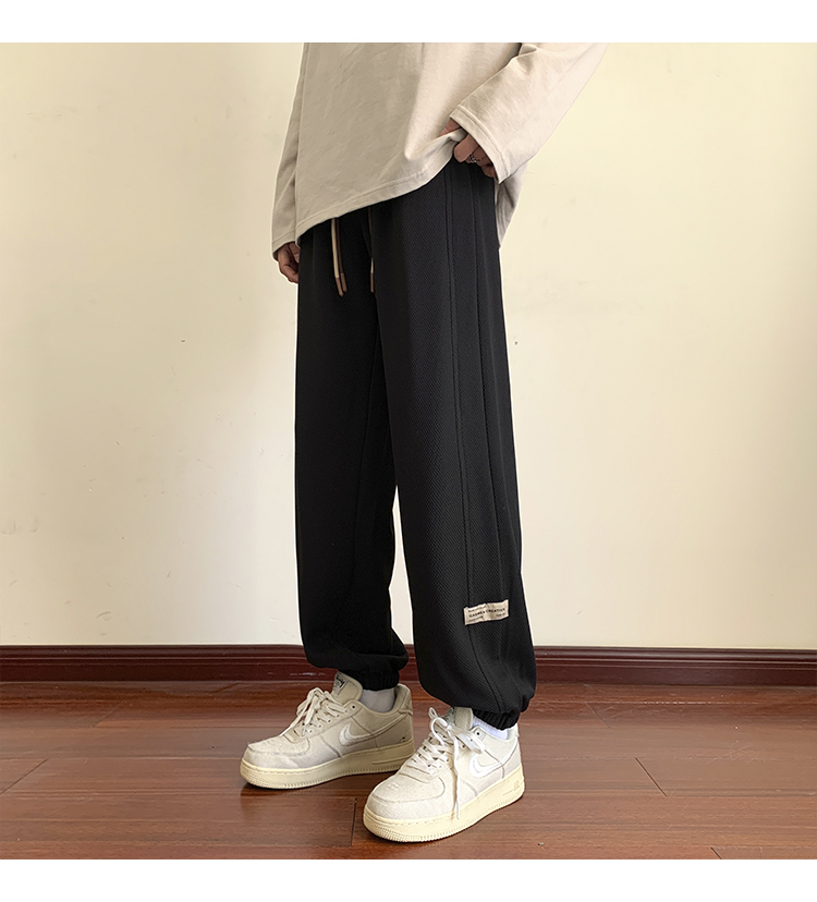 華夫格褲子男春秋款休閒百搭衛褲美式復古青少年抽繩大尺碼運動褲夏