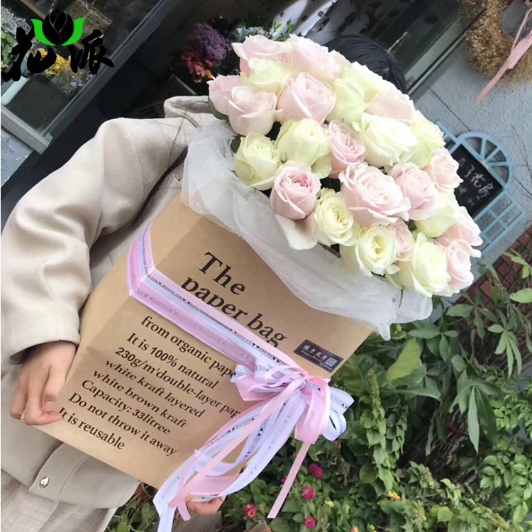 现货批发创意鲜花英文抱抱袋抖音网红鲜花包装袋室内装饰礼品袋子