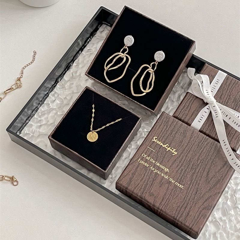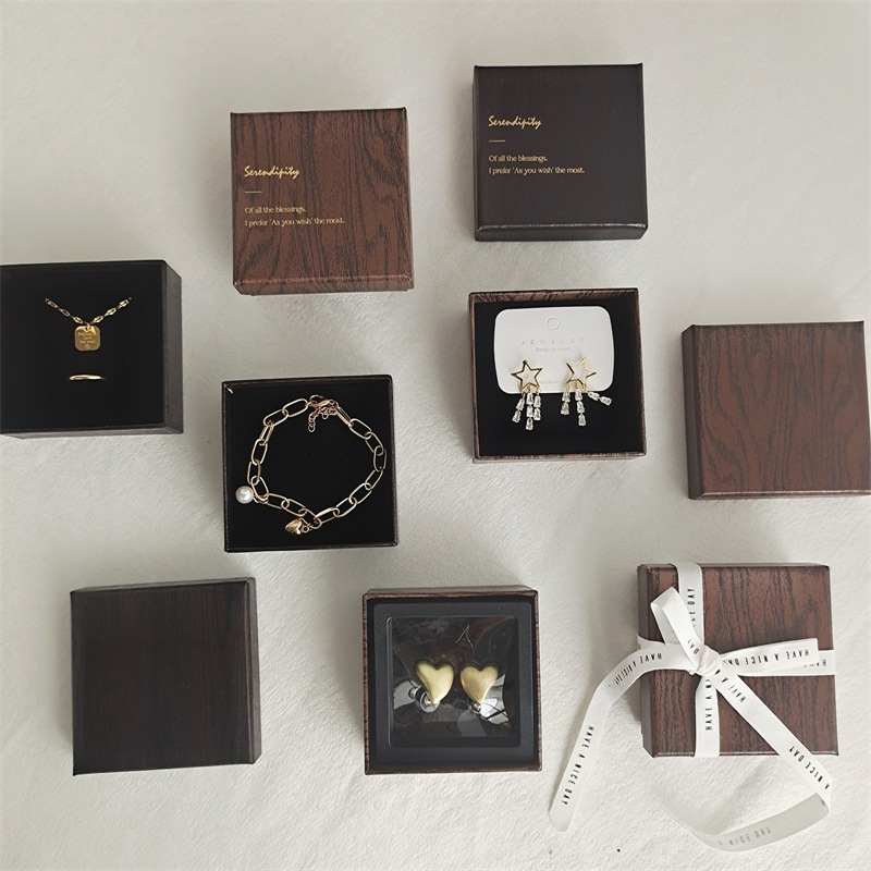 新品 木纹复古文艺ins风日式小众饰品首饰穿戴甲包装盒耳钉手链
