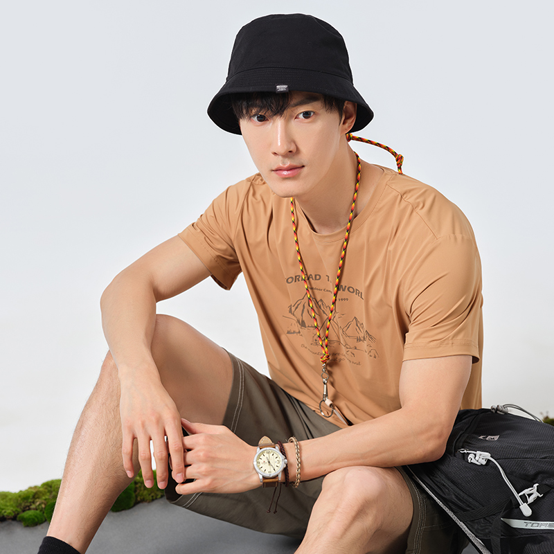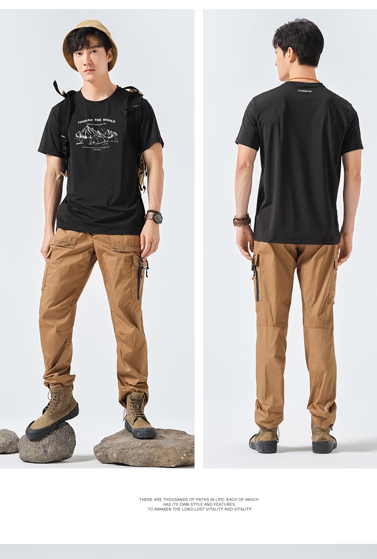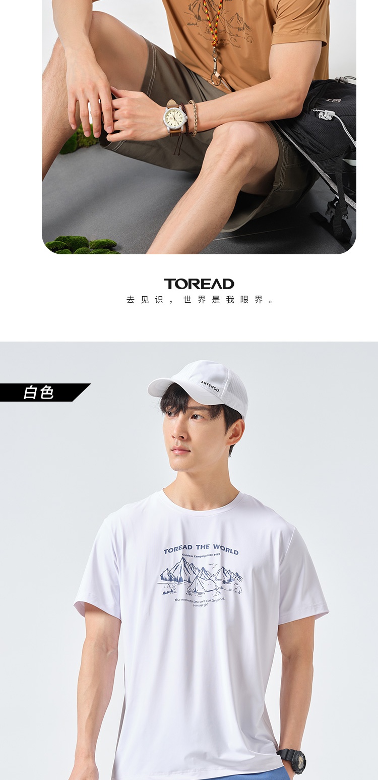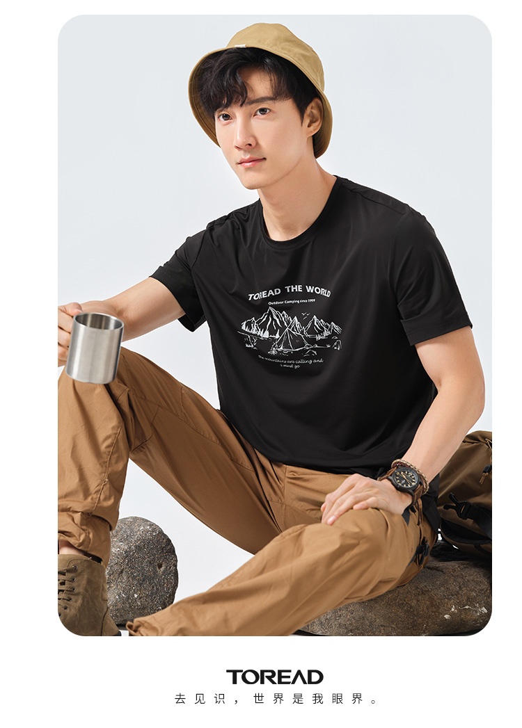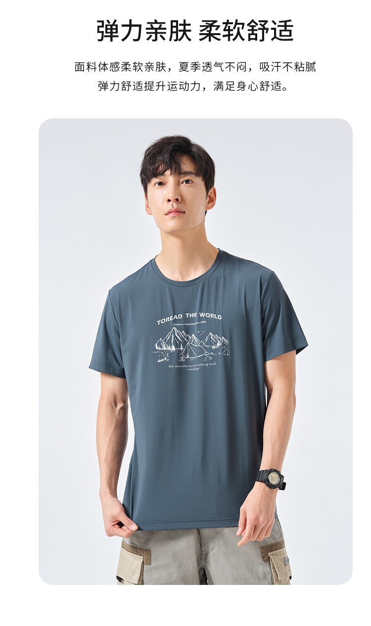 探路者短袖男23春夏新品戶外運動抗UV彈力透氣T恤TAJJCL81303