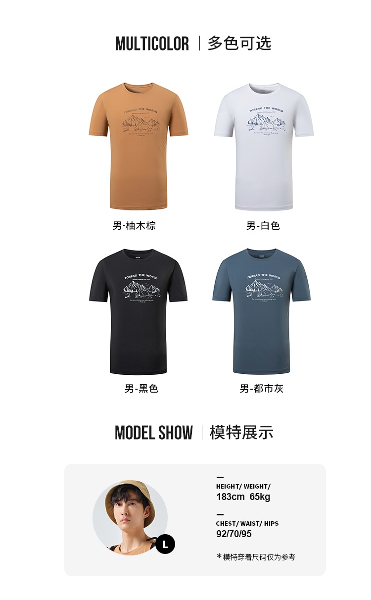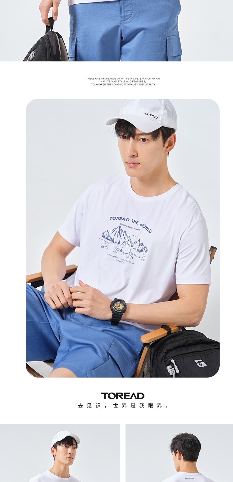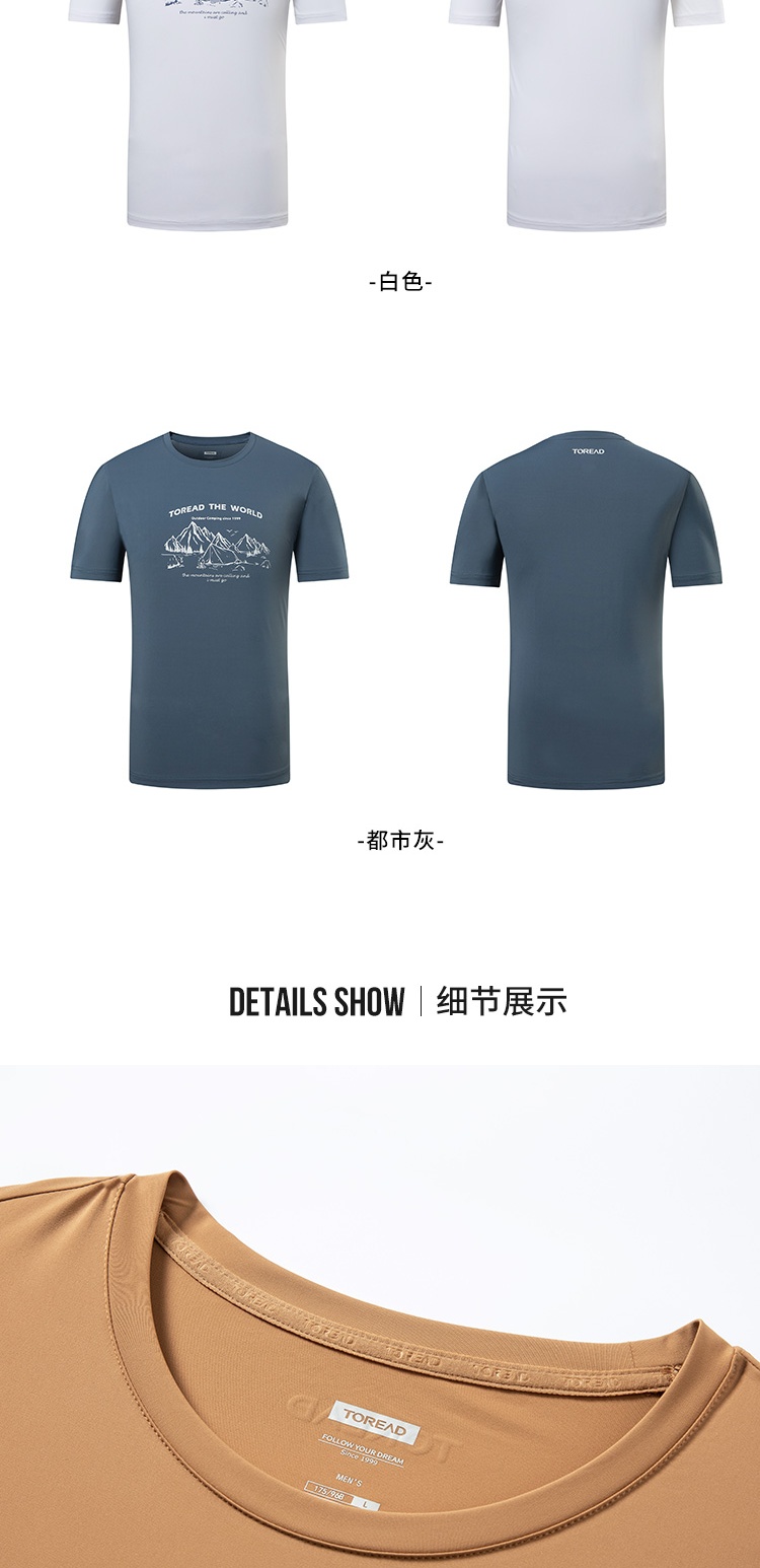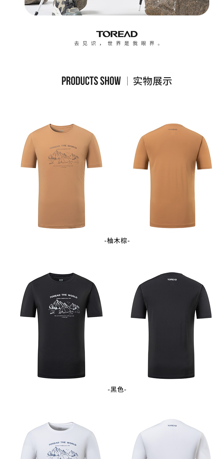 探路者短袖男23春夏新品戶外運動抗UV彈力透氣T恤TAJJCL81303