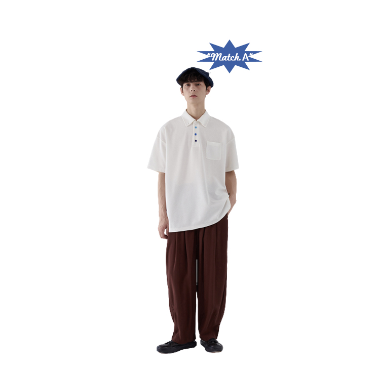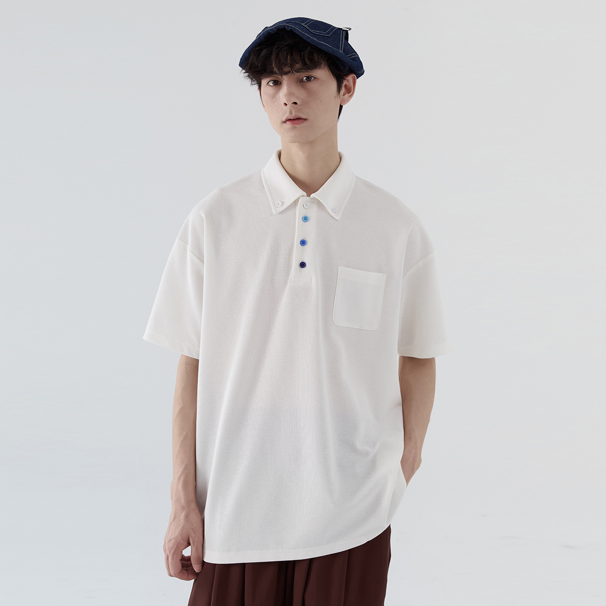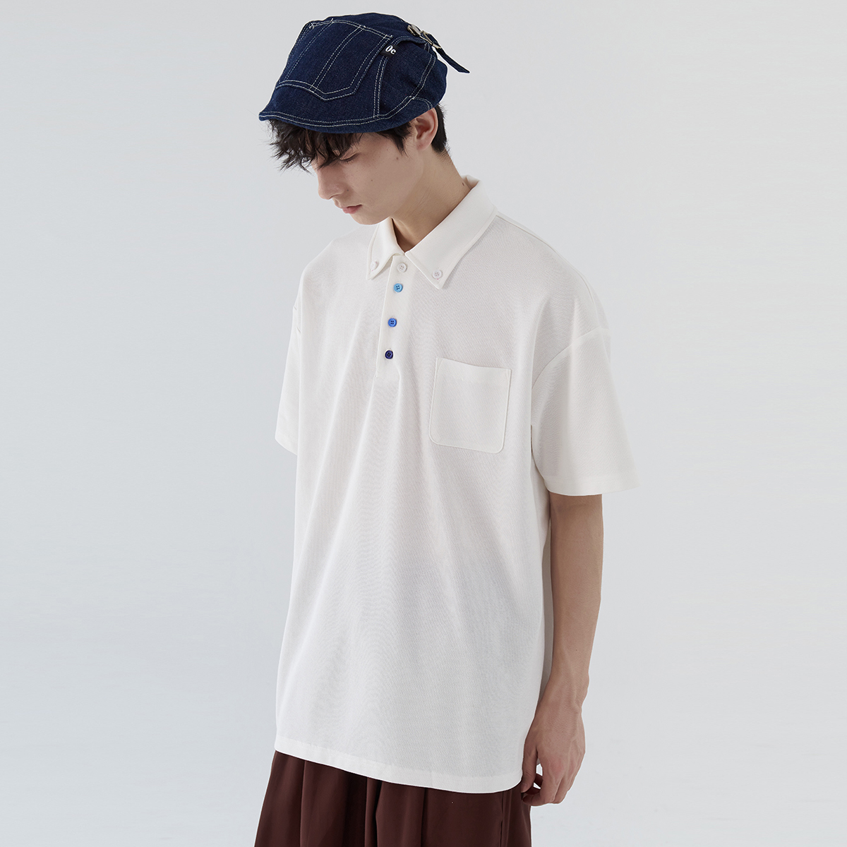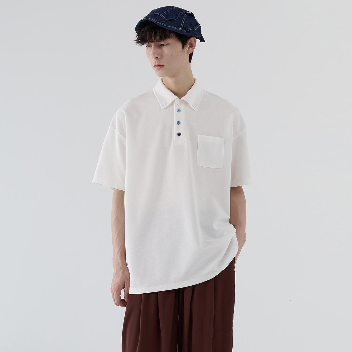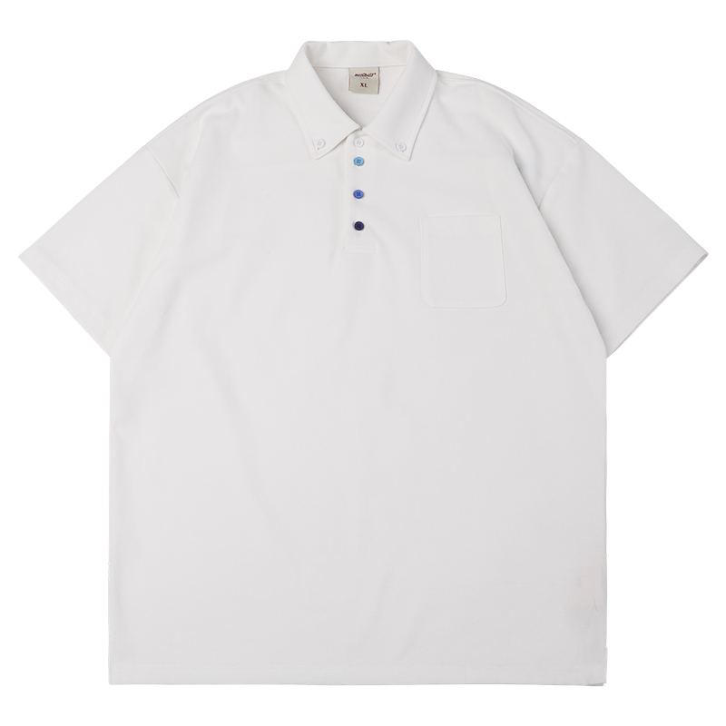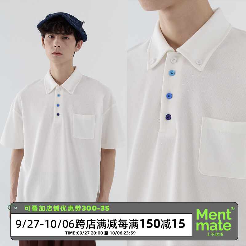 蒙馬特先生 小眾極簡藍色漸層鈕釦POLO衫男日系潮男內搭BF短袖T恤