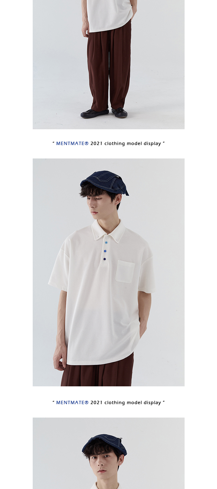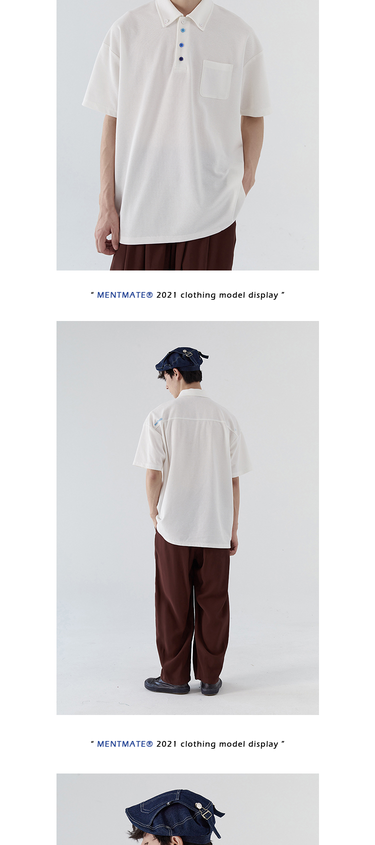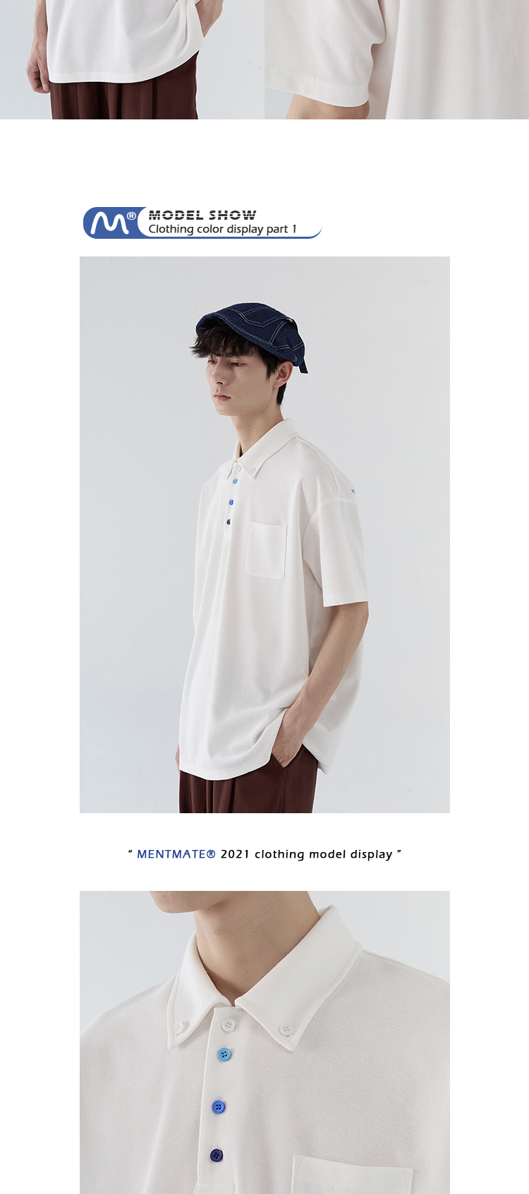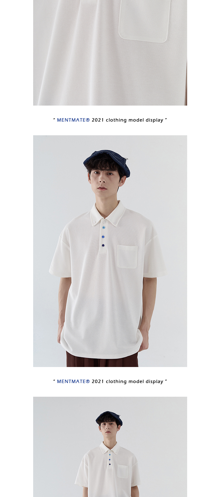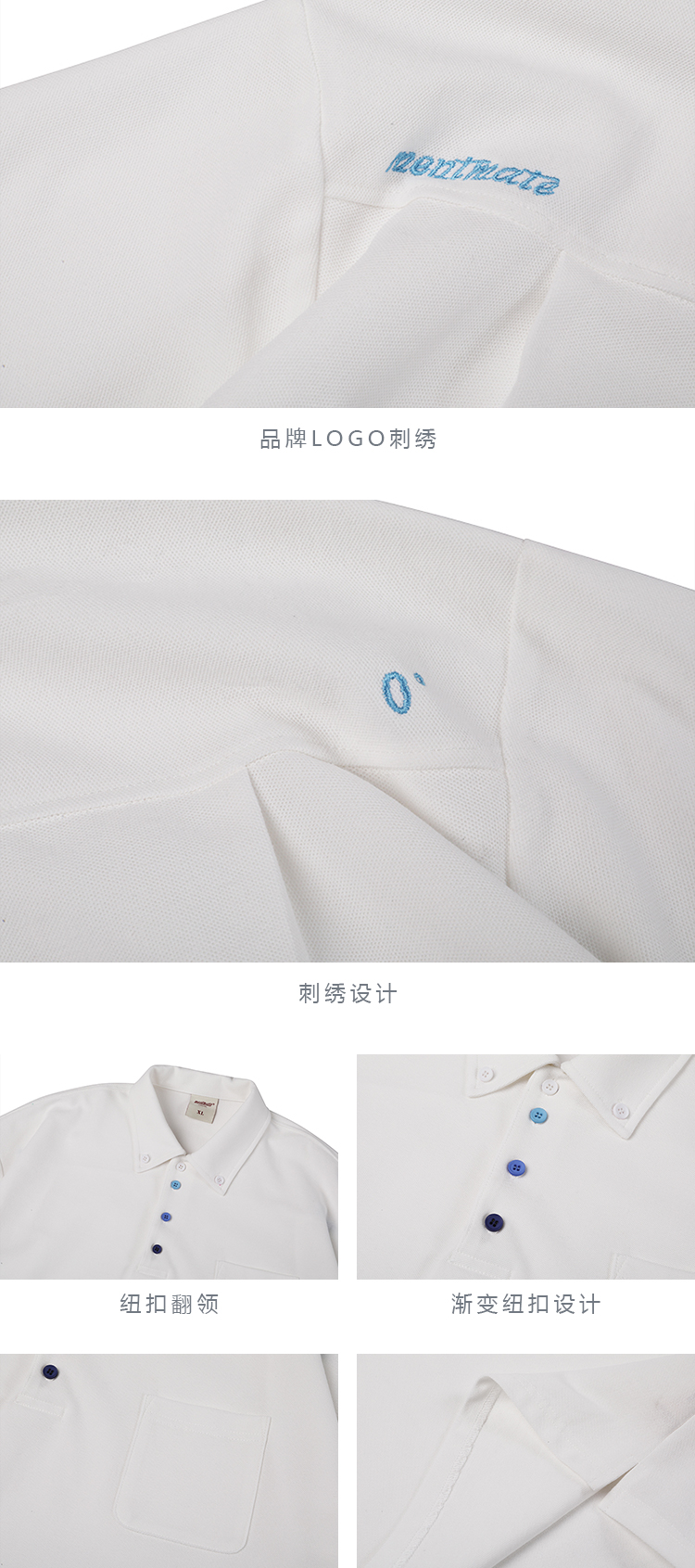 蒙馬特先生 小眾極簡藍色漸層鈕釦POLO衫男日系潮男內搭BF短袖T恤