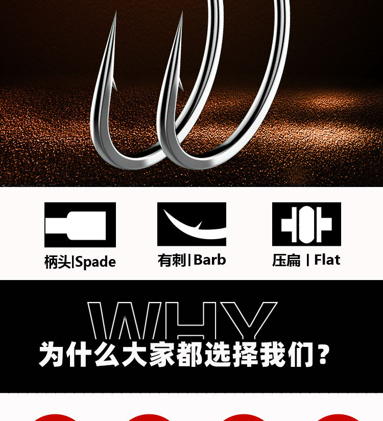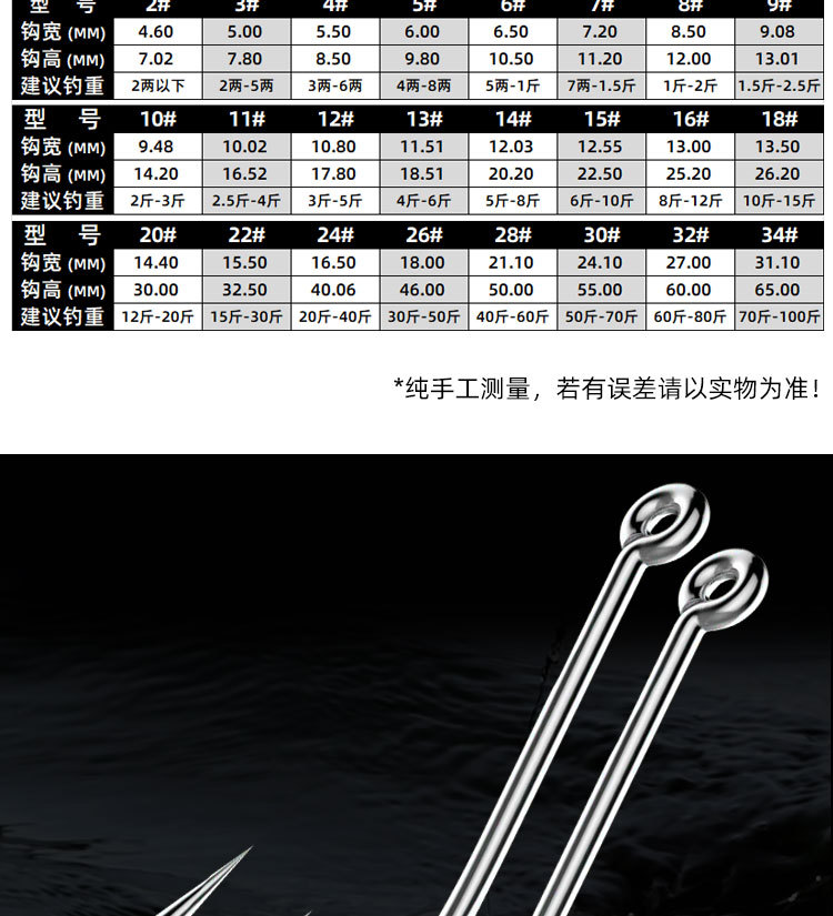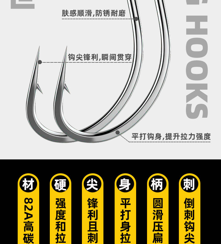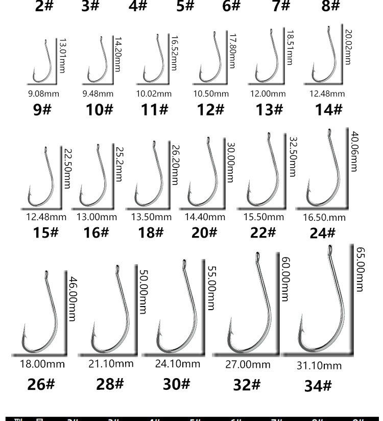 说明:散装鱼钩500枚/包,单个型号请以500枚的倍数下单,否则无法发货!