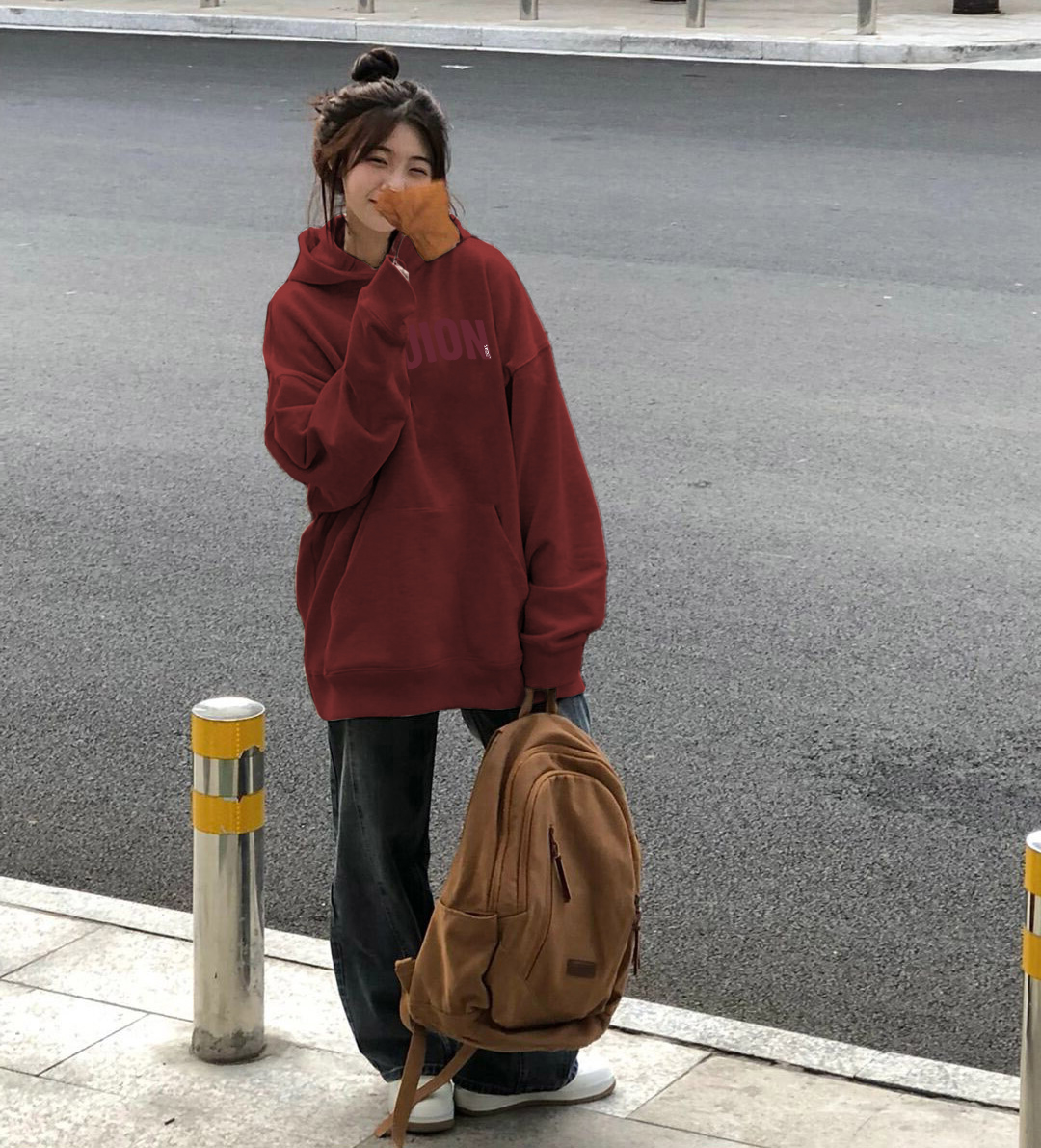 酒紅色連帽運動衫外套女春秋2023新款爆款oversize美式重磅寬鬆上衣