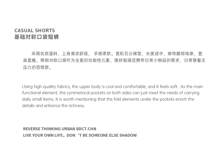 BDCT 日系純色簡約對稱口袋短褲男潮 街頭復古百搭五分褲cityboy